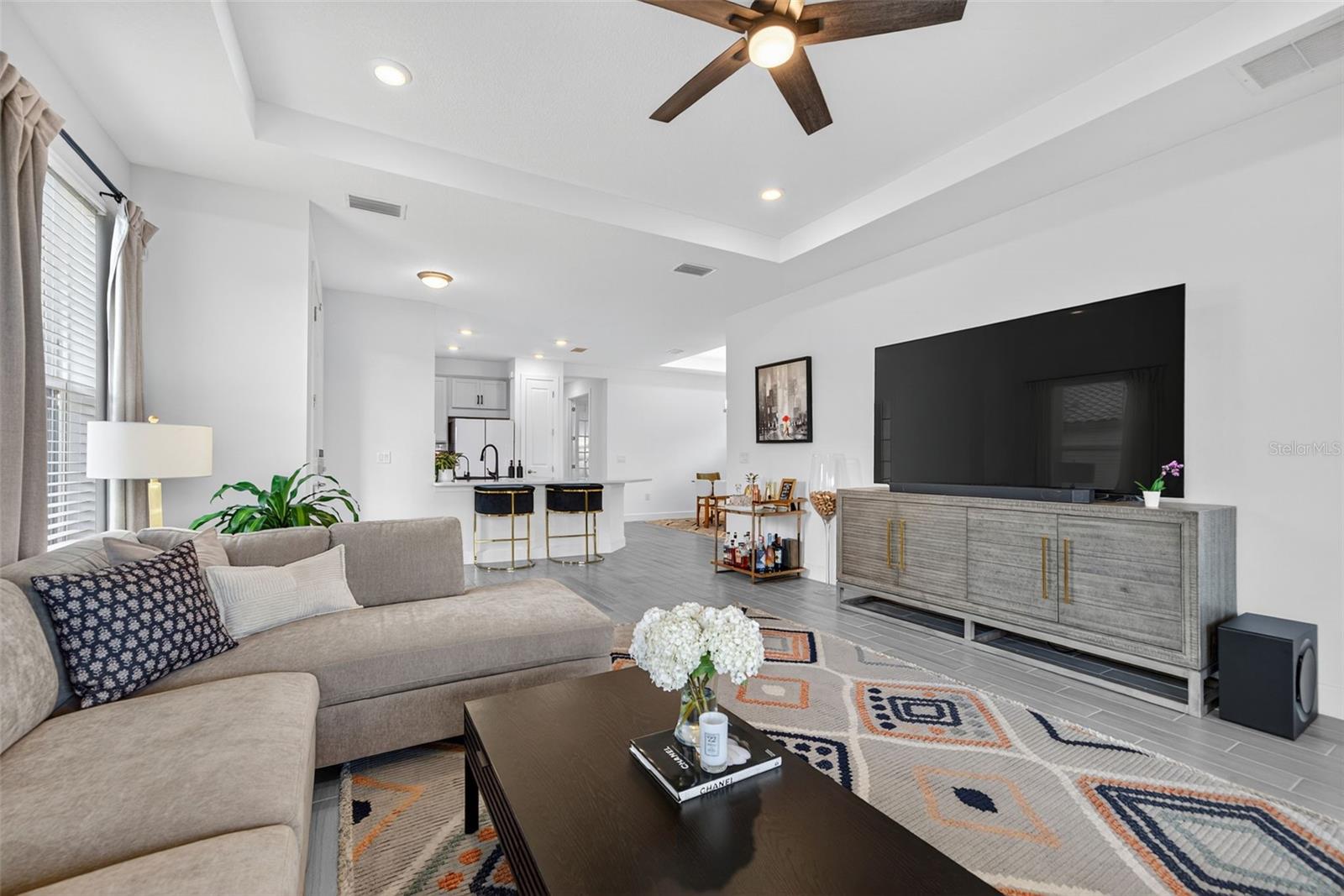 Ceiling Fans(s), High Ceilings, Living Room/Dining Room Combo, Open Floorplan, Solid Surface Counters, Split Bedroom, Tray Ceiling(s), Walk-In Closet(s)