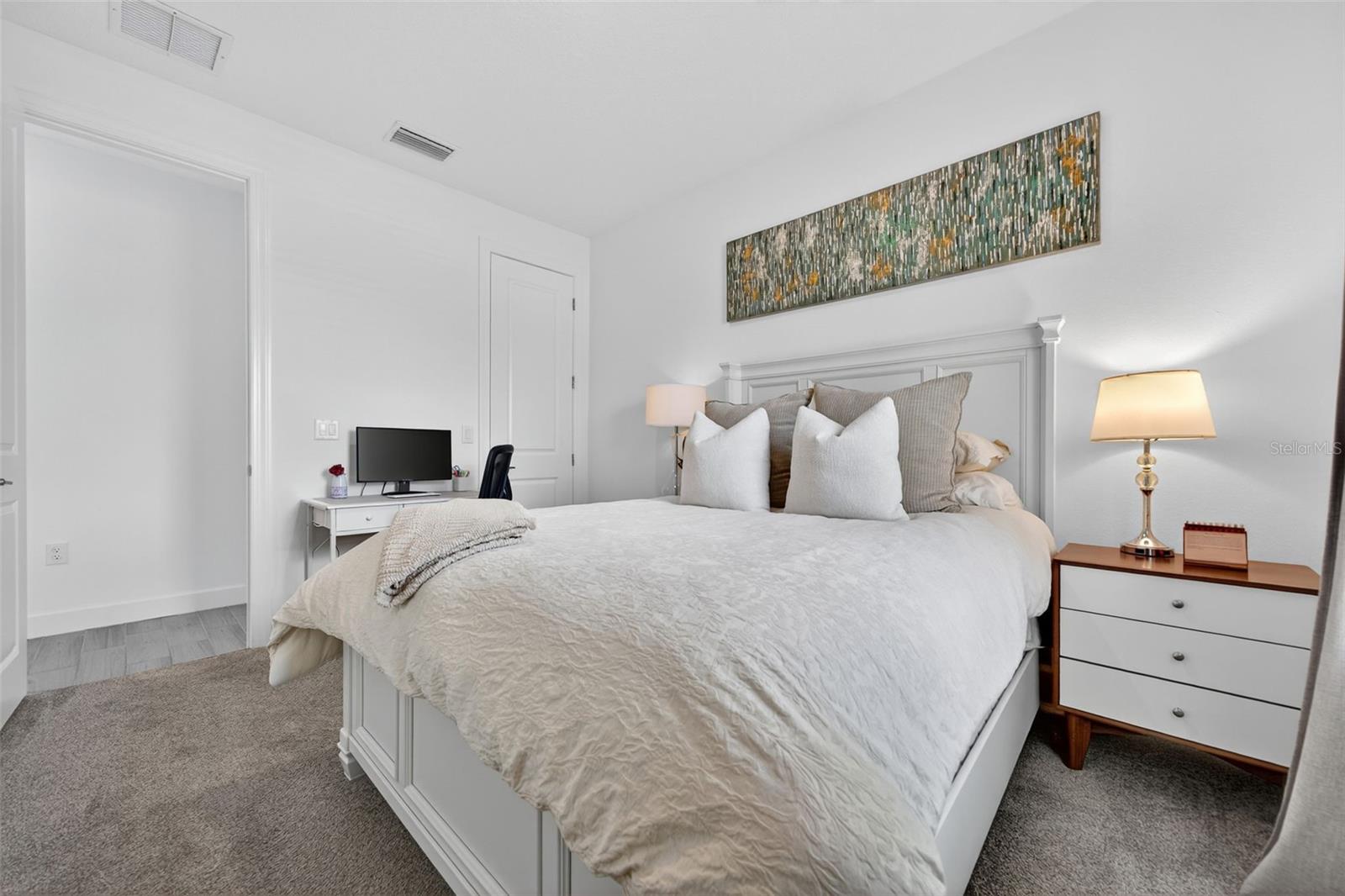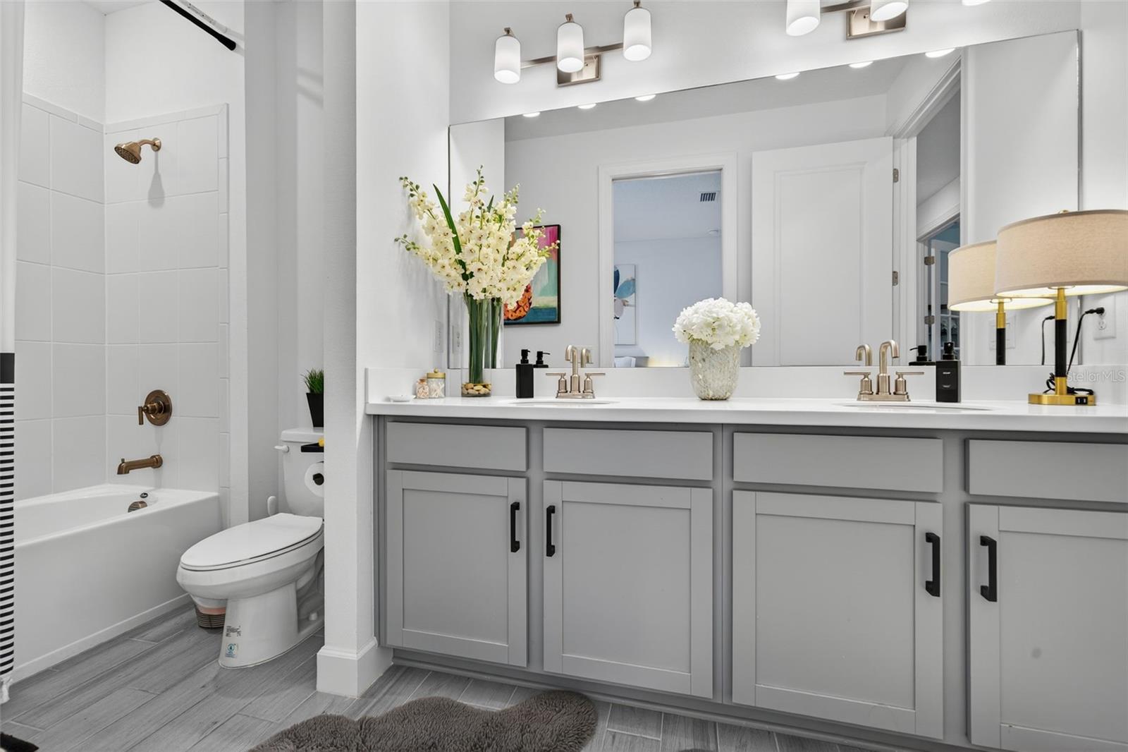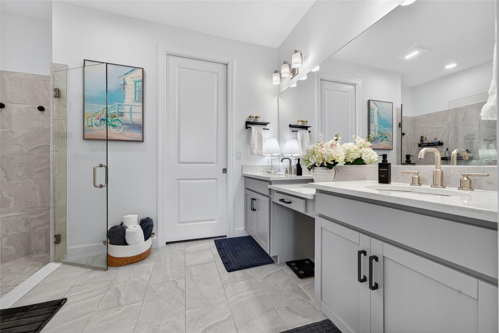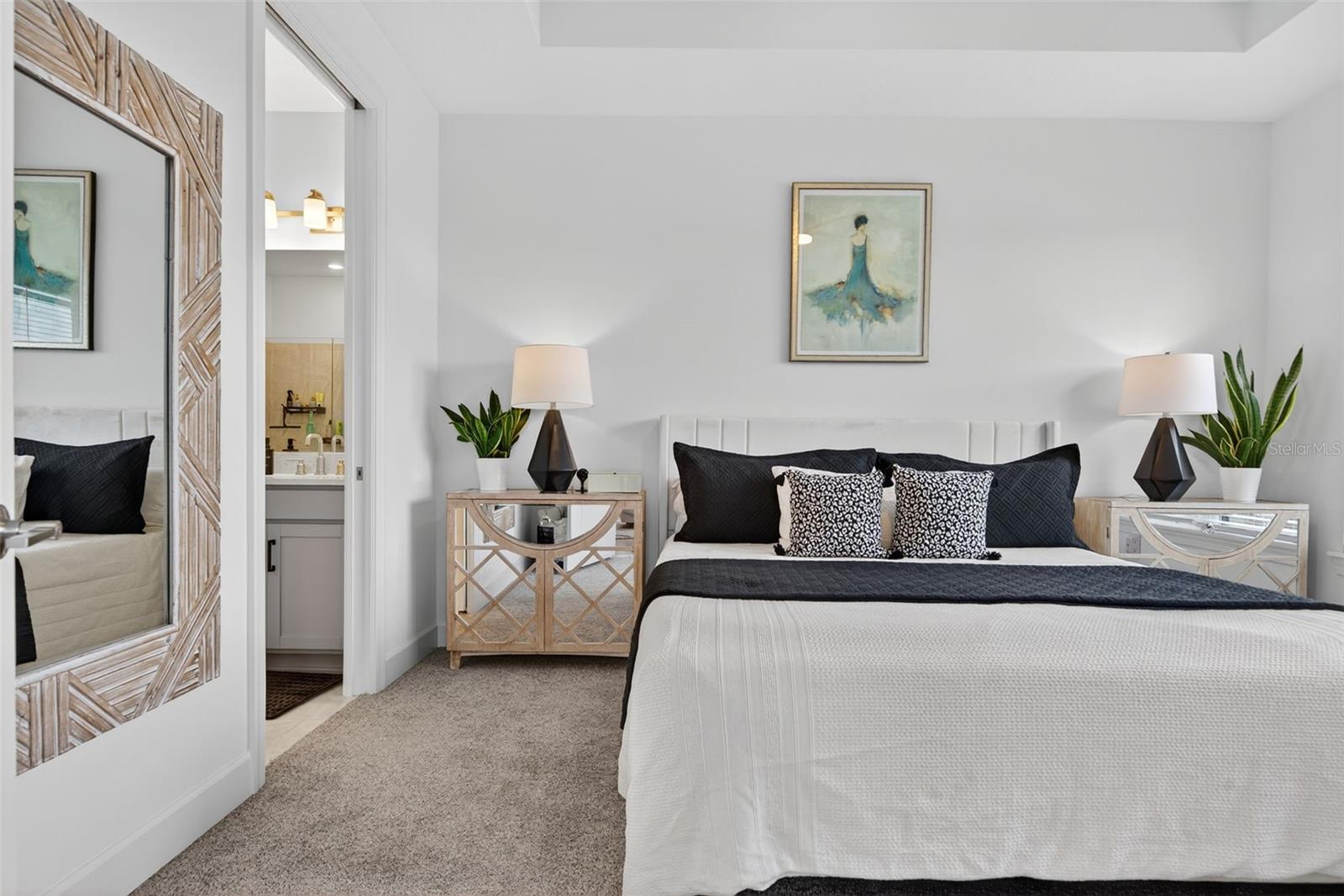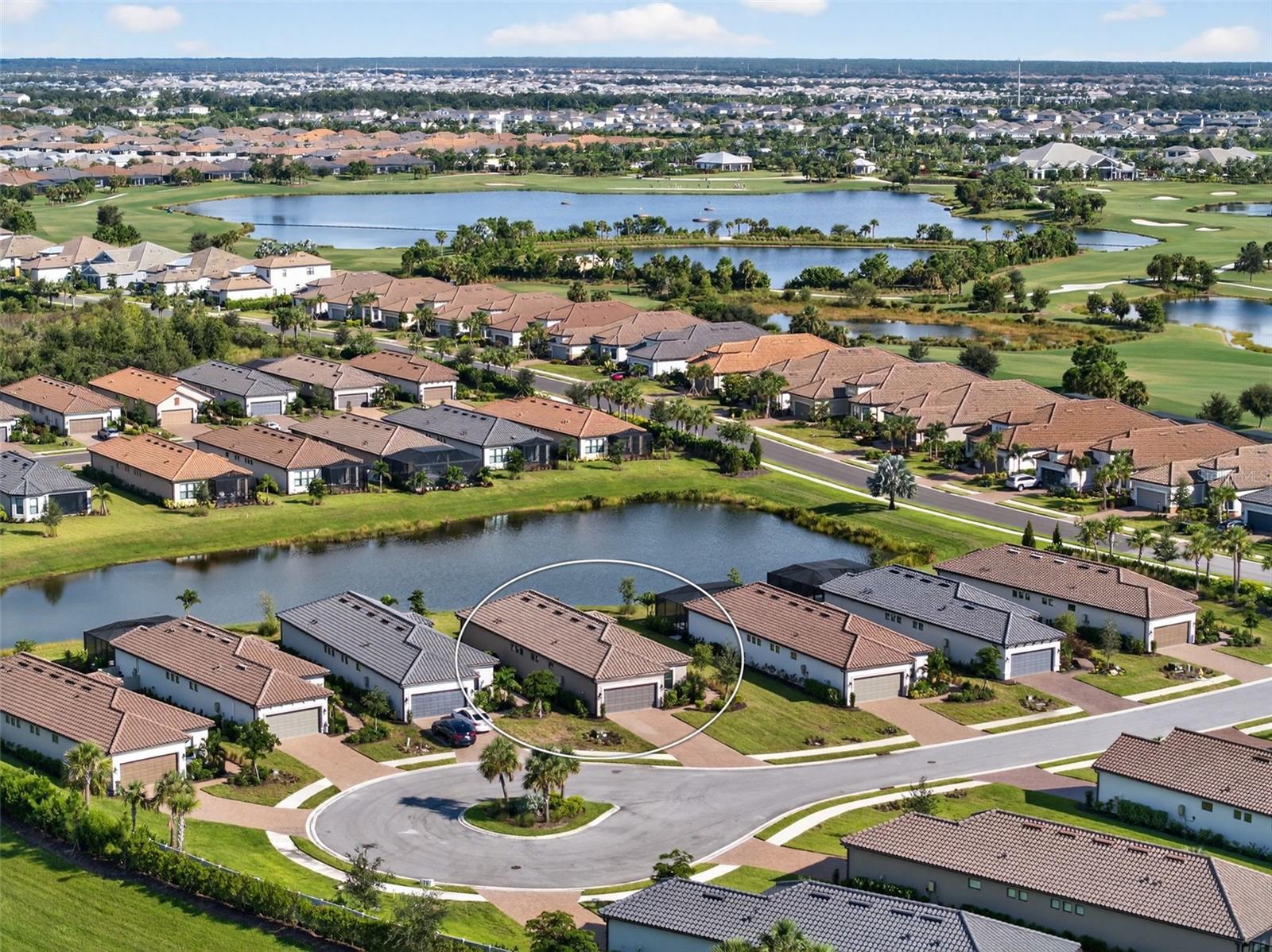 Experience modern luxury and effortless sophistication in this stunning golf-deeded home, located in the highly sought-after community of Esplanade at Azario in Lakewood Ranch. This beautifully designed 3-bedroom + flex space, 2-bathroom residence showcases Taylor Morrison’s highly desired Arezzo floor plan, blending modern comfort with refined architectural detail. The home sits on an oversized lot with an elongated driveway, offering both privacy and curb appeal just a short distance from the amenity center. Inside, natural light fills the open-concept living area with highlighting tray ceilings, 8ft doors, designer tile and plush carpet flooring, and elegant finishes throughout. The chef-inspired kitchen features custom cabinetry, quartz countertops, a farmhouse sink, and a reverse osmosis, water purification, and softening system, ensuring every detail caters to both beauty and function. Retreat to the luxurious primary suite featuring serene lake views, a spa-inspired bathroom with dual vanities, and a spacious walk-in shower. The flex room provides versatility—perfect for a home office, media room, or guest retreat. Step through glass sliders to your screened lanai, where tranquil water views and lush landscaping create the perfect setting for morning coffee or evening gatherings. Additional upgrades include natural gas, a two-car garage, and maintenance-free living for ultimate peace of mind. Beyond your doorstep, Azario’s resort-style amenities set the standard for luxury living—featuring a championship golf course, resort-style and lap pools, wellness spa, fitness center, tennis and pickleball courts, a culinary center, 3 restaurants additionally a cafe for your morning walk with coffee and a vibrant social calendar. Ideally located within Lakewood Ranch—America’s #1 best-selling multigenerational community—you’re minutes from world-class beaches, dining, shopping, and entertainment at University Town Center, Waterside Place, and downtown Sarasota.