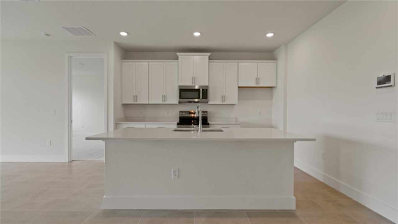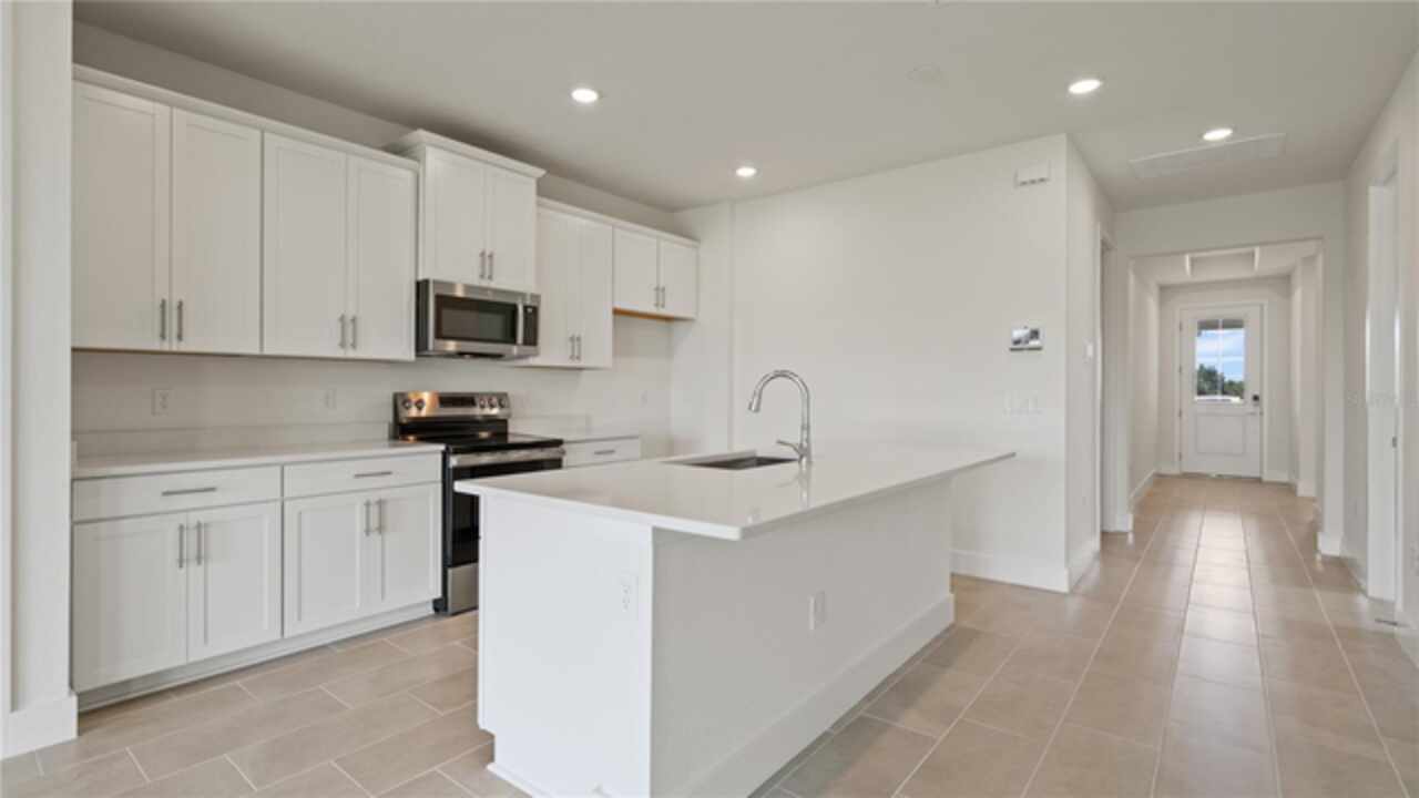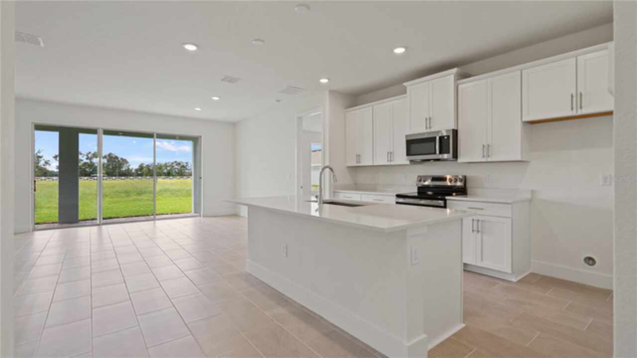 Quick Move-In Home in the Trailside community in Mt. Dora! This brand-new 3 bedroom, 2 bath single-family home with a 2 car garage offers modern style and smart living in a sought after community. One of the only 3 bedroom homes with a 12" sliding glass door! Step inside to 9'4 ceilings, 8' interior doors, and elegant 12x24" ceramic tile throughout the main living areas. The beautiful kitchen showcases 42" upper cabinets, quartz countertops, stainless steel stove, microwave, and dishwasher, and a spacious layout perfect for entertaining. Both bathrooms also feature sleek quartz finishes. Enjoy peace of mind with the built-in pest control system and a full suite of smart home technology-including wifi garage door opener, video doorbell, smart thermostat, and touchscreen automation panel. The 8' front door makes a stunning first impression, while the open-concept design creates a bright and welcoming space. Move-in ready and designed for convenience, this home blends style, function, and modern technology-all in the beautiful Trailside community of Mt. Dora.