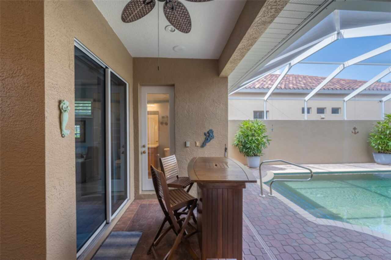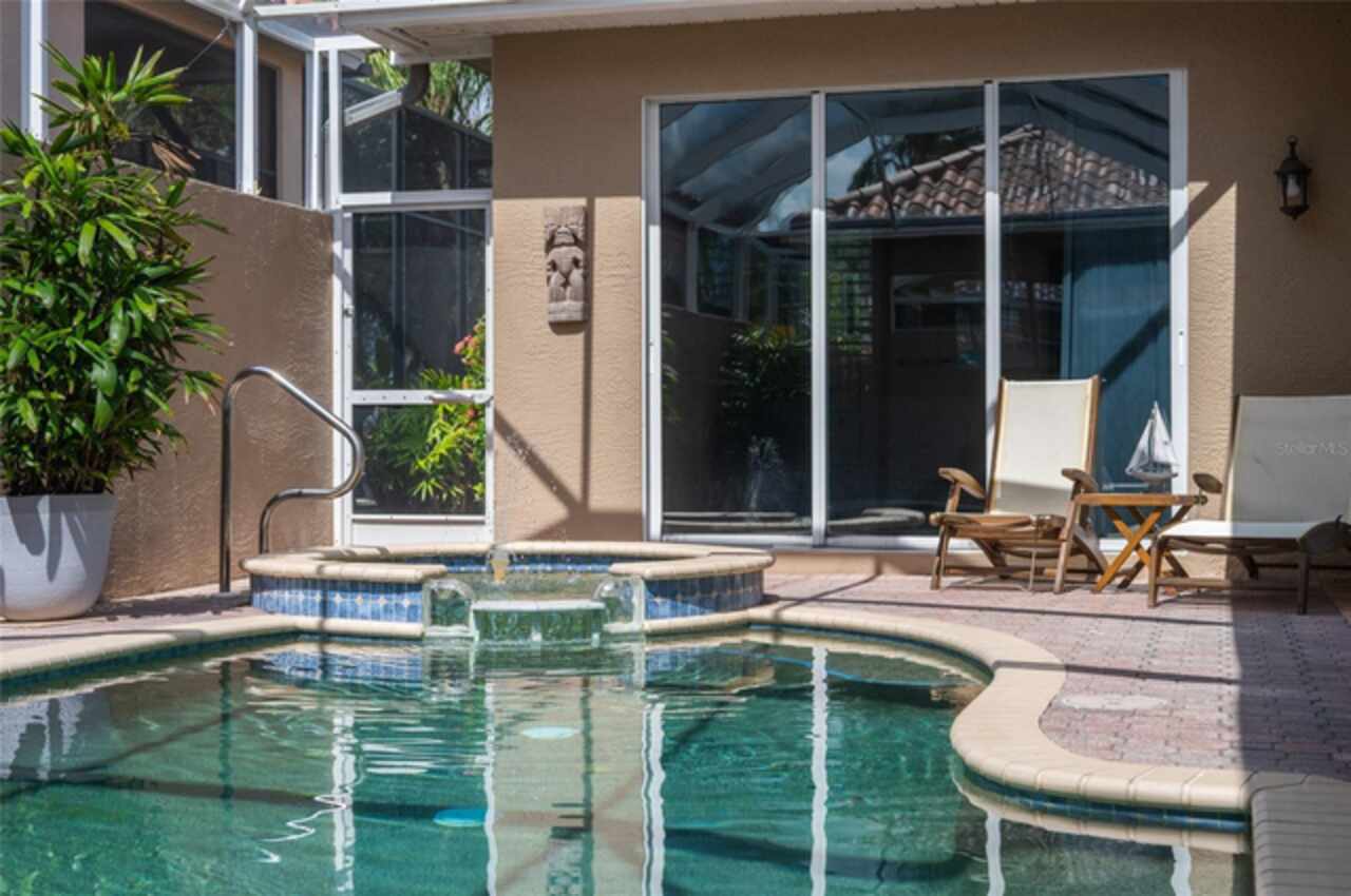 Welcome to this delightful home in the gated, maintenance-free, waterfront community of Riviera Dunes, where comfort meets convenience with easy access to the Manatee River and the Gulf. **Currently, there are boat slips separately available for purchase, please reach out for more information.** As you arrive, you'll be greeted by an entrance lined with stately royal palms leading to a central courtyard that features a refreshing pool fountain—perfect for relaxation or entertaining. The courtyard connects seamlessly to the main house and a separate casita, offering ideal accommodations for guests or a home office. Inside the main home, there are two bedrooms and two updated bathrooms, with the primary suite providing a spacious walk-in closet and a spa-like bath for your personal retreat. The interiors are accentuated with custom plantation shutters and warm wood flooring. The kitchen, remodeled in 2023, boasts updated plumbing, new cabinets, granite countertops, a center island, and modern lighting—making it both functional and stylish. The home has been freshly painted with updated fixtures throughout, creating a crisp, contemporary ambiance. A standout feature is the custom bamboo art piece in the main bathroom, a unique touch shipped directly from the Philippines. The detached casita includes an additional bedroom and bathroom, offering great flexibility for guests or multigenerational living. Recent updates include a new pool pump (April 2025), a well-maintained 2020 AC system, a 20KW Kohler generator installed in 2020, and built-in storage solutions in the garage and pool area. The courtyard and driveway received enhancements in 2024. As a resident of Riviera Dunes, you'll enjoy access to day boat slips, a fitness center, and pickleball courts, all within a secure community. The location offers convenient access to Sarasota, Bradenton, and St. Pete, with nearby attractions like the Riverwalk and Emerson Point Preserve for your enjoyment. Call to see it today!