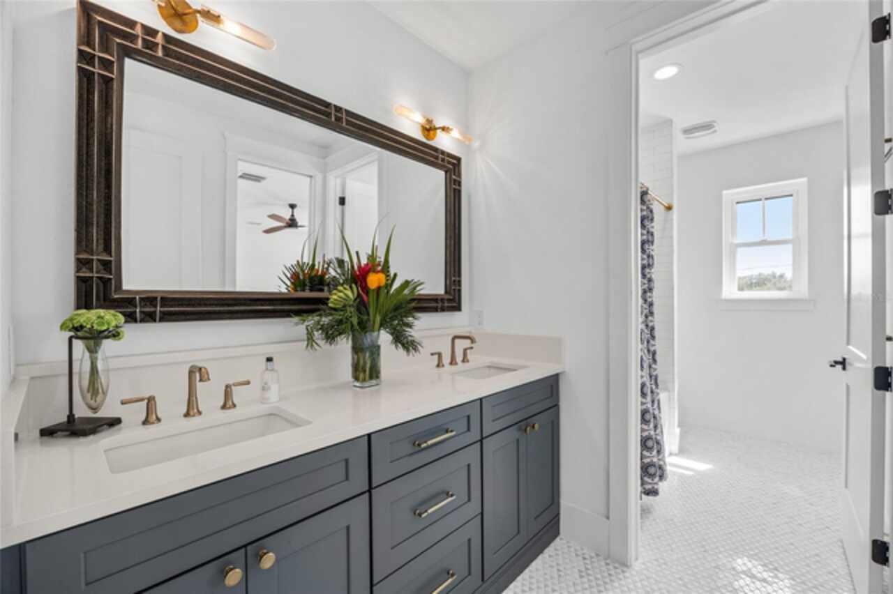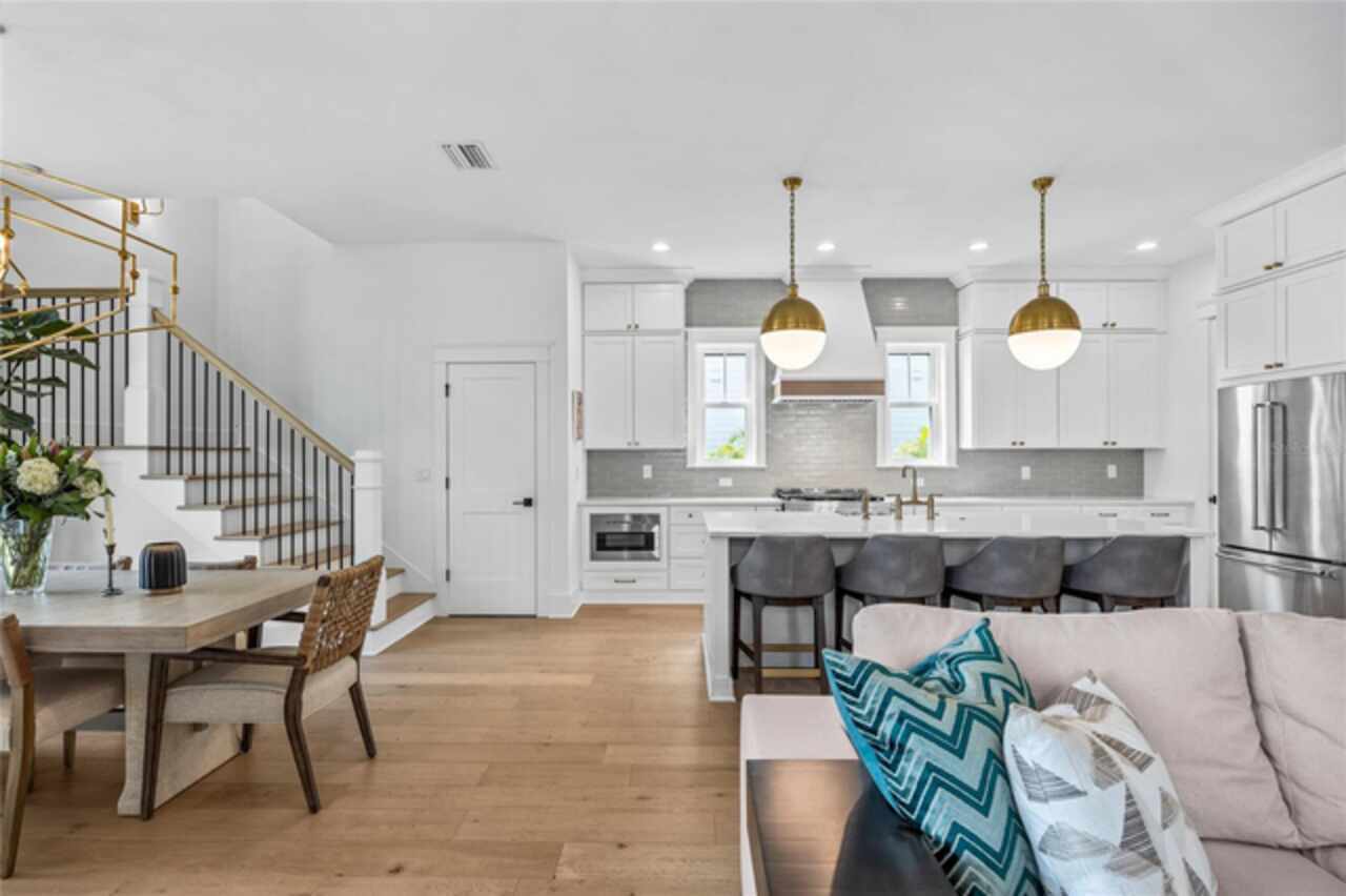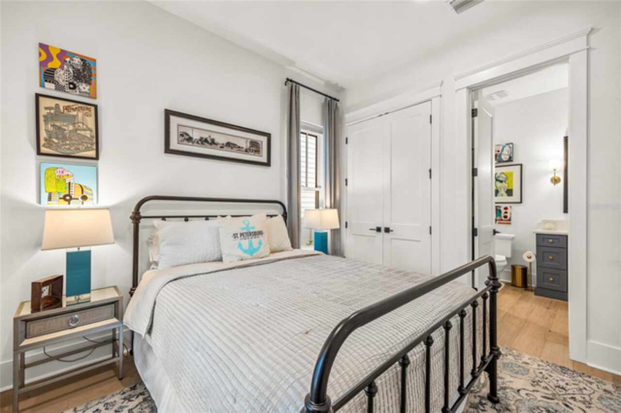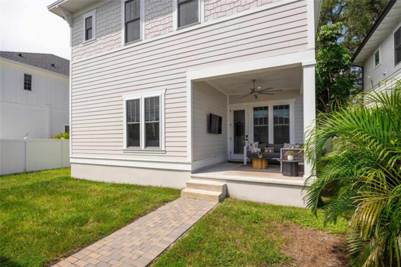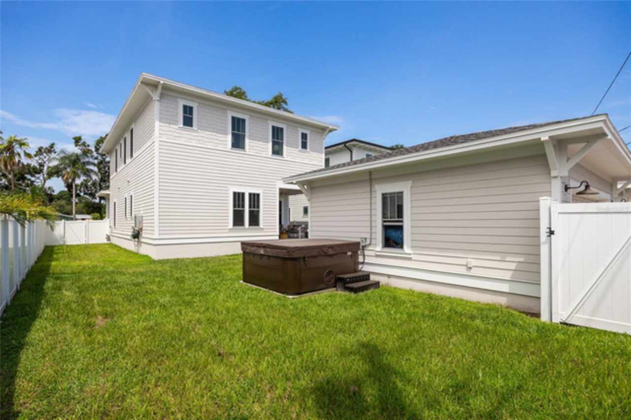 Why wait for new construction when this professionally designed 2023 Canopy Builders home is move-in ready today? Nestled in the sought-after Magnolia Heights neighborhood, this Four Square model sits on a premium 6, 200 SF lot high and dry in Flood Zone X. Built by one of St. Petersburg’s most acclaimed builders, no detail has been overlooked in this 4-bedroom + office + loft, 3-bathroom residence with a detached 2-car garage with an electric charger. From the moment you arrive, the timeless curb appeal shines with Hardie Board plank siding, impact-rated windows and doors, gas lanterns on the welcoming front porch, and a pavered walkway framed by canopy oaks. Inside, 10’ ceilings on the main level, 8’ solid interior doors, and a designer finish package set a sophisticated tone. The open-concept floor plan flows effortlessly from the living area to the chef’s kitchen—complete with a spacious island, quartz countertops, top-stack cabinetry, and a KitchenAid appliance suite featuring a 36" natural gas range. Perfect for entertaining, the home also features front and rear porches and a backyard large enough for your dream pool and outdoor retreat. Upstairs, you’ll find a versatile loft, a laundry room with custom cabinetry, quartz counters, and a sink, along with abundant storage. The primary suite is a true sanctuary with a spa-like bathroom offering a freestanding soaking tub, dual vanities, a glass walk-in shower, and a spacious walk-in custom closet. Everyday convenience meets style with impact windows, 9’ ceilings upstairs, and thoughtful touches like custom lighting and built-in storage. Location is everything—and this quiet, tree-lined street puts you minutes from Downtown St. Pete, Crescent Lake, coffee shops, restaurants, and the beaches. Move-in ready, expertly designed, and built to the highest standards—this is the Magnolia Heights home you’ve been waiting for.