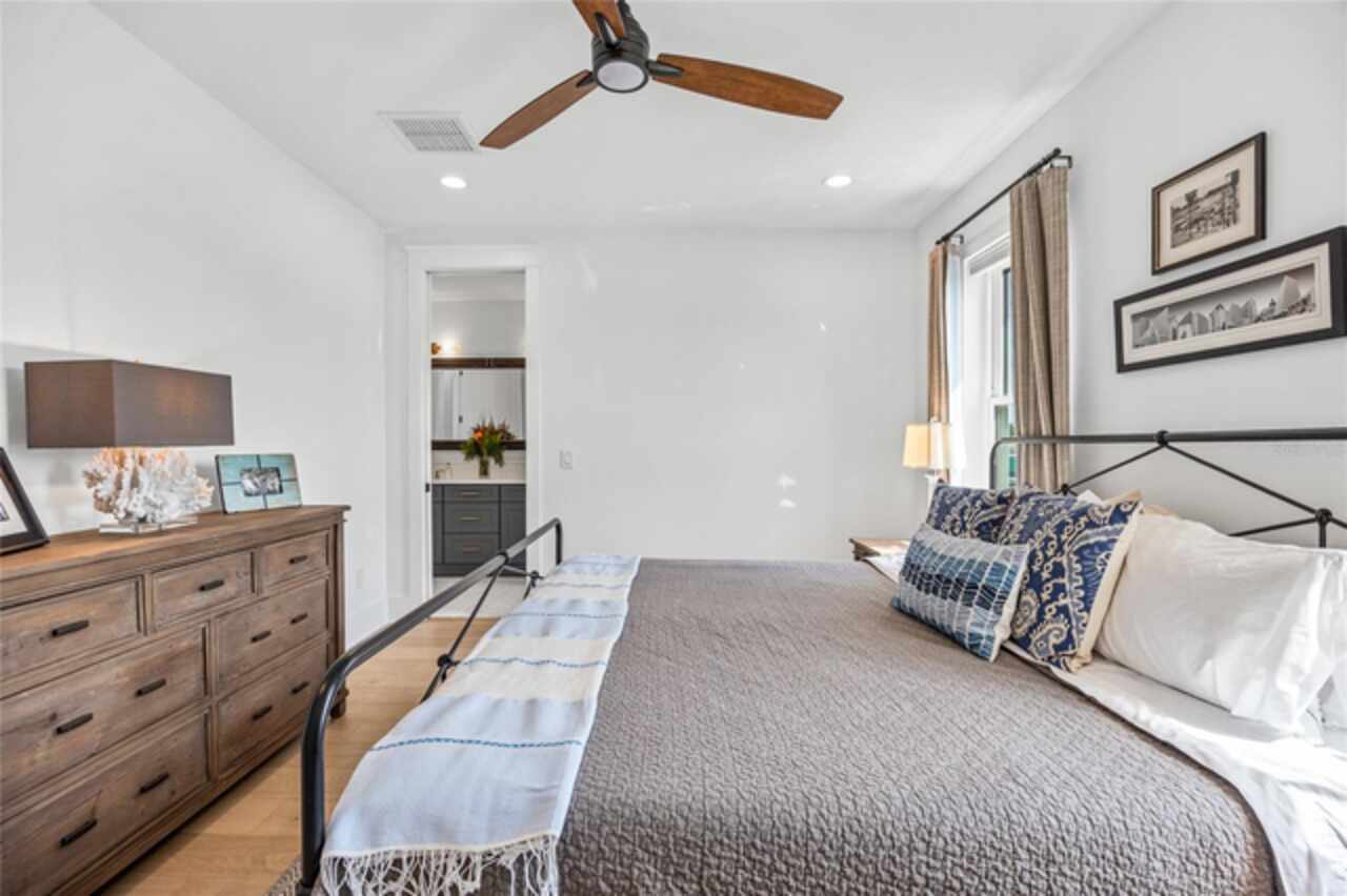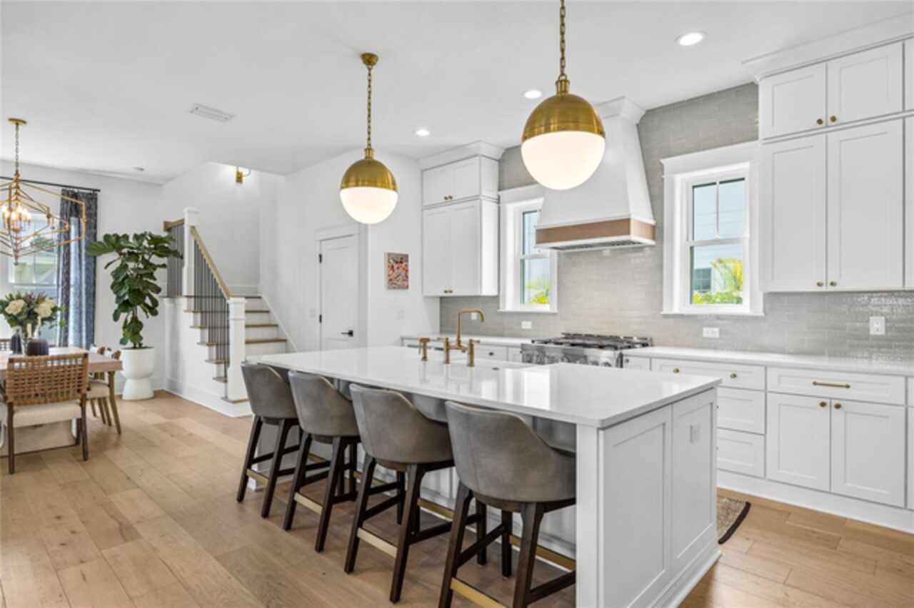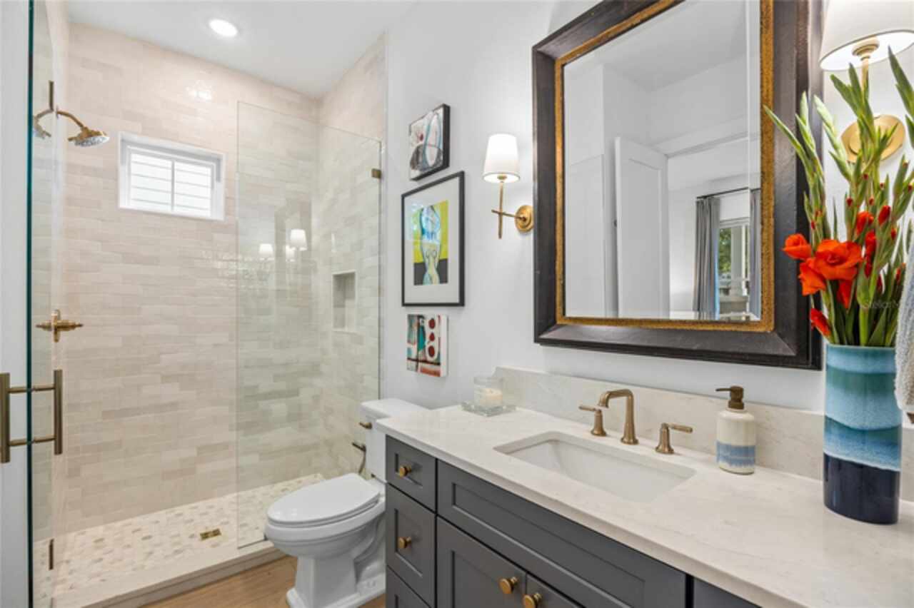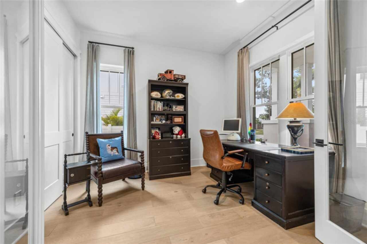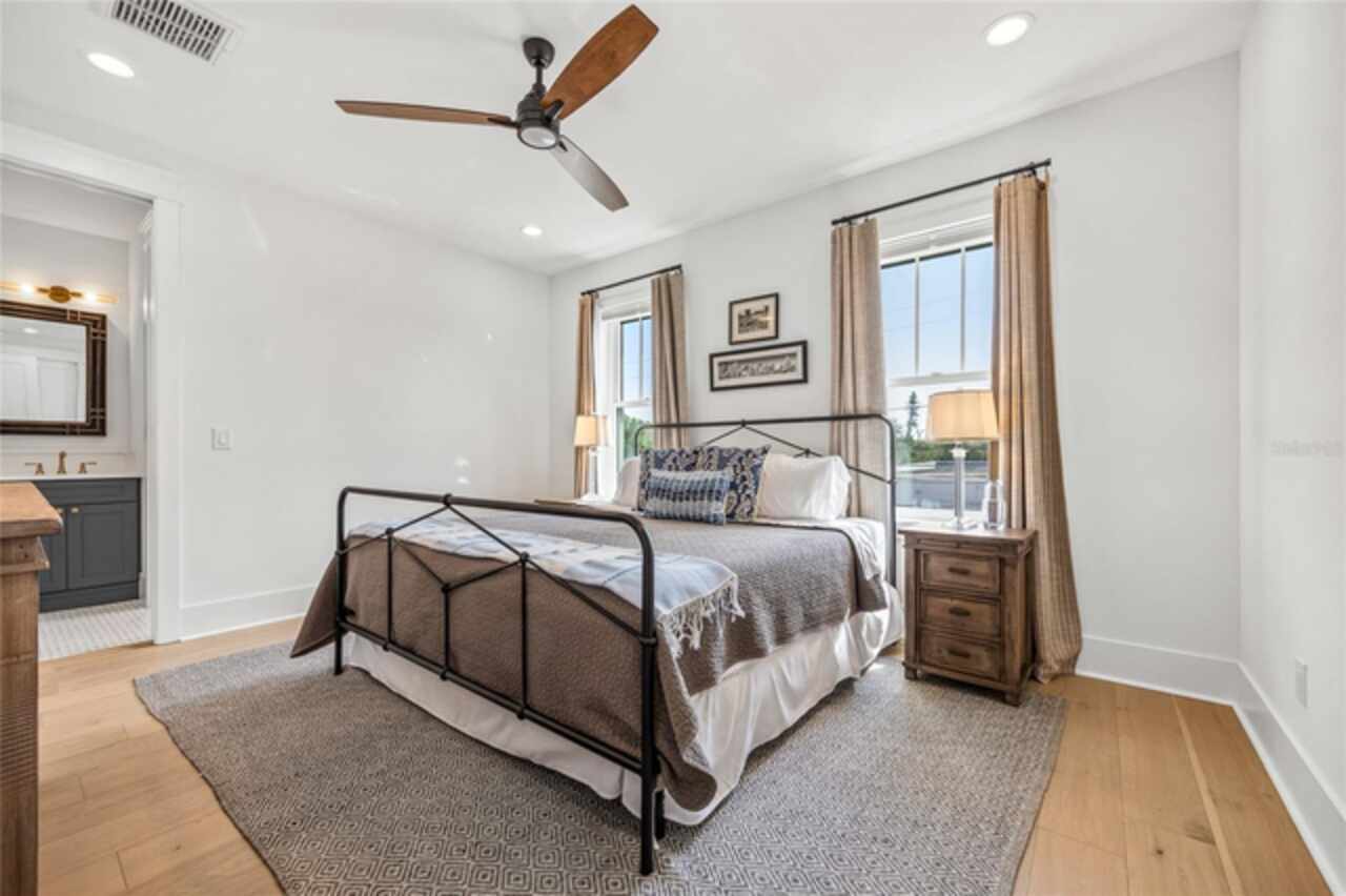 Why wait for new construction when this professionally designed 2023 Canopy Builders home is move-in ready today? Nestled in the sought-after Magnolia Heights neighborhood, this Four Square model sits on a premium 6, 200 SF lot high and dry in Flood Zone X. Built by one of St. Petersburg’s most acclaimed builders, no detail has been overlooked in this 4-bedroom + office + loft, 3-bathroom residence with a detached 2-car garage with an electric charger. From the moment you arrive, the timeless curb appeal shines with Hardie Board plank siding, impact-rated windows and doors, gas lanterns on the welcoming front porch, and a pavered walkway framed by canopy oaks. Inside, 10’ ceilings on the main level, 8’ solid interior doors, and a designer finish package set a sophisticated tone. The open-concept floor plan flows effortlessly from the living area to the chef’s kitchen—complete with a spacious island, quartz countertops, top-stack cabinetry, and a KitchenAid appliance suite featuring a 36" natural gas range. Perfect for entertaining, the home also features front and rear porches and a backyard large enough for your dream pool and outdoor retreat. Upstairs, you’ll find a versatile loft, a laundry room with custom cabinetry, quartz counters, and a sink, along with abundant storage. The primary suite is a true sanctuary with a spa-like bathroom offering a freestanding soaking tub, dual vanities, a glass walk-in shower, and a spacious walk-in custom closet. Everyday convenience meets style with impact windows, 9’ ceilings upstairs, and thoughtful touches like custom lighting and built-in storage. Location is everything—and this quiet, tree-lined street puts you minutes from Downtown St. Pete, Crescent Lake, coffee shops, restaurants, and the beaches. Move-in ready, expertly designed, and built to the highest standards—this is the Magnolia Heights home you’ve been waiting for.