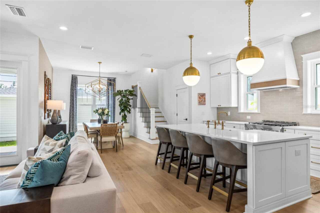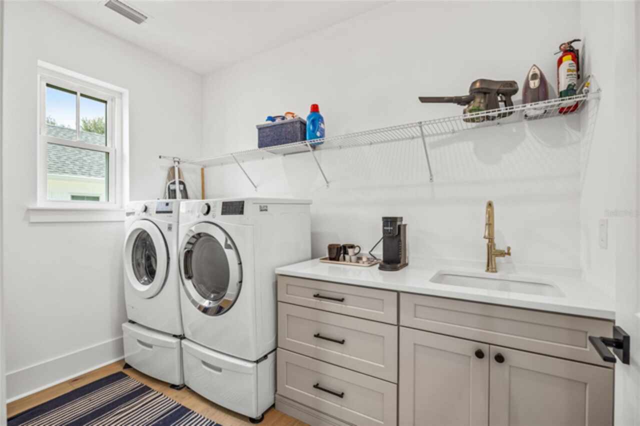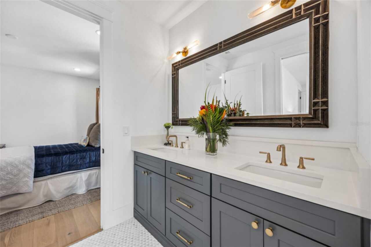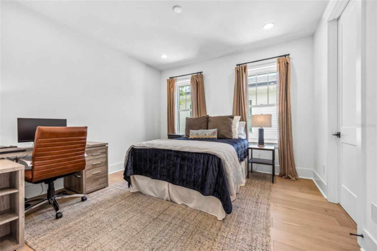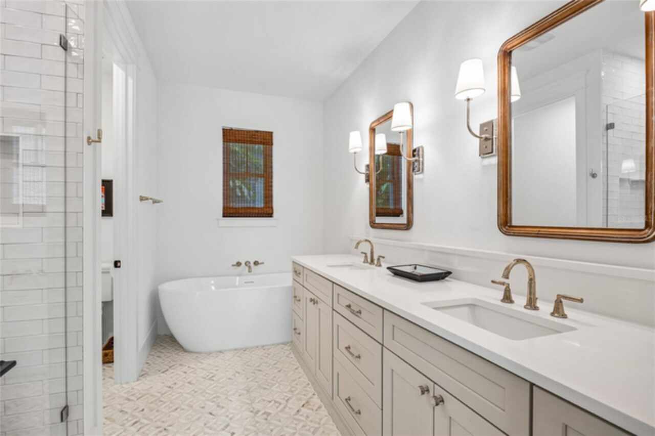 Why wait for new construction when this professionally designed 2023 Canopy Builders home is move-in ready today? Nestled in the sought-after Magnolia Heights neighborhood, this Four Square model sits on a premium 6, 200 SF lot high and dry in Flood Zone X. Built by one of St. Petersburg’s most acclaimed builders, no detail has been overlooked in this 4-bedroom + office + loft, 3-bathroom residence with a detached 2-car garage with an electric charger. From the moment you arrive, the timeless curb appeal shines with Hardie Board plank siding, impact-rated windows and doors, gas lanterns on the welcoming front porch, and a pavered walkway framed by canopy oaks. Inside, 10’ ceilings on the main level, 8’ solid interior doors, and a designer finish package set a sophisticated tone. The open-concept floor plan flows effortlessly from the living area to the chef’s kitchen—complete with a spacious island, quartz countertops, top-stack cabinetry, and a KitchenAid appliance suite featuring a 36" natural gas range. Perfect for entertaining, the home also features front and rear porches and a backyard large enough for your dream pool and outdoor retreat. Upstairs, you’ll find a versatile loft, a laundry room with custom cabinetry, quartz counters, and a sink, along with abundant storage. The primary suite is a true sanctuary with a spa-like bathroom offering a freestanding soaking tub, dual vanities, a glass walk-in shower, and a spacious walk-in custom closet. Everyday convenience meets style with impact windows, 9’ ceilings upstairs, and thoughtful touches like custom lighting and built-in storage. Location is everything—and this quiet, tree-lined street puts you minutes from Downtown St. Pete, Crescent Lake, coffee shops, restaurants, and the beaches. Move-in ready, expertly designed, and built to the highest standards—this is the Magnolia Heights home you’ve been waiting for.