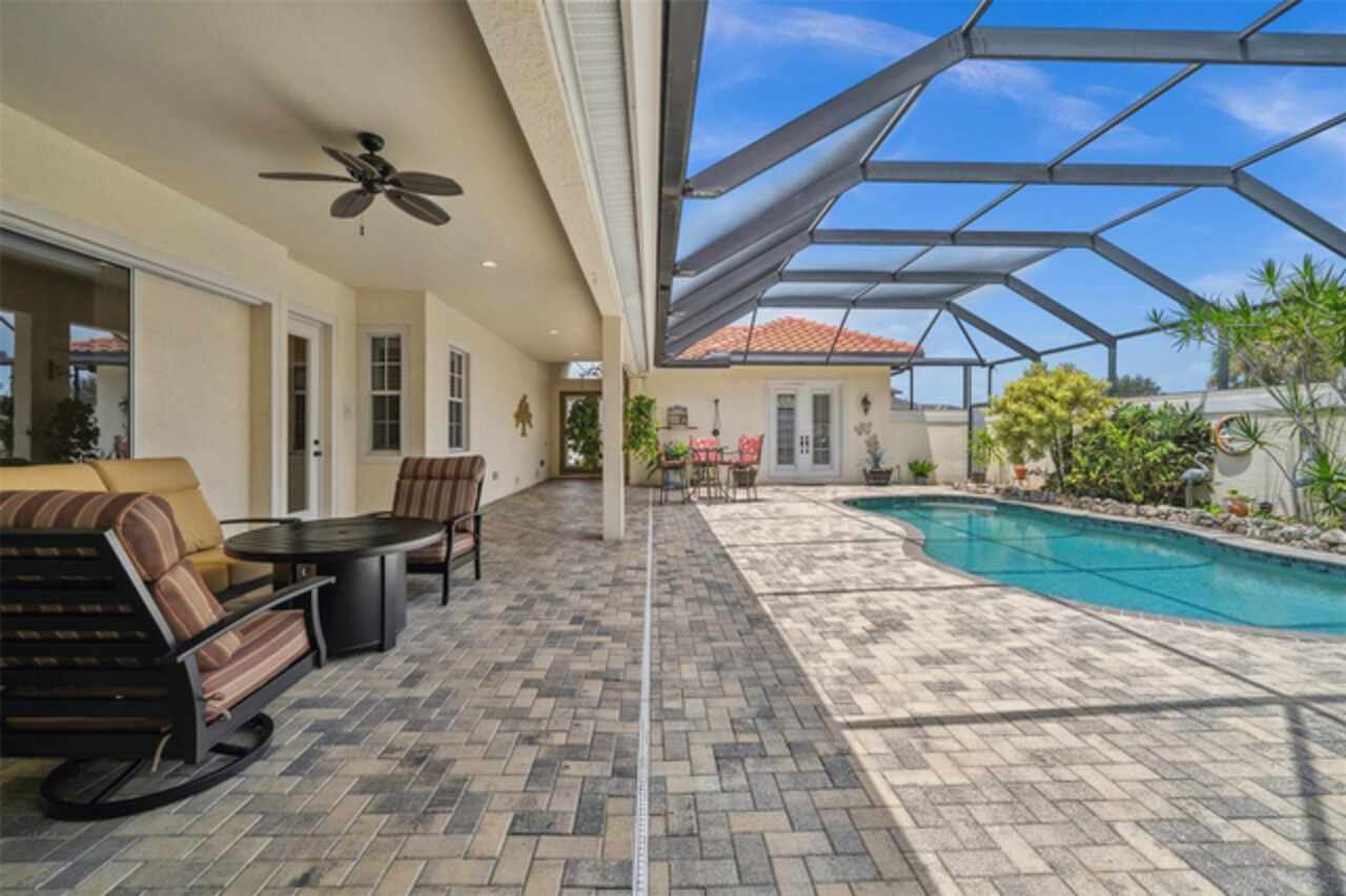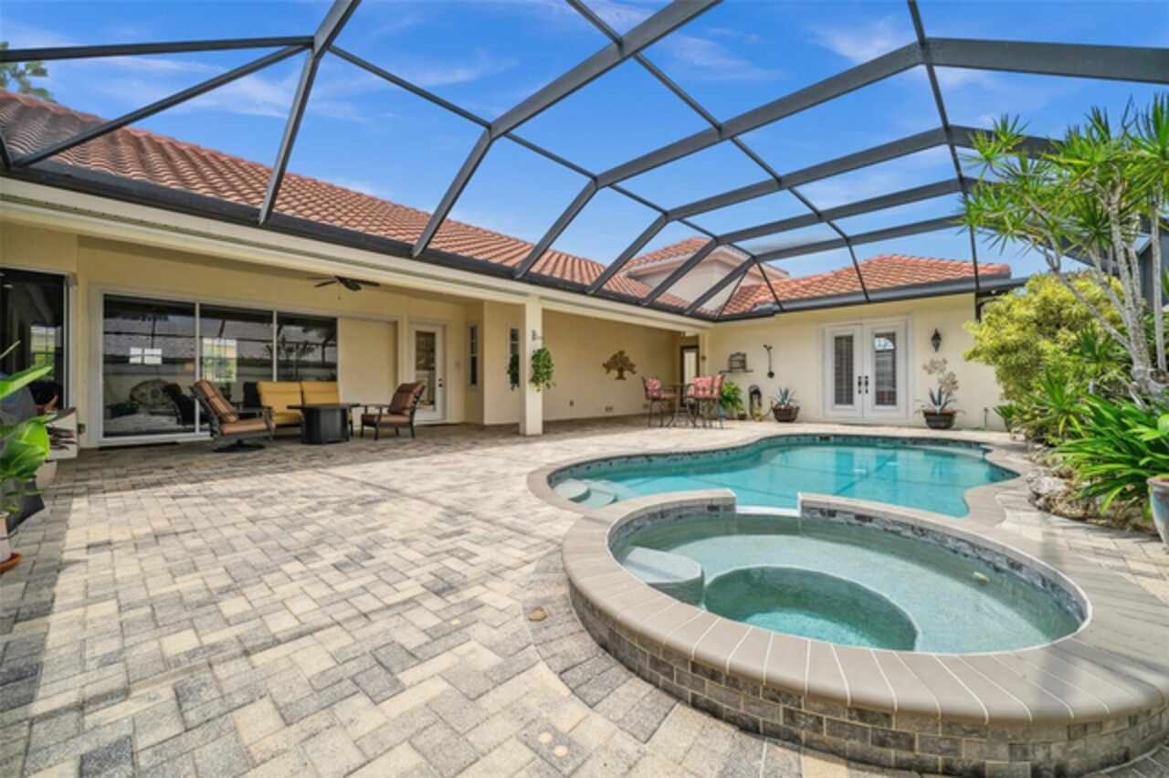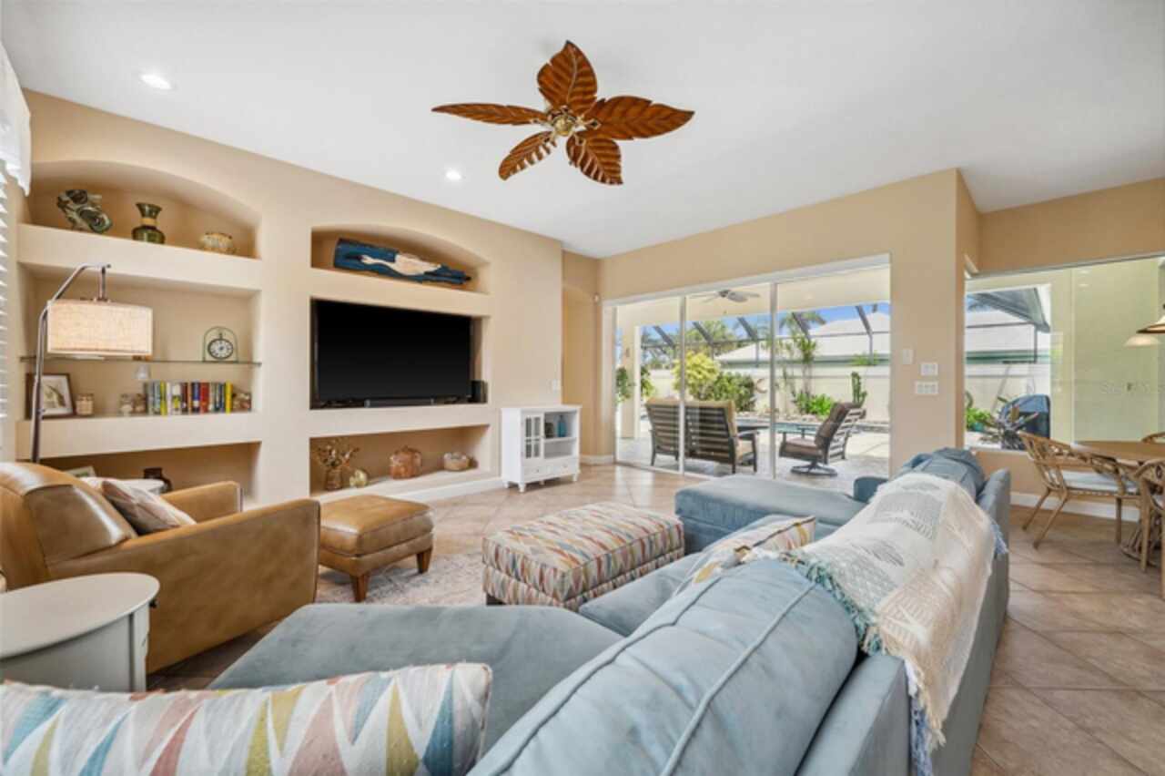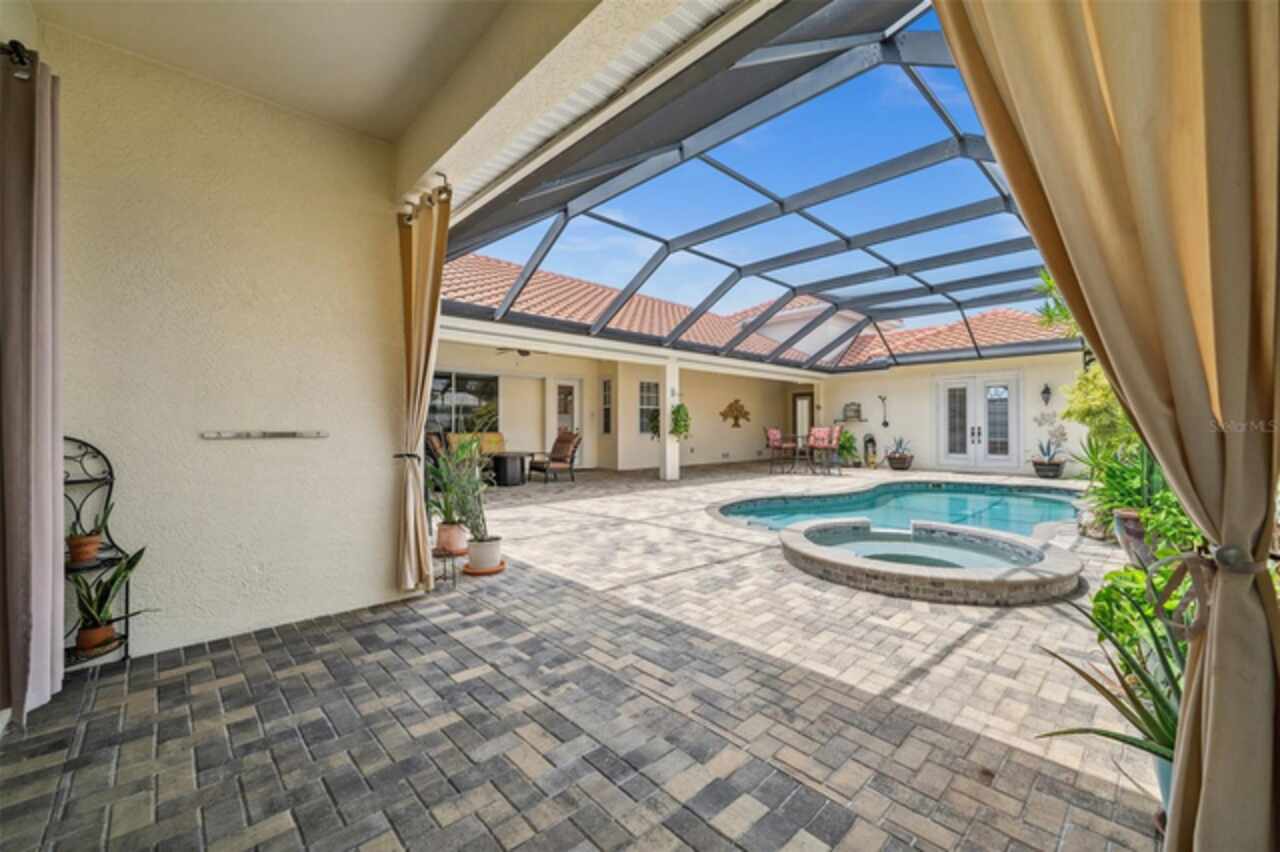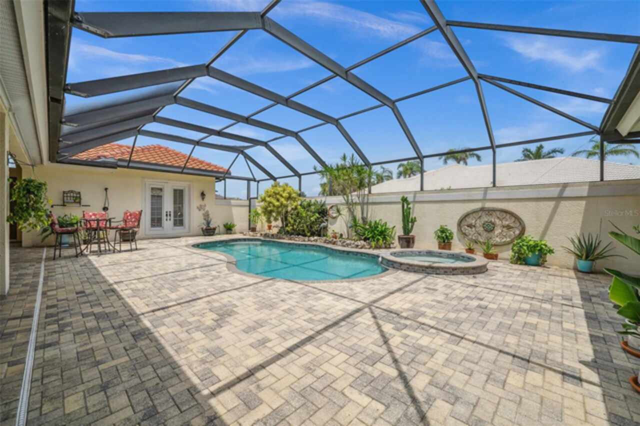 Seller is motivated! Bring ALL offers. A rare find – a separate suite that’s equally suited for multigenerational living or a personal art and craft sanctuary. Live in Resort Style living with this 4 Bedroom, 3.5 Bathroom, 2 Car Garage, Courtyard style Pool home with a Family room and a detached studio in-law suite located at Riverside in the Gated Riverwood Community. CLICK ON THE VIRTUAL TOUR LINK 1 FOR THE VIDEO AND VIRTUAL LINK 2 FOR THE 3D TOUR. Featuring a bright & airy floor plan, tray ceilings, recessed lighting, plantation shutters, and MUCH MORE! The open-concept living and dining rooms are ideal for entertaining friends and family, featuring large windows that flood the space with natural light and a screened-in patio just off the dining area. The GOURMET kitchen is complete with stainless steel appliances—including a wine cooler—granite countertops, tile backsplash, a center island, a breakfast bar, plenty of cabinets for storage, and a closet pantry. A cozy dinette with a large aquarium window offers the perfect spot for casual meals. Extend your living and entertaining space into the inviting family room, which features built-in shelving and a glass slider that opens to a private, courtyard-style lanai. The spacious master suite has direct access to the lanai through a glass slider and features a private section of the patio that can be partitioned off from the rest of the space—perfect for quiet mornings or evening relaxation. Inside, the suite includes an oversized walk-in closet and a luxurious private bath with a dual-sink vanity, soaking tub, and walk-in shower. The split floor plan offers a private guest bedroom with a built-in closet and easy access to a nearby guest bathroom. A versatile bonus room with a built-in closet adds flexibility—ideal as a home office, media room, or additional bedroom—conveniently located near a half bathroom. Step outside to your private oasis on the beautifully designed lanai—perfect for entertaining, sipping your morning coffee, or relaxing with your favorite evening beverage. The heated pool and spa provide year-round enjoyment. Whether it's for an aging parent, an independent teen, or your dream craft studio, the detached casita offers a world of possibilities – with all the privacy you need. The casita has a built-in closet, kitchenette, and full bathroom with a walk-in shower. 2021 TILE ROOF - NEWER CARPET - 2022 POOL HEATER - 2024 WATER HEATER - LANDSCAPE LIGHTING - UPDATED IRRIGATION SPRINKLER HEADS - UPGRADED PLUMBING - SANDED & SEALED PAVER DRIVEWAY & COURTYARD. Riverwood is a gated and deed-restricted community offering a Clubhouse, dog park, two community pools, tennis & pickleball courts, bocce ball, a croquet field, as well as a fitness center, library, arts & crafts room, and a variety of scheduled community events and activities! Conveniently located close to US-41 with easy access to local shopping, fine & casual dining spots, LIVE entertainment, biking, boating, and Englewood's beautiful beaches are just a short drive away, providing an opportunity to soak up the sun, swim in crystal-clear waters, or indulge in beachfront dining. Schedule your showing TODAY!