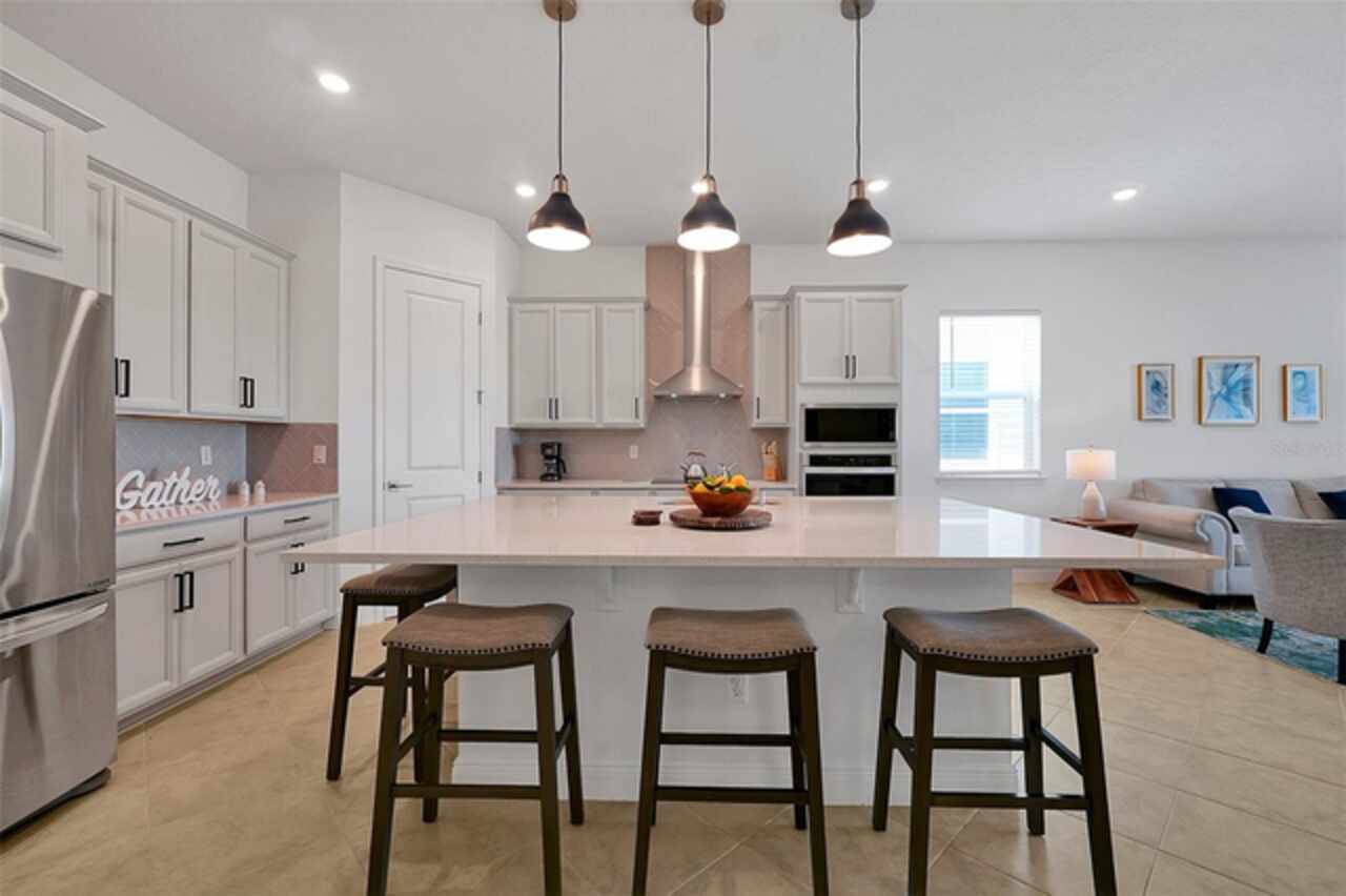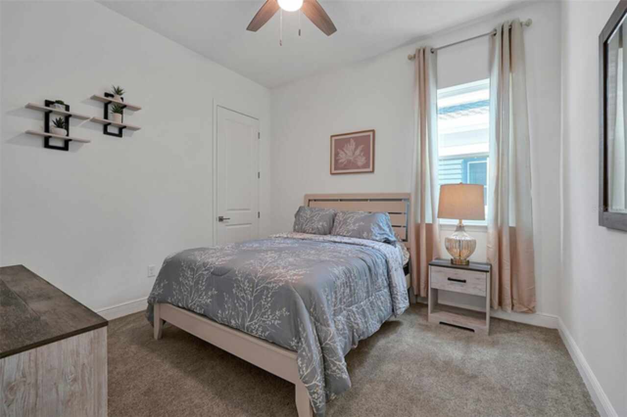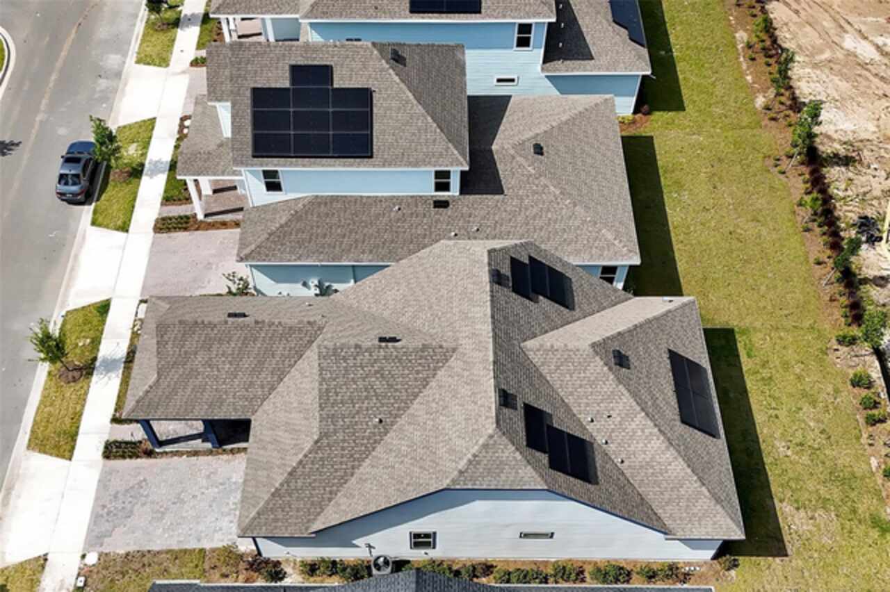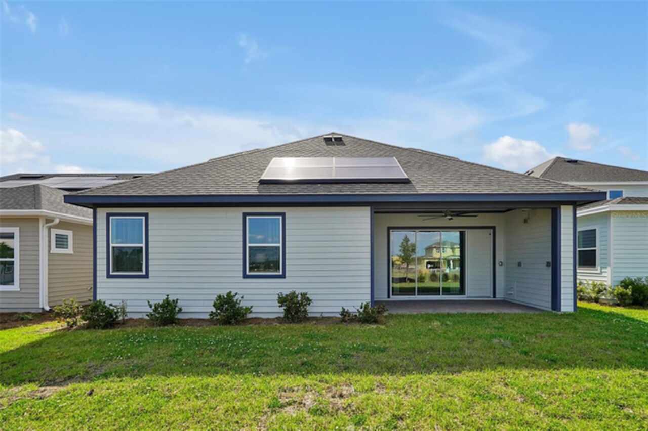 Welcome to 3055 Prospect Trail, a beautifully maintained 4-bedroom, 3-bathroom home built in 2023, offering both modern comfort and long-term savings. Located in a growing and desirable area of St. Cloud, this move-in ready home stands apart with fully owned solar panels-a rare and valuable upgrade that helps dramatically reduce your monthly electric bills. Step inside to find a spacious and open layout with tile flooring in main area and carpet in bedrooms, ideal for both everyday living and entertaining. The open style kitchen features granite countertops, stainless steel appliances, backsplash, and an oversized island perfect for family gatherings or casual meals. Enjoy the lanai, perfect for relaxing Florida evenings or weekend BBQ's. The split-bedroom with an en-suite bath and walk-in closet, plus three additional bedrooms with generous storage and natural light. Additional features include high ceilings and open concept living/dining area, 2 car garage and extended driveway. Located just minutes from schools, shopping, medical facilities, and commuter routes to Orlando and Lake Nona. Skip the builder wait-this home is ready now.