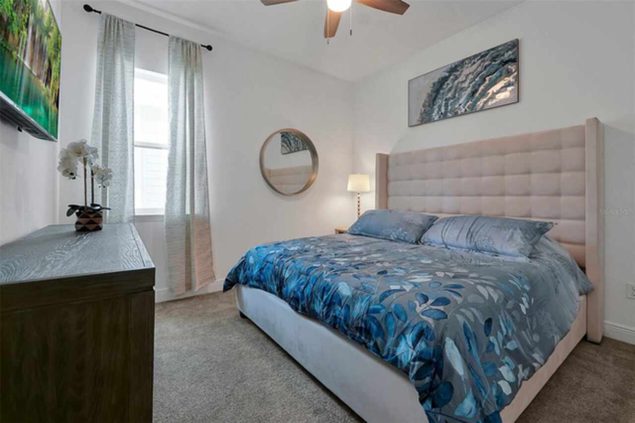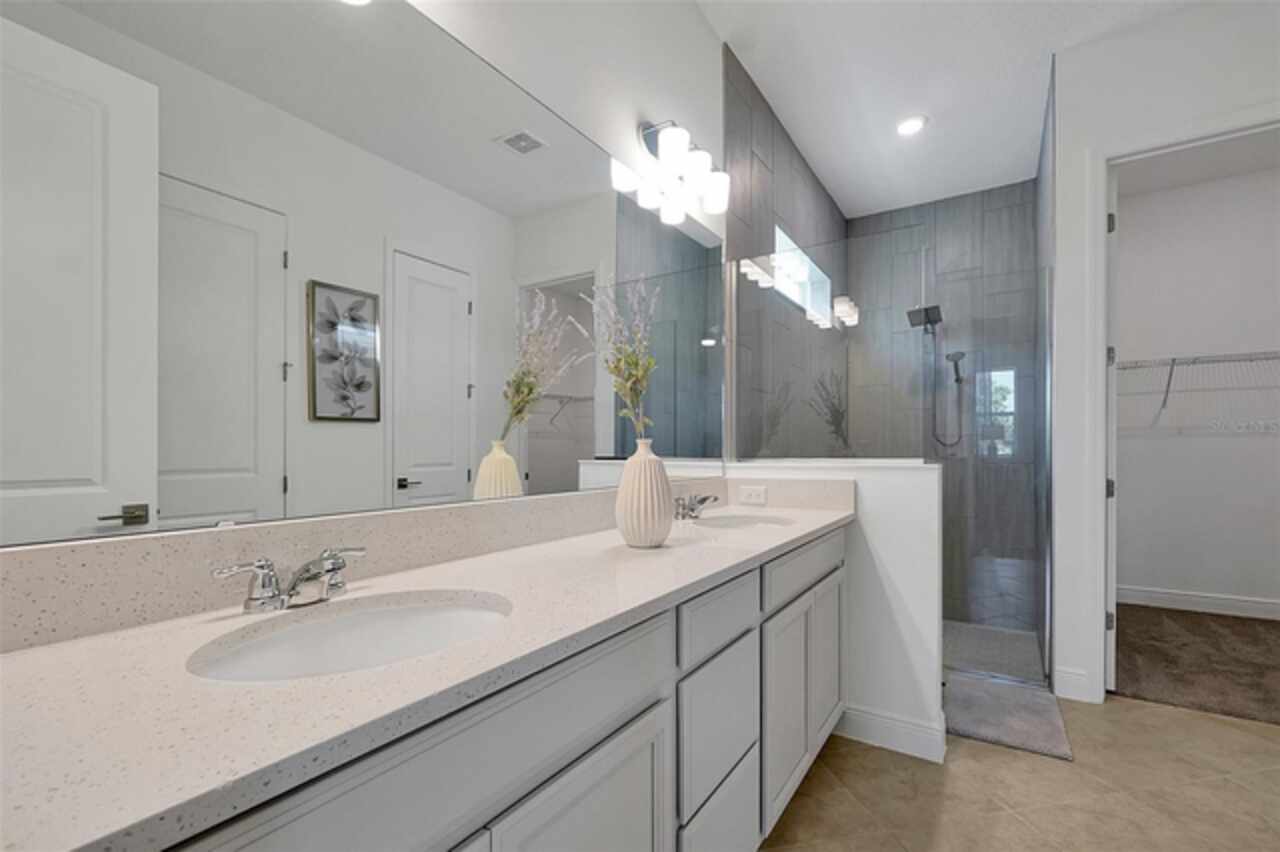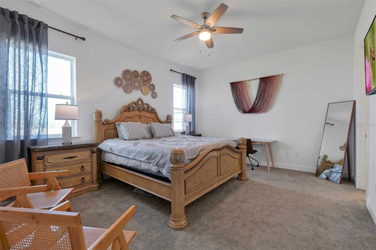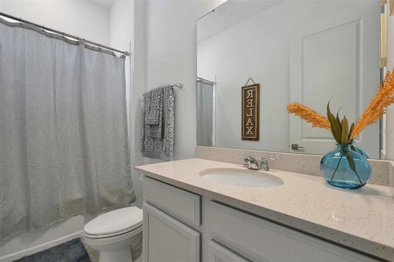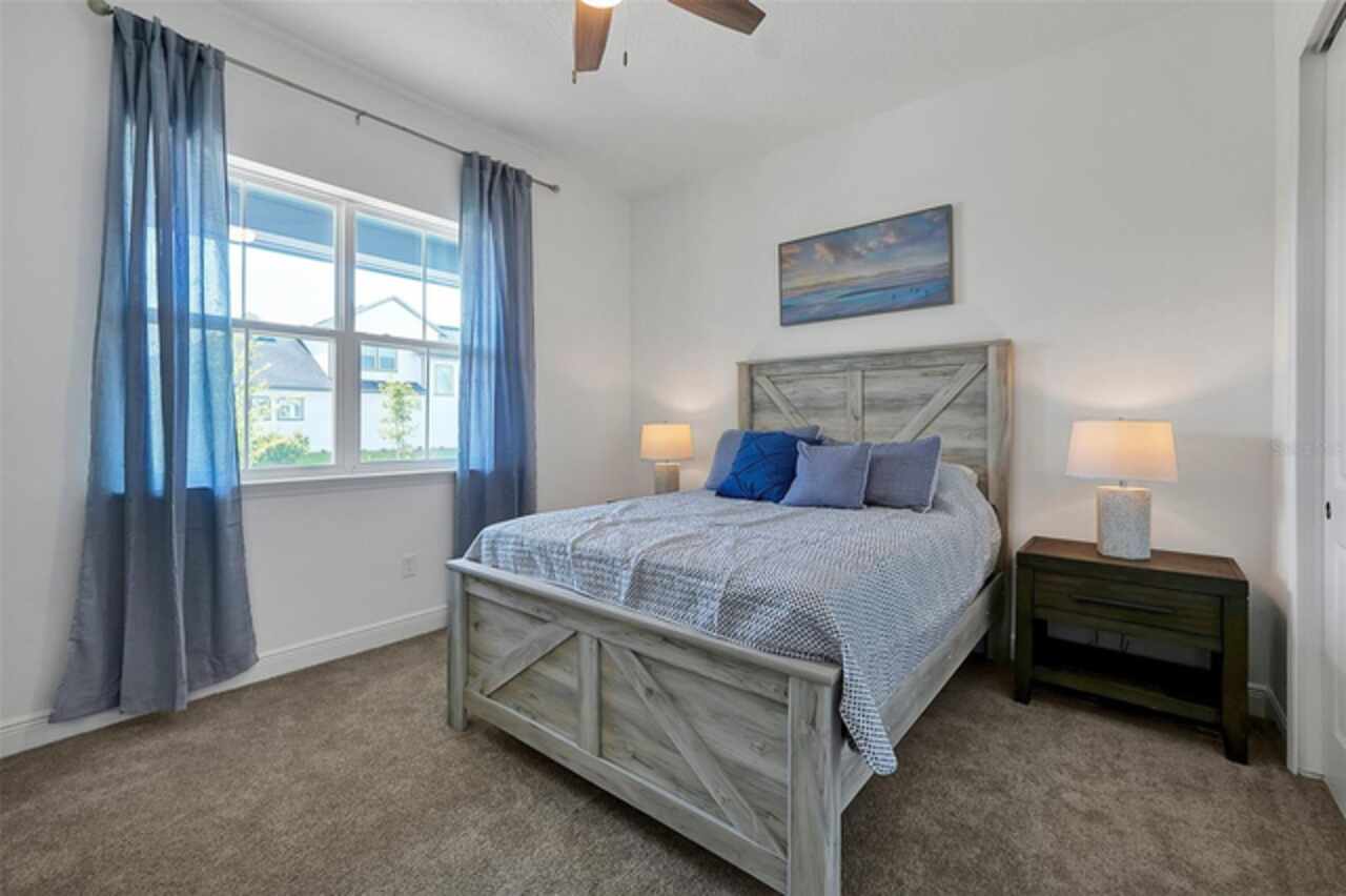 Welcome to 3055 Prospect Trail, a beautifully maintained 4-bedroom, 3-bathroom home built in 2023, offering both modern comfort and long-term savings. Located in a growing and desirable area of St. Cloud, this move-in ready home stands apart with fully owned solar panels-a rare and valuable upgrade that helps dramatically reduce your monthly electric bills. Step inside to find a spacious and open layout with tile flooring in main area and carpet in bedrooms, ideal for both everyday living and entertaining. The open style kitchen features granite countertops, stainless steel appliances, backsplash, and an oversized island perfect for family gatherings or casual meals. Enjoy the lanai, perfect for relaxing Florida evenings or weekend BBQ's. The split-bedroom with an en-suite bath and walk-in closet, plus three additional bedrooms with generous storage and natural light. Additional features include high ceilings and open concept living/dining area, 2 car garage and extended driveway. Located just minutes from schools, shopping, medical facilities, and commuter routes to Orlando and Lake Nona. Skip the builder wait-this home is ready now.