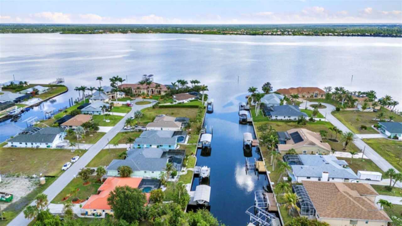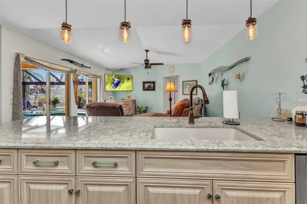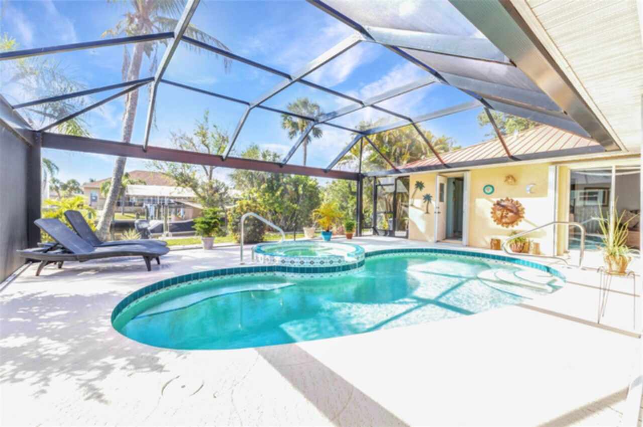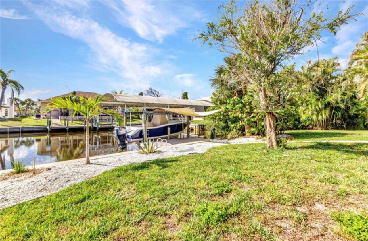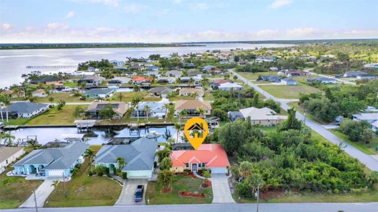 One or more photo(s) has been virtually staged. Welcome to your waterfront dream home located in the desirable community of Gulf Cove, where the optional HOA is just $120 a year and includes access to a private community boat ramp and park. This beautifully maintained residence offers the ideal Florida lifestyle with an inviting layout and a host of upgrades throughout. As you enter the home, you’re welcomed into a spacious living and dining area that flows seamlessly into the kitchen and family room with this open floor plan. The primary bedroom features two walk-in closets, private pocket slider access to the lanai, and an ensuite bathroom complete with a walk-in shower and linen closet. The updated kitchen is a true showstopper, showcasing quartz countertops, soft-close cabinets and drawers, a stunning backsplash, stainless steel appliances, and a Viking stove. A massive wall pantry with pull-out shelves and a convenient laundry room with washer and dryer provide both function and style. Just off the kitchen, the comfortable family room offers an ideal space for entertaining, with a sliding door that opens directly to the lanai. The home’s split floor plan ensures privacy, placing the guest bedrooms and a full guest bathroom—complete with pool access—on the opposite side of the house from the primary suite. Step outside to an oversized screened lanai that’s perfect for gatherings, featuring a covered area, a heated pool and spa, and serene unobstructed views of the water. The 2023-built dock and 10, 000 lb. boat lift with a canopy (2016 ) is equipped with electric and water, make this a boater’s paradise with quick access to the Myakka River and open water. The tropical landscaping, outdoor shower, and lush private backyard complete the picture of relaxed waterfront living. Recent updates include a new pool cage in 2022, water heater in 2023, air conditioning system in 2018 with a new compressor in 2024, pool heater in 2024, and a metal roof installed in 2016. The septic was recently checked and cleaned. It also has new windows (2017) and complete hurricane protection (2016 ) with accordion shutters! 2025 NEW electrical box and electrical feed and hardware at the dock. This exceptional home offers the perfect blend of comfort, convenience, and the coveted Florida coastal lifestyle. This waterfront homes sits on an oversized lot of 10, 599 Sq. Ft Call today for your private showing.