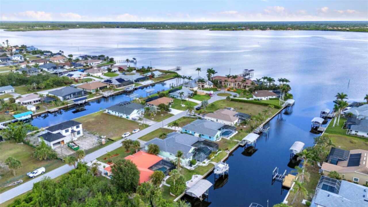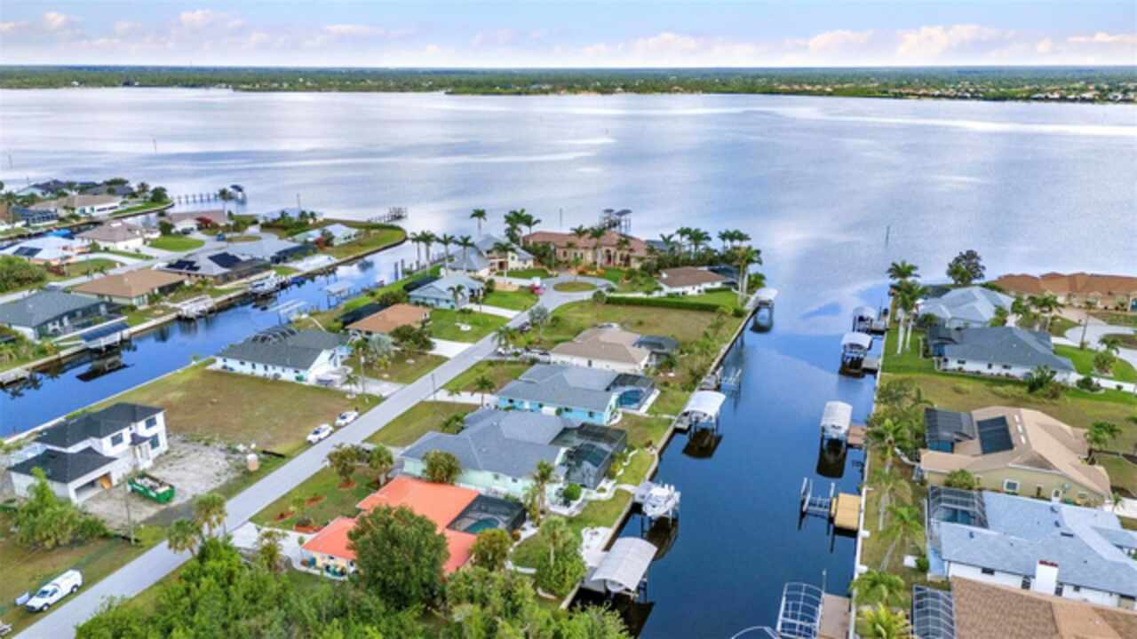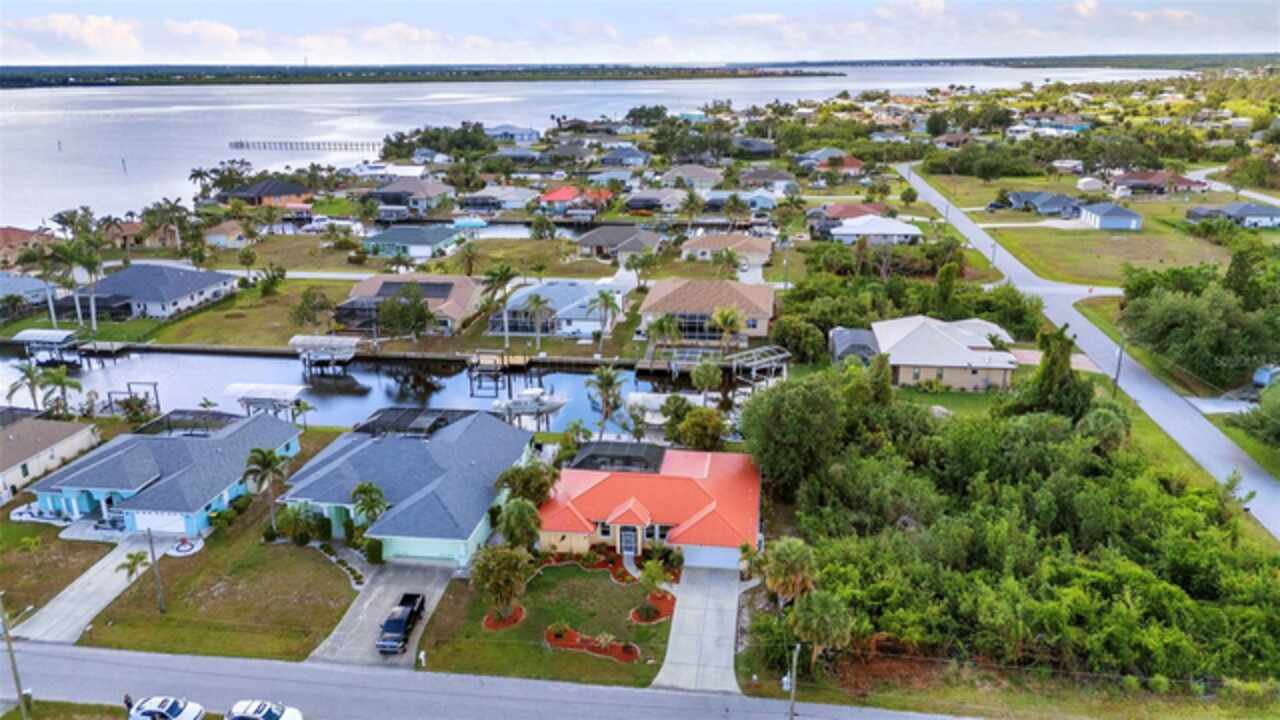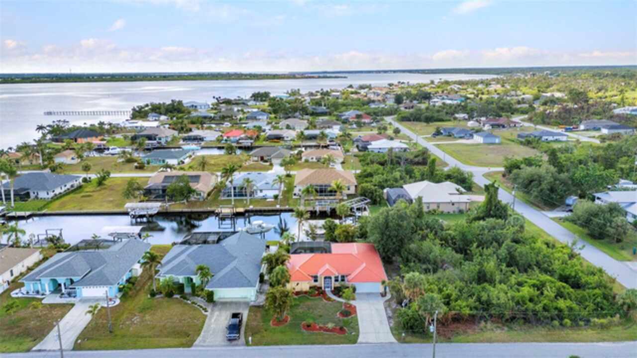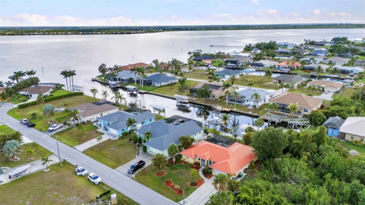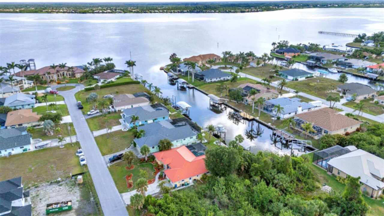 One or more photo(s) has been virtually staged. Welcome to your waterfront dream home located in the desirable community of Gulf Cove, where the optional HOA is just $120 a year and includes access to a private community boat ramp and park. This beautifully maintained residence offers the ideal Florida lifestyle with an inviting layout and a host of upgrades throughout. As you enter the home, you’re welcomed into a spacious living and dining area that flows seamlessly into the kitchen and family room with this open floor plan. The primary bedroom features two walk-in closets, private pocket slider access to the lanai, and an ensuite bathroom complete with a walk-in shower and linen closet. The updated kitchen is a true showstopper, showcasing quartz countertops, soft-close cabinets and drawers, a stunning backsplash, stainless steel appliances, and a Viking stove. A massive wall pantry with pull-out shelves and a convenient laundry room with washer and dryer provide both function and style. Just off the kitchen, the comfortable family room offers an ideal space for entertaining, with a sliding door that opens directly to the lanai. The home’s split floor plan ensures privacy, placing the guest bedrooms and a full guest bathroom—complete with pool access—on the opposite side of the house from the primary suite. Step outside to an oversized screened lanai that’s perfect for gatherings, featuring a covered area, a heated pool and spa, and serene unobstructed views of the water. The 2023-built dock and 10, 000 lb. boat lift with a canopy (2016 ) is equipped with electric and water, make this a boater’s paradise with quick access to the Myakka River and open water. The tropical landscaping, outdoor shower, and lush private backyard complete the picture of relaxed waterfront living. Recent updates include a new pool cage in 2022, water heater in 2023, air conditioning system in 2018 with a new compressor in 2024, pool heater in 2024, and a metal roof installed in 2016. The septic was recently checked and cleaned. It also has new windows (2017) and complete hurricane protection (2016 ) with accordion shutters! 2025 NEW electrical box and electrical feed and hardware at the dock. This exceptional home offers the perfect blend of comfort, convenience, and the coveted Florida coastal lifestyle. This waterfront homes sits on an oversized lot of 10, 599 Sq. Ft Call today for your private showing.