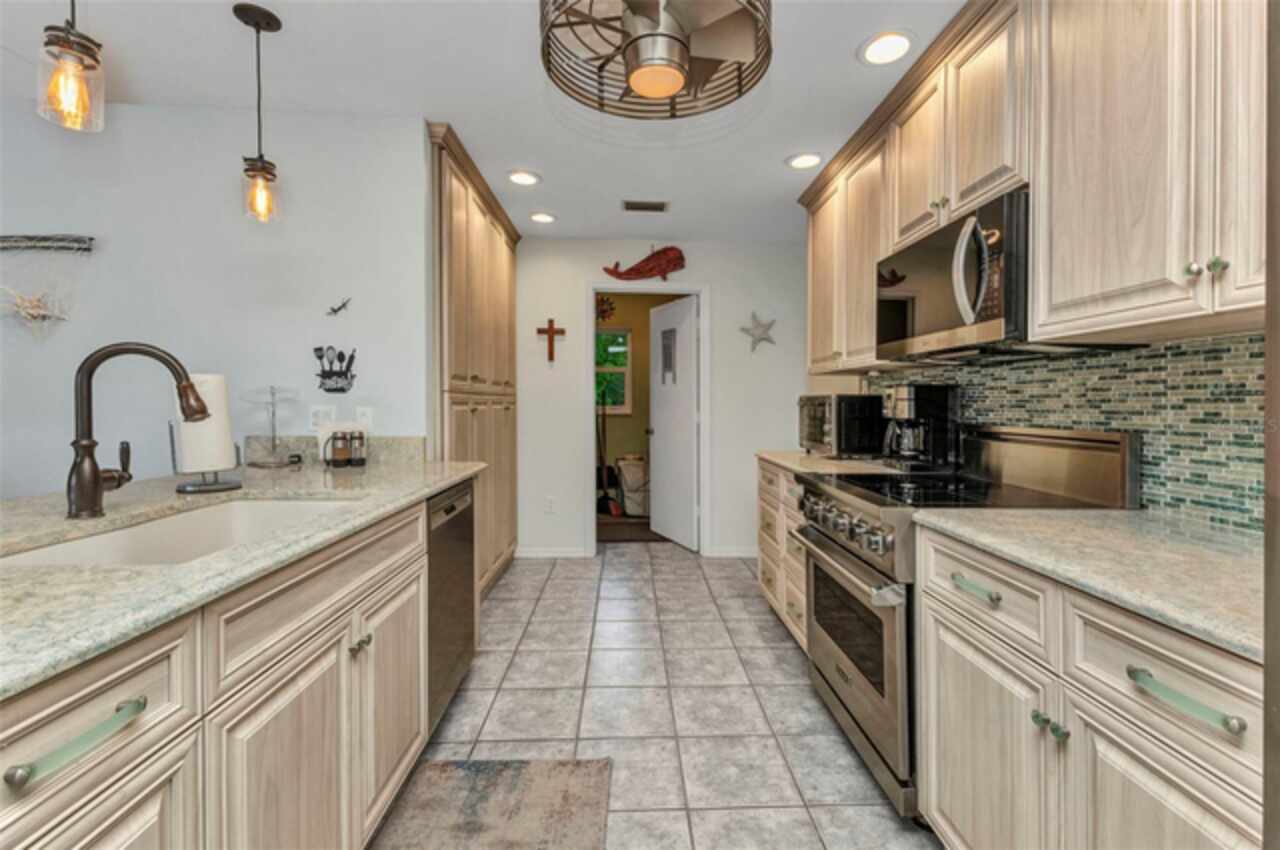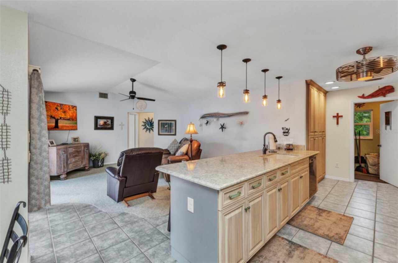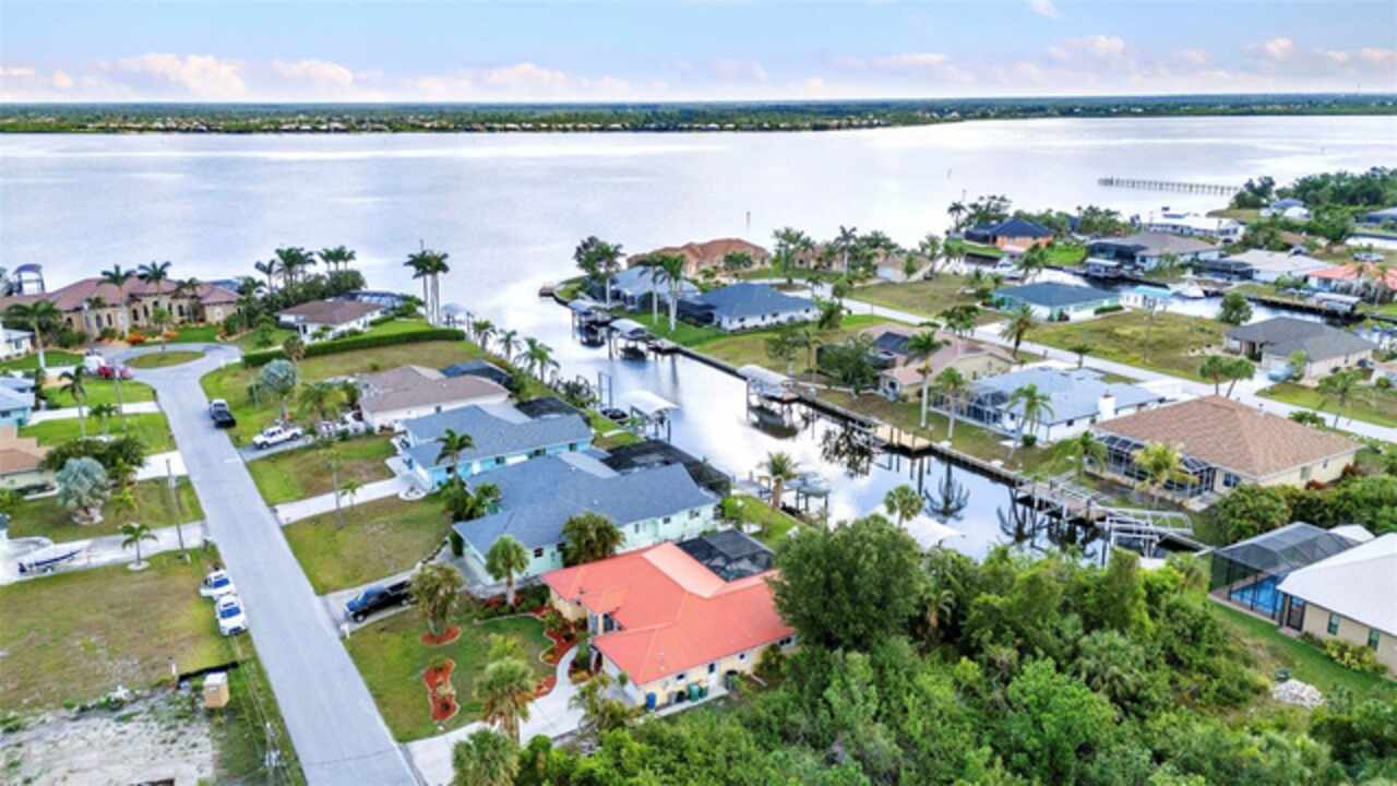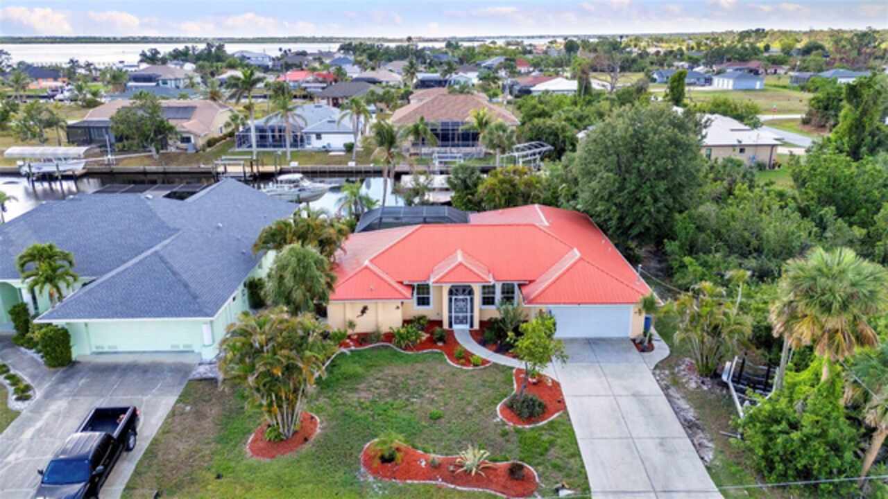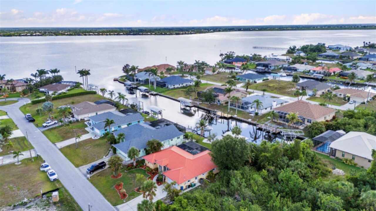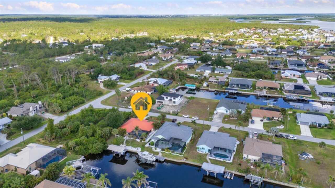One or more photo(s) has been virtually staged. Welcome to your waterfront dream home located in the desirable community of Gulf Cove, where the optional HOA is just $120 a year and includes access to a private community boat ramp and park. This beautifully maintained residence offers the ideal Florida lifestyle with an inviting layout and a host of upgrades throughout. As you enter the home, you’re welcomed into a spacious living and dining area that flows seamlessly into the kitchen and family room with this open floor plan. The primary bedroom features two walk-in closets, private pocket slider access to the lanai, and an ensuite bathroom complete with a walk-in shower and linen closet. The updated kitchen is a true showstopper, showcasing quartz countertops, soft-close cabinets and drawers, a stunning backsplash, stainless steel appliances, and a Viking stove. A massive wall pantry with pull-out shelves and a convenient laundry room with washer and dryer provide both function and style. Just off the kitchen, the comfortable family room offers an ideal space for entertaining, with a sliding door that opens directly to the lanai. The home’s split floor plan ensures privacy, placing the guest bedrooms and a full guest bathroom—complete with pool access—on the opposite side of the house from the primary suite. Step outside to an oversized screened lanai that’s perfect for gatherings, featuring a covered area, a heated pool and spa, and serene unobstructed views of the water. The 2023-built dock and 10, 000 lb. boat lift with a canopy (2016 ) is equipped with electric and water, make this a boater’s paradise with quick access to the Myakka River and open water. The tropical landscaping, outdoor shower, and lush private backyard complete the picture of relaxed waterfront living. Recent updates include a new pool cage in 2022, water heater in 2023, air conditioning system in 2018 with a new compressor in 2024, pool heater in 2024, and a metal roof installed in 2016. The septic was recently checked and cleaned. It also has new windows (2017) and complete hurricane protection (2016 ) with accordion shutters! 2025 NEW electrical box and electrical feed and hardware at the dock. This exceptional home offers the perfect blend of comfort, convenience, and the coveted Florida coastal lifestyle. This waterfront homes sits on an oversized lot of 10, 599 Sq. Ft Call today for your private showing.