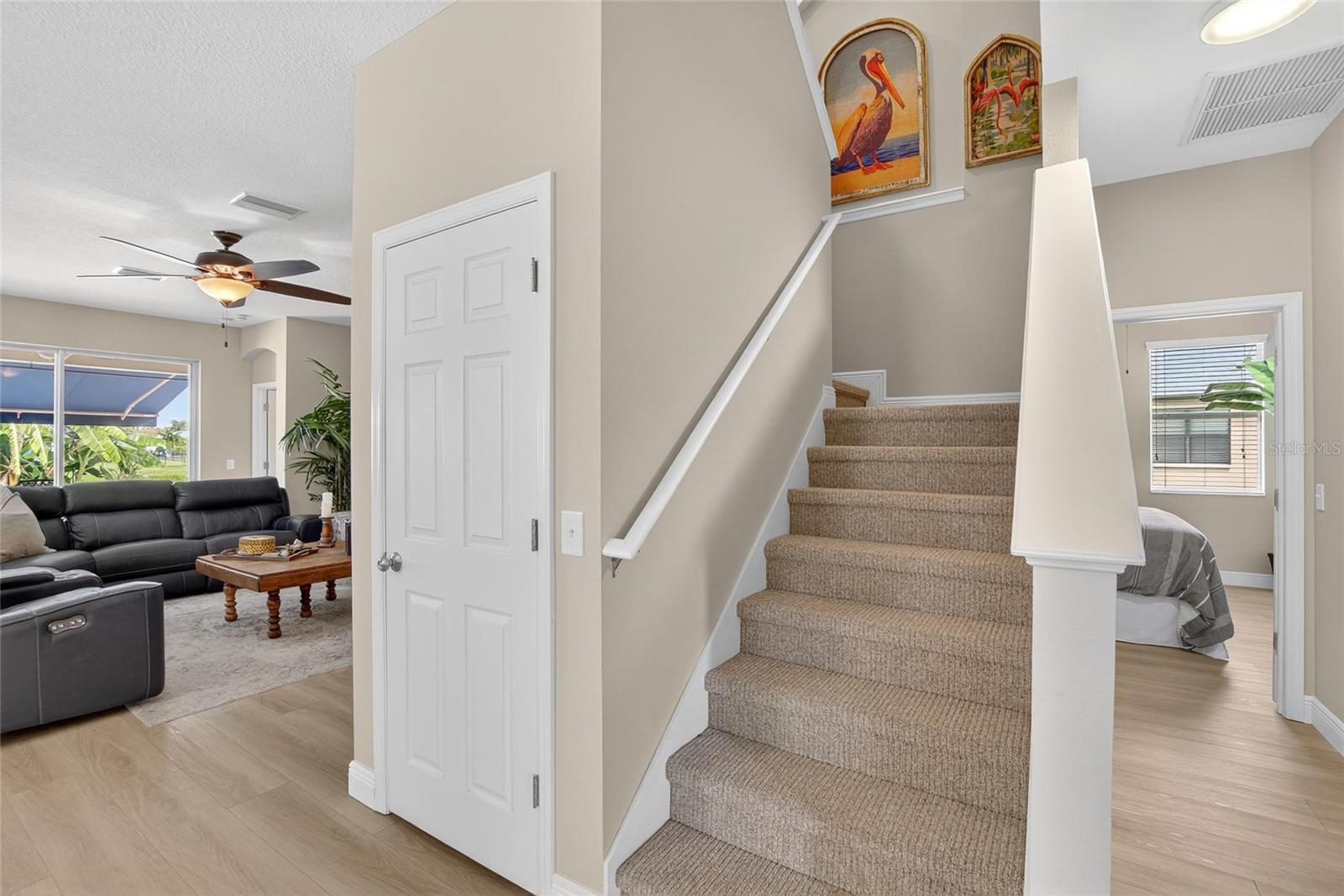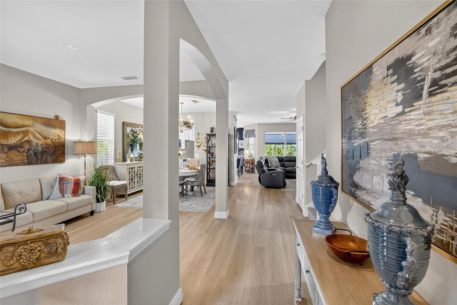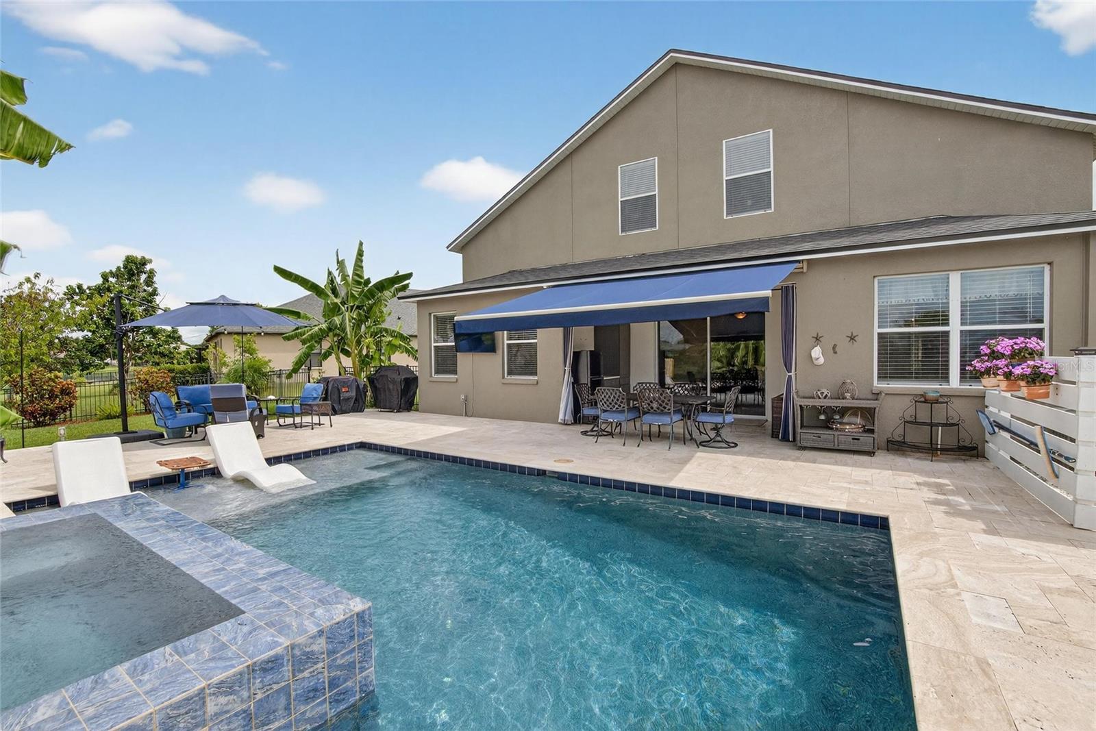 Live the Florida lifestyle you’ve been seeking in this gorgeous 4 bedroom, 3 bath, 3 car garage home in Harbour Isles. This home opens to a bright, open floor plan with elegant finishes throughout, starting with new, durable Luxury Vinyl Plank flooring and 5 1/2” baseboards. Four spacious bedrooms offer serene sanctuaries, with the primary suite and second bedroom conveniently located on the first floor. Two more bedrooms and a bonus room are upstairs with the third bath. The primary bedroom’s en-suite bath with soaking tub and step-in shower has new ceramic tile flooring, upgraded white cabinetry, quartz countertop with undermount porcelain sinks, tile backsplash, and separate water closet with soft-close toilet (2025). The second bath also has upgraded cabinetry, quartz countertop with undermount porcelain sink, tile backsplash, and soft-close toilet. The kitchen, overlooking the family room, was upgraded in 2022 with crisp, white cabinetry, a oversized island with seating for 3, quartz countertops, and stylish tile backsplash. Soft closing cabinetry with quartz countertops and tile backsplash were added in the dinette area to provide additional storage. Exit the family room via sliding glass doors to your private outdoor oasis. This resort-style entertainment area is showcased by a heated, in-ground saltwater pool and 8-person spillover spa, surrounded by a spacious travertine deck and lush landscaping. The pool has a tanning shelf, automatic cleaners, LED lighting, and both the pool and spa can easily be operated remotely via your cell phone. The covered lanai has an electric awning with LED lighting, a custom built dry bar with refrigerator, and curtains, should you wish to forego watching those majestic Florida sunsets. Don’t miss the opportunity to make this extraordinary home yours!