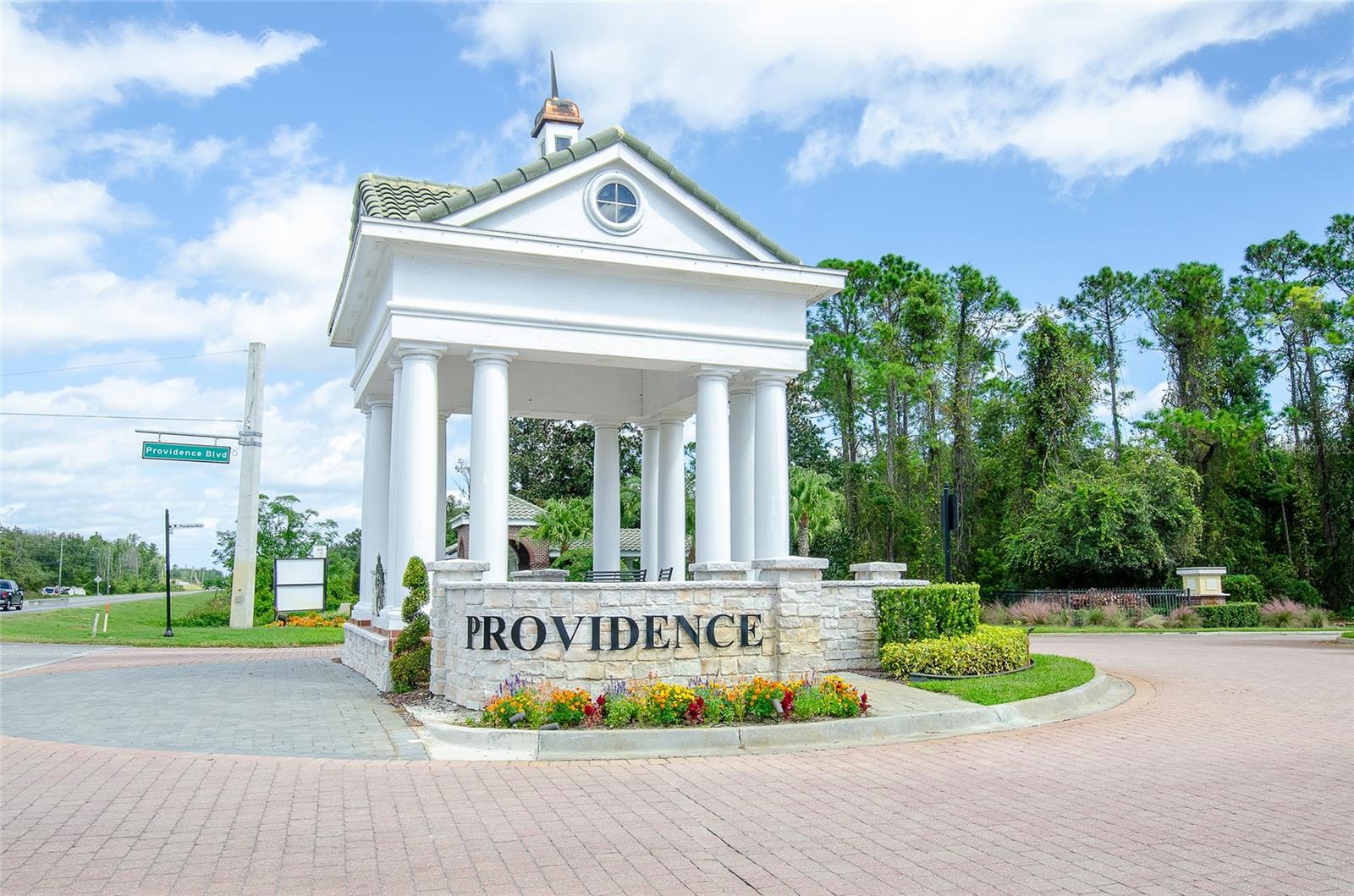 Welcome to the next top of the line energy efficient NextGen home! Located in the Beautiful Providence Golf Community. This 2.5 year home has leased solar and water filtration systems and embodies the making of new family memories with a large open concept kitchen/living room combination. This Home has 4 bedroom, 3 bathrooms and a den/office/5th bedroom. The kitchen boasts 42 inch white cabinets, quartz countertops, stainless steel appliances and an island that seats four comfortably. The laundry room sits between the kitchen and 2 car garage. All 3 bathrooms have quartz countertops that match your kitchen. A large primary bedroom with two closets (one is a walk-in) and a beautiful bathroom with a walk-in shower. The In-law suite has it's own entrance, living room, bedroom, bath, kitchenette and laundry unit. The driveway has been extended to fit 3 vehicles(depending on the size). Sit on the screened patio to watch beautiful sunrises and wild life. Providence is resort style living at it's best with a fitness center, tennis/pickleball courts, 2 pools, dog parks, restaurant and a pay as you play 18 hole golf course. LOW HOA fees and NO CDD. Rooms sizes are from the original builder, buyer to verify. Video Surveillance on premises.