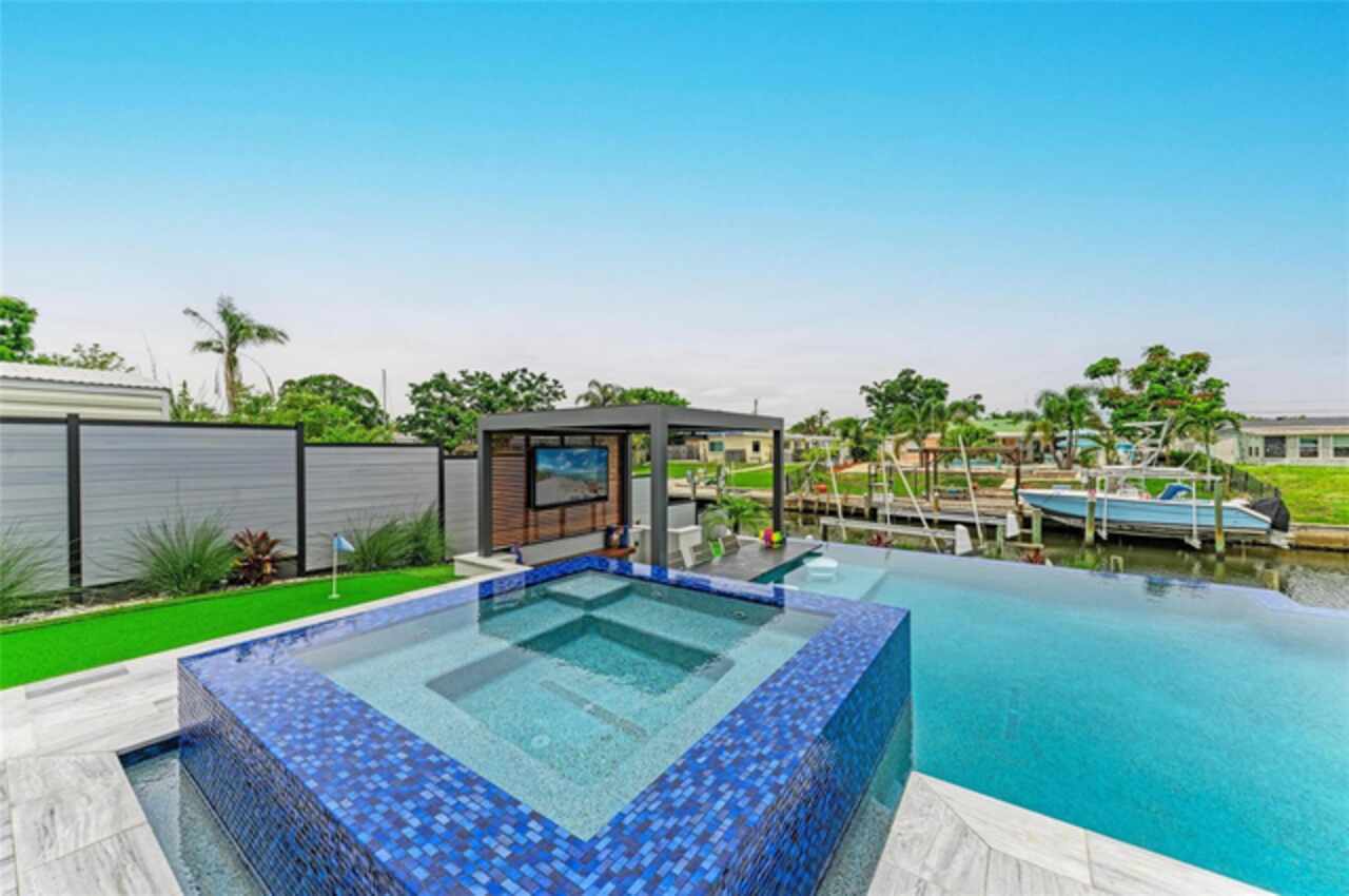 Price reduction! Investors you will not want to miss this one! NO Island traffic here, Property/House stayed dry last year. Coastal Luxury Meets Waterfront Adventure – Deep Water Canal Home with Resort-Style Amenities Welcome to your private waterfront paradise called Edgewater Luxe, where luxury, leisure, and location converge on a deep-water canal just minutes from the open expanse of Sarasota Bay. Boasting 70 feet of seawall, this exceptional property offers direct boating access to the Gulf and includes a private dock with electric and water, accommodating up to a 26’ boat, plus a jet ski lift—the ideal setup for serious boaters and water-lovers alike. Step inside this expansive 5-bedroom, 3-bathroom residence and immediately feel at home. Perfectly designed for entertaining, the property flows seamlessly from indoor comfort to incredible outdoor living, crowned by a one-of-a-kind rooftop deck offering panoramic views of the water and your own personal oasis. The crown jewel of this estate? A $400k+ custom-designed, heated infinity pool and spa complete with a swim-up bar, all set against the backdrop of the glistening canal. Lounge in the sunken pergolux poolside with automated louvers and LED lights under a mounted TV, catch the big game, or unwind with your favorite show—right from the water. Surrounding the pool is a 6-hole putting green, a fire pit lounge area, and ample space for al fresco entertaining. Just off the home, enjoy a fully covered outdoor kitchen and dining space, perfect for coastal evenings spent with family and friends. A newer roof and HVAC system, along with numerous interior and exterior upgrades, make this home turn-key and move-in ready. For added convenience, a 12x24 parking pad offers dedicated space for your boat trailer or extra vehicle. Zoned in the desirable AE/X flood zone, this property remained high and dry through recent hurricanes, providing added peace of mind. And with no deed restrictions, the home is eligible for nightly and weekly rentals, offering exceptional income potential for short-term vacation stays. The neighborhood is an amenity-rich gem, featuring a private recreational center with marina, tennis courts, swimming pool, clubhouse, playground, beach area, kayak launch, and fishing pier—all for just $10/year. Located mere minutes from Sarasota Airport, downtown Sarasota, shopping, and IMG Academy, this home is a rare combination of location, lifestyle, and luxury. With Sarasota Bay—a majestic, 22, 500-acre boating and fishing haven—as your playground, this is truly coastal living at its finest. All measurements approximate, please verify. All rental restrictions and non restrictions to be verified by buyer through Manatee County.
