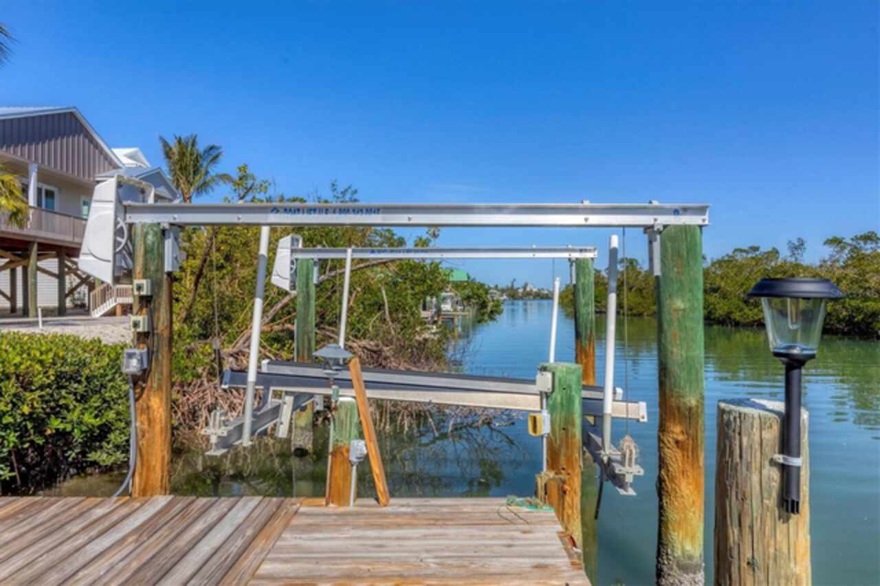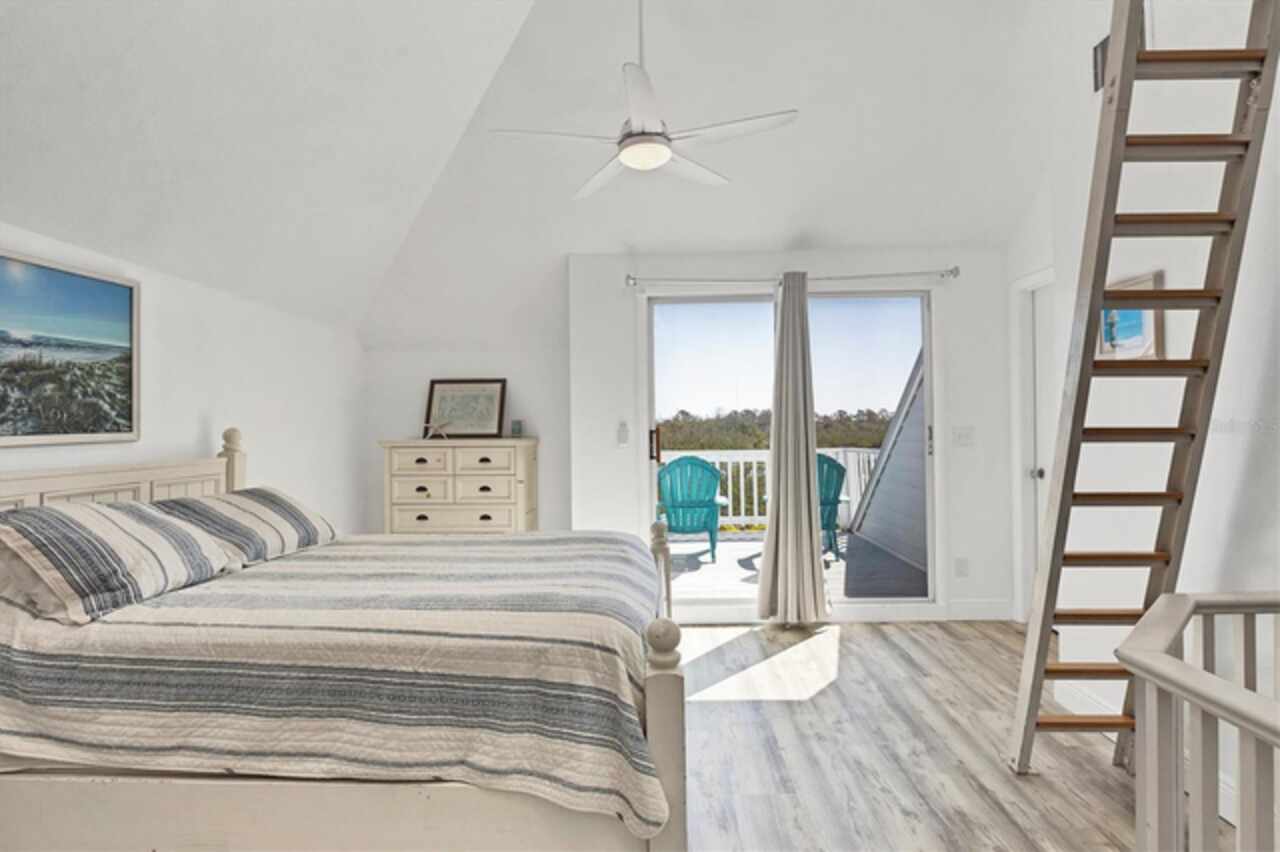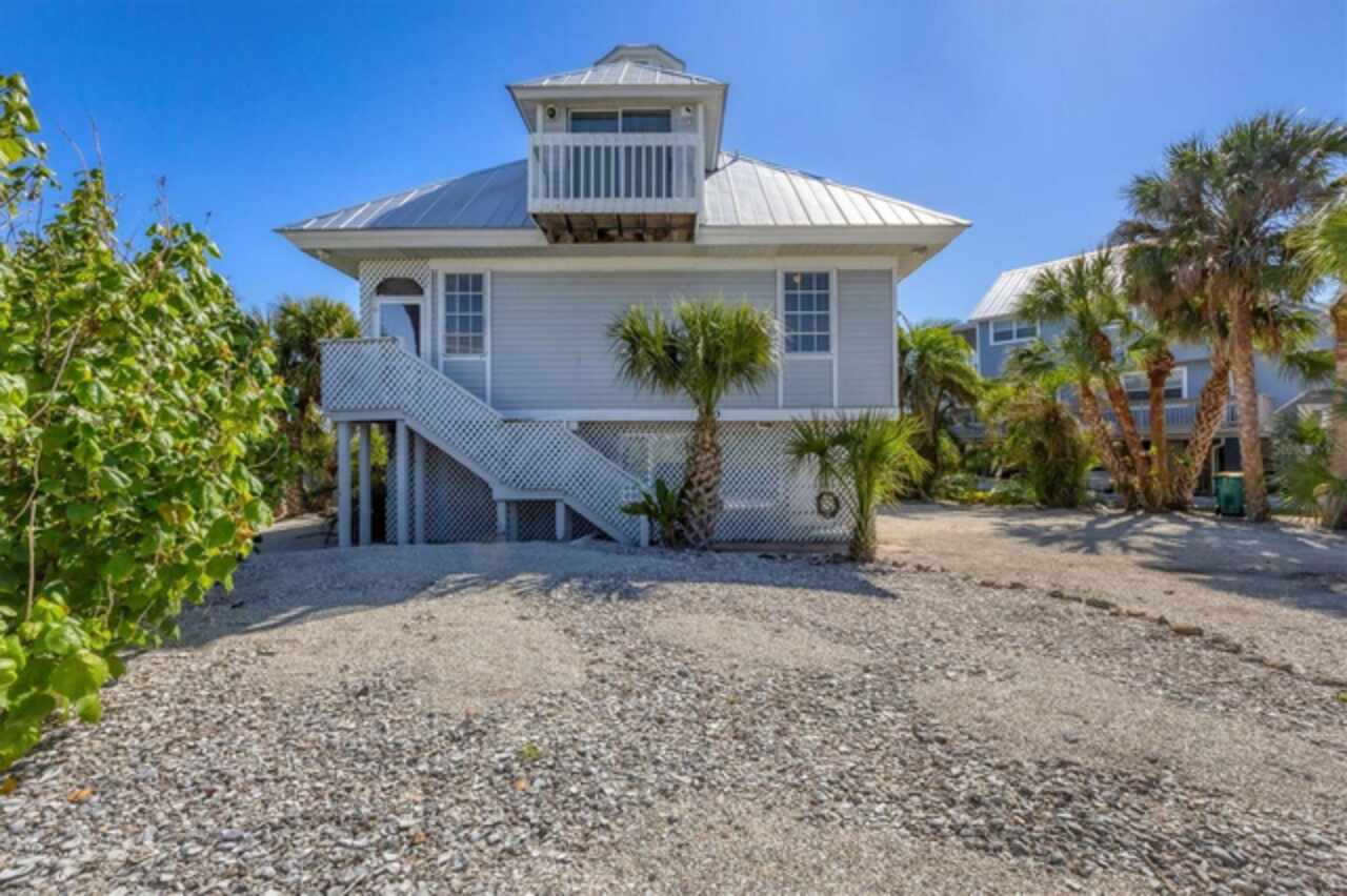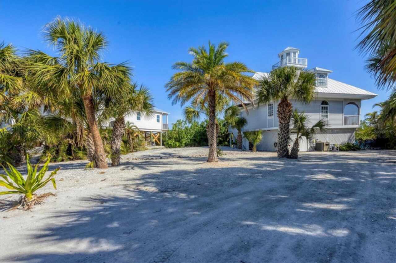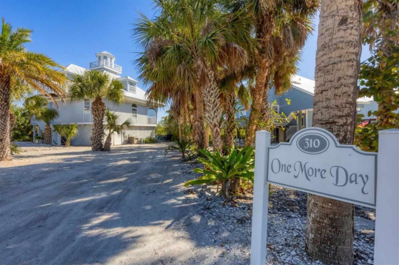 Reminiscent of old Florida lighthouse architectural appeal, this 2 bedroom/2 bath Palm Island/Don Pedro Island home is situated with 80 feet of water frontage and direct and almost immediate access to the Intracoastal Waterway and the Gulf of Mexico with no bridges. The interior also offers a bonus room/den for guests or office. The living room has sliders accessing an outdoor open lanai. The main floor bedroom also has sliders to a screened, covered lanai. The primary bedroom on the second floor also has sliders onto an open deck for spectacular water views. For outside entertainment, if offers a dock with water and electric and a 10, 000 lb. Boat lift as well as a large salt water heated swimming pool. There is also an entertaining area under the home with plenty of room for lounging and outdoor kitchen. There is deeded beach access to seven miles of sugar sand pristine beaches just a quick golf cart ride away. The house has been given the name, "One More Day" which says when you come to this home, you're never ready to leave and that says it all.