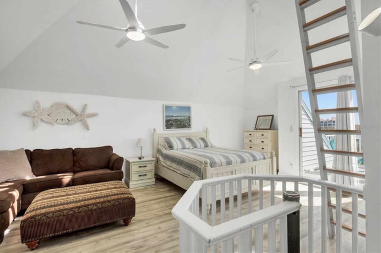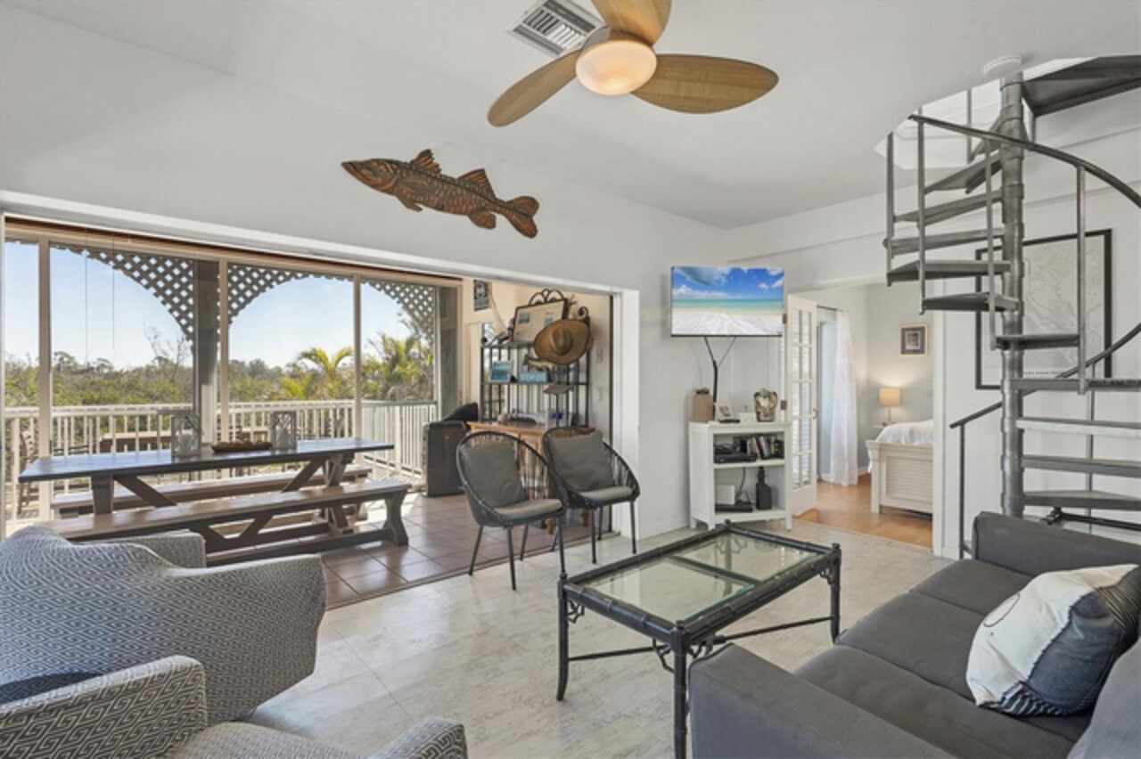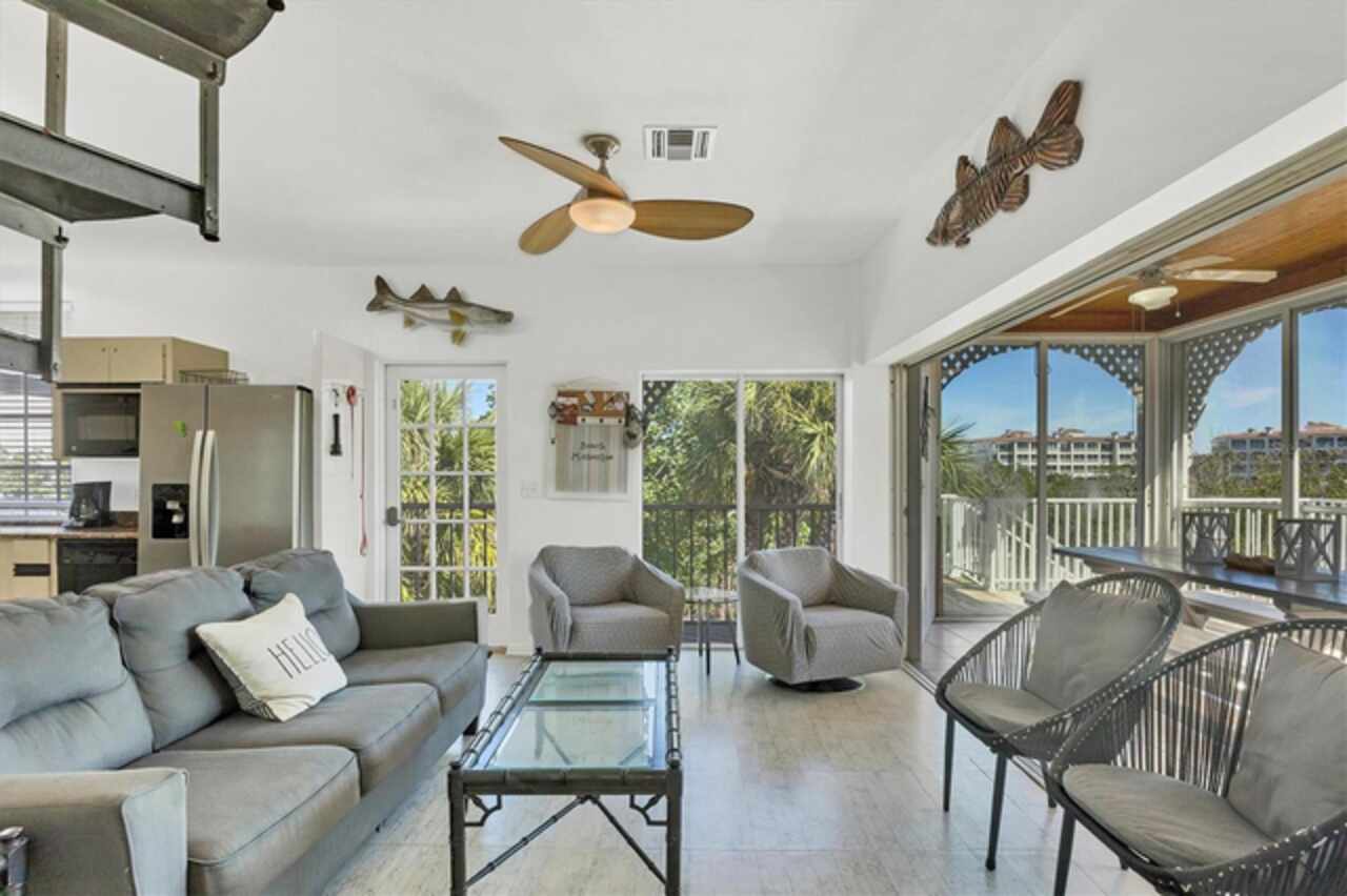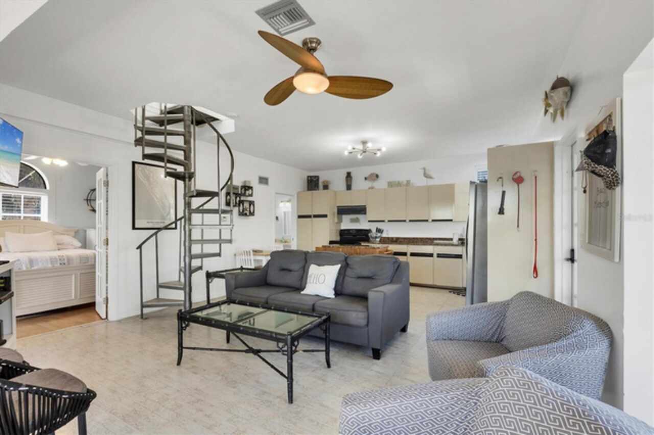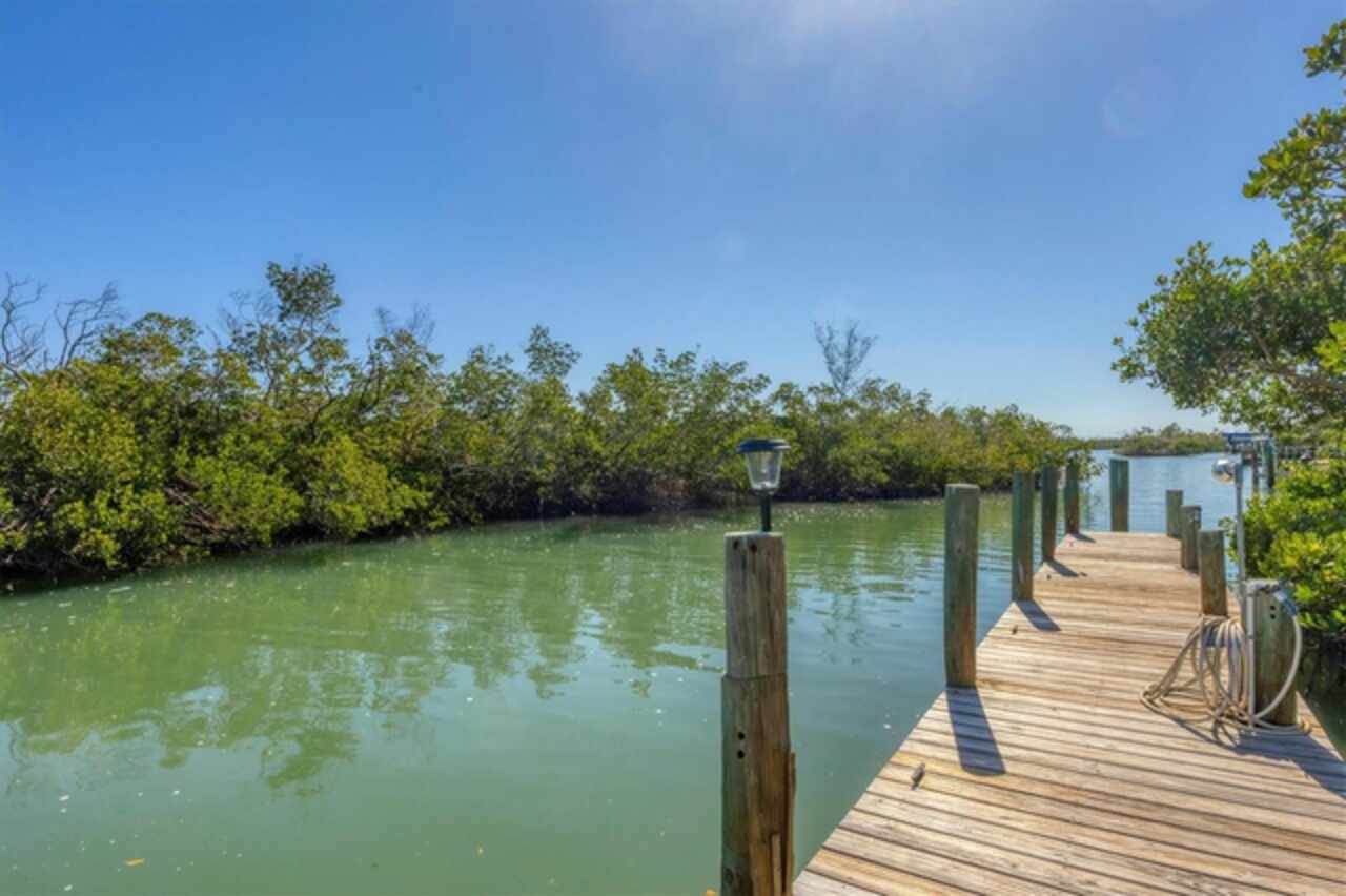 Reminiscent of old Florida lighthouse architectural appeal, this 2 bedroom/2 bath Palm Island/Don Pedro Island home is situated with 80 feet of water frontage and direct and almost immediate access to the Intracoastal Waterway and the Gulf of Mexico with no bridges. The interior also offers a bonus room/den for guests or office. The living room has sliders accessing an outdoor open lanai. The main floor bedroom also has sliders to a screened, covered lanai. The primary bedroom on the second floor also has sliders onto an open deck for spectacular water views. For outside entertainment, if offers a dock with water and electric and a 10, 000 lb. Boat lift as well as a large salt water heated swimming pool. There is also an entertaining area under the home with plenty of room for lounging and outdoor kitchen. There is deeded beach access to seven miles of sugar sand pristine beaches just a quick golf cart ride away. The house has been given the name, "One More Day" which says when you come to this home, you're never ready to leave and that says it all.