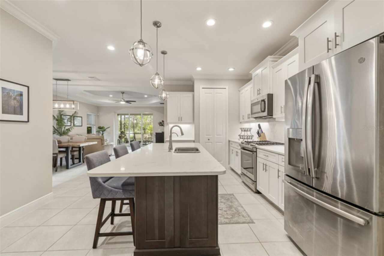 Price Improvement! Step into this beautifully upgraded, maintenance-free villa in Indigo’s resort-style community—designed for privacy, comfort, and effortless living. This 3-bed, 2-bath home with an office/flex space features a split floor plan and a serene primary suite positioned at the back of the home with peaceful conservation and water views. No rear neighbors. The chef’s kitchen impresses with quartz countertops, soft-close cabinetry with sliding shelves, reverse osmosis system, tile backsplash, and an oversized island perfect for gathering. Enjoy the gas range and griddle, all seamlessly connected to the dining and living areas highlighted by a tray ceiling with crown molding. Large sliders open to an extended lanai ideal for relaxing or entertaining. The primary suite offers dual walk-in closets, double vanities, and a tiled walk-in shower. Throughout the home, you’ll find engineered hardwood and tile flooring, designer lighting, upgraded hardware, 8-foot doors, and a well-appointed laundry room with base cabinets, Corian counters, and a utility sink. Additional features include impact windows and doors, roll-down lanai shutters, clear hurricane shutters that let in natural light, and a garage equipped with a 50-amp plug for a generator. Indigo residents enjoy top-tier amenities: a heated community pool and spa, the Oasis pool, five cabanas, pickleball and bocce courts, a 24-hour fitness center, meeting/banquet room, playground, and sidewalks throughout the neighborhood. Exterior maintenance—including mowing, fertilizing, irrigation, shrubs, and mulch—is fully handled. Located in the A-rated Gullett Elementary and Mona Jain Middle School zones and minutes from Waterside Place, UTC, dining, shopping, and award-winning beaches. Experience the Indigo lifestyle—where luxury, convenience, and community meet.