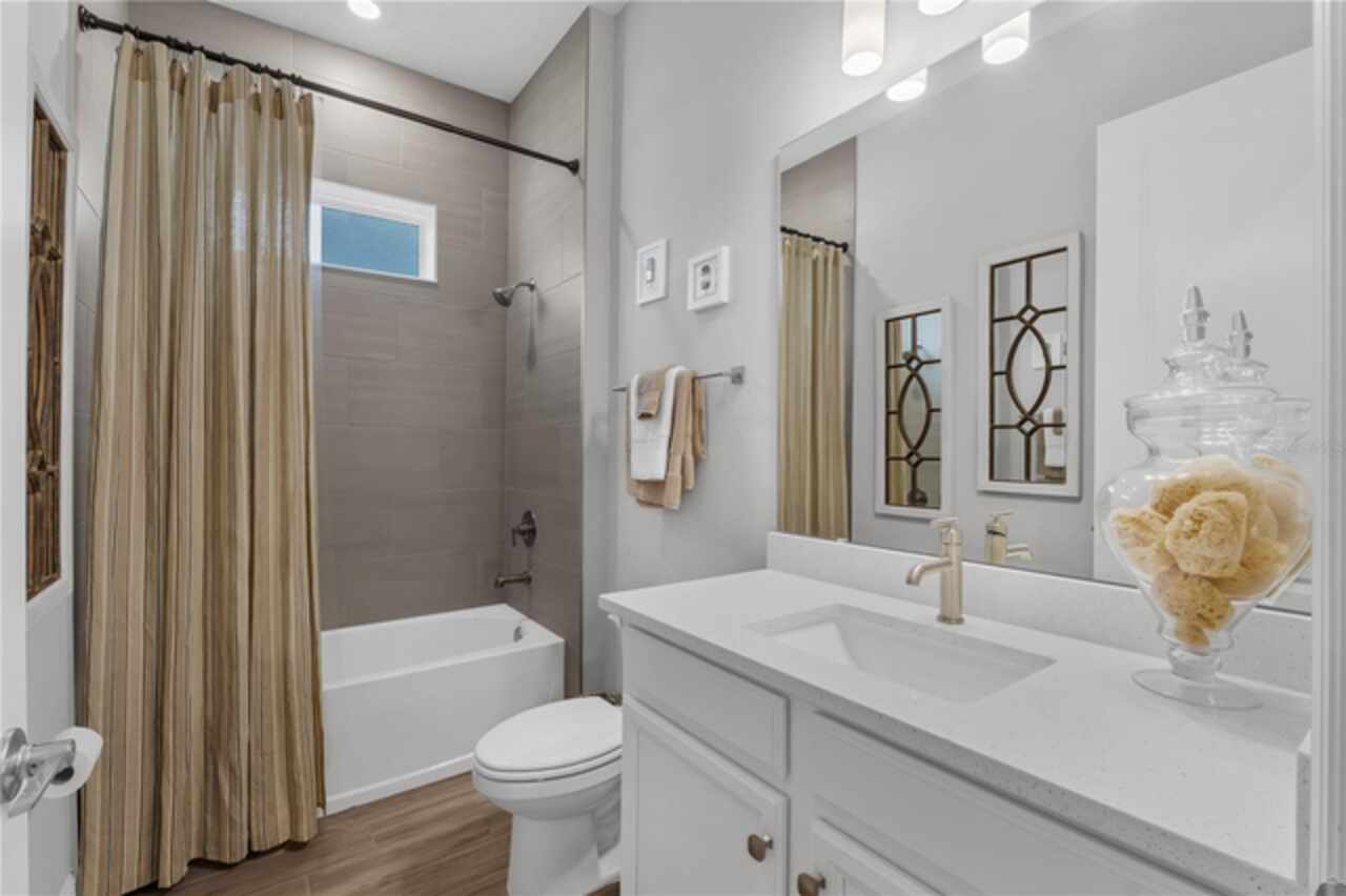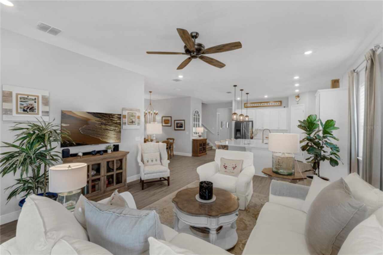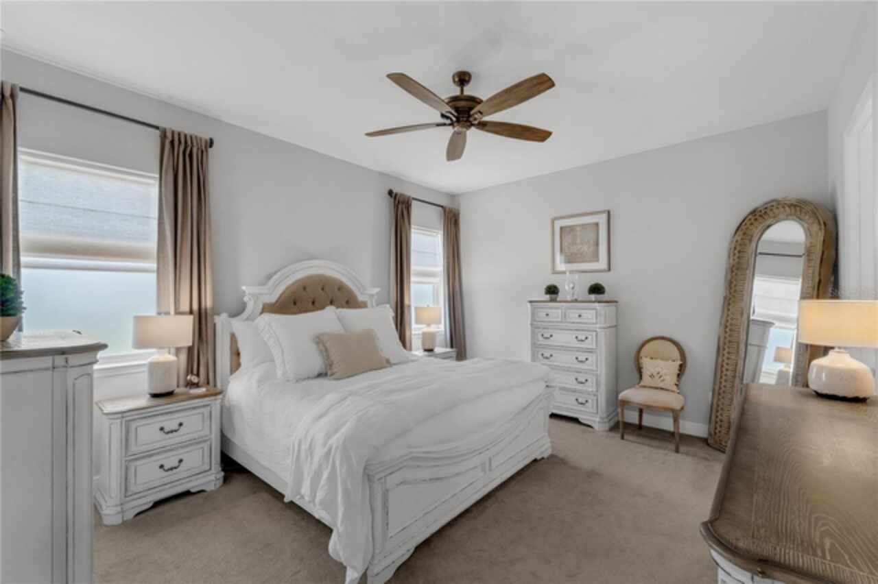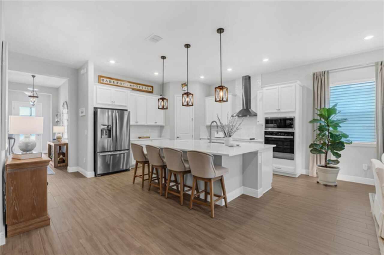 *** PRICED WELL BELOW MARKET VALUE! sellers offering unbelievable price that outshines any builder incentives. This home STANDS OUT with thoughtful upgrades, custom touches, and a level of finish and design far beyond what you’ll find in today’s standard builder inventory.*** Welcome to 3112 Ranger Drive, a beautifully enhanced home offering just under 3, 000 square feet, featuring, FIVE bedrooms, THREE and a HALF baths, a two-car garage, and paid-off solar panels, all situated on a peaceful, green-space-adjacent lot in the sought-after community of Weslyn Park at Sunbridge. As you step inside, you're greeted by a spacious foyer and a calming neutral color palette that provides the perfect canvas for any design style. Just off the entry to the left, two well-appointed secondary bedrooms share a full bathroom, ideally positioned for guests or family. Continue down the wide hallway and the home opens into a bright, beautifully designed living space. The main living areas feature wood-look tile flooring, offering warmth and elegance with the durability of tile, perfect for Florida living. At the heart of the home, the open-concept kitchen, dining, and great room seamlessly connect for effortless everyday living and entertaining. The gourmet kitchen includes an oversized quartz island with bar seating, soft-close cabinetry, stainless steel appliances, custom backsplash, and a pantry with built-in shelving for smart storage. The dining and living areas flow effortlessly to the screened-in lanai, extending your living space outdoors and overlooking the lush, fenced-in backyard with upgraded sod and landscaping. The primary suite, tucked privately at the rear of the home, offers a luxurious retreat with a freestanding soaking tub, an oversized walk-in shower, dual vanities, and a walk-in custom closet. Just off a small hallway near the staircase, a versatile flex room provides the ideal spot for a home office, study, or creative space. Upstairs, a spacious bonus room provides additional living flexibility, while a generous fourth bedroom with its own en suite bath makes for a perfect guest suite or secondary primary retreat. The sellers have added thoughtful custom upgrades throughout the home, including electric window treatments, designer Pottery Barn shades, and custom closet systems in every room. The laundry room has been fully built out with upper and lower cabinetry, solid surface countertops, and a farmhouse sink, creating a stylish and functional space. Other highlights include paid-off solar panels, a modern glass front door that brings in natural light, gutters, and black metal fencing to enclose the beautifully landscaped backyard. Located in Sunbridge, a nature-rich, master-planned community spanning over 28, 000 acres, residents enjoy scenic trails, a neighborhood K–8 school, regular community events, and the soon-to-open marina village with waterfront dining, shopping, and a resort-style pool complex. This home is a rare combination of elegance, thoughtful upgrades, and community living, schedule your private showing today and see everything this stunning home has to offer.