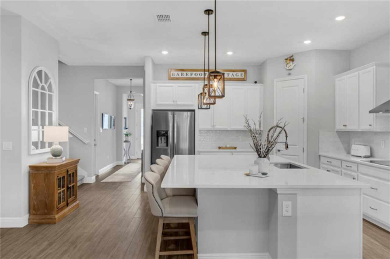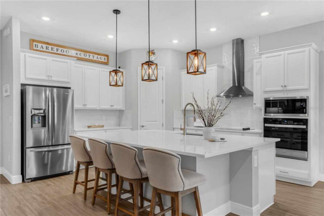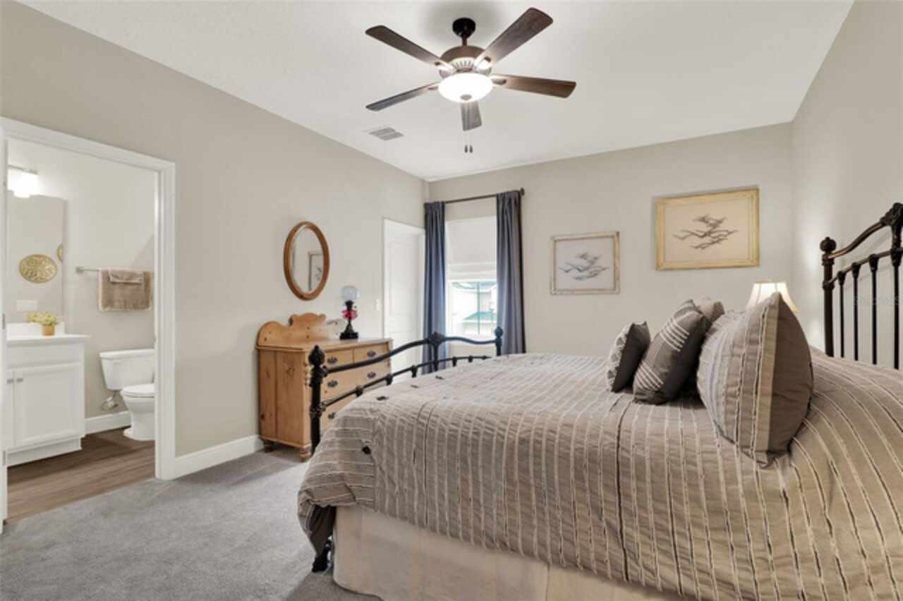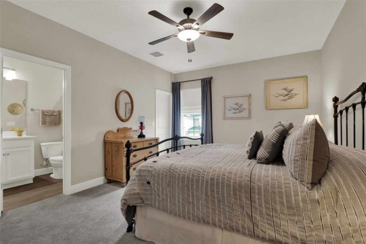 *** PRICED WELL BELOW MARKET VALUE! sellers offering unbelievable price that outshines any builder incentives. This home STANDS OUT with thoughtful upgrades, custom touches, and a level of finish and design far beyond what you’ll find in today’s standard builder inventory.*** Welcome to 3112 Ranger Drive, a beautifully enhanced home offering just under 3, 000 square feet, featuring, FIVE bedrooms, THREE and a HALF baths, a two-car garage, and paid-off solar panels, all situated on a peaceful, green-space-adjacent lot in the sought-after community of Weslyn Park at Sunbridge. As you step inside, you're greeted by a spacious foyer and a calming neutral color palette that provides the perfect canvas for any design style. Just off the entry to the left, two well-appointed secondary bedrooms share a full bathroom, ideally positioned for guests or family. Continue down the wide hallway and the home opens into a bright, beautifully designed living space. The main living areas feature wood-look tile flooring, offering warmth and elegance with the durability of tile, perfect for Florida living. At the heart of the home, the open-concept kitchen, dining, and great room seamlessly connect for effortless everyday living and entertaining. The gourmet kitchen includes an oversized quartz island with bar seating, soft-close cabinetry, stainless steel appliances, custom backsplash, and a pantry with built-in shelving for smart storage. The dining and living areas flow effortlessly to the screened-in lanai, extending your living space outdoors and overlooking the lush, fenced-in backyard with upgraded sod and landscaping. The primary suite, tucked privately at the rear of the home, offers a luxurious retreat with a freestanding soaking tub, an oversized walk-in shower, dual vanities, and a walk-in custom closet. Just off a small hallway near the staircase, a versatile flex room provides the ideal spot for a home office, study, or creative space. Upstairs, a spacious bonus room provides additional living flexibility, while a generous fourth bedroom with its own en suite bath makes for a perfect guest suite or secondary primary retreat. The sellers have added thoughtful custom upgrades throughout the home, including electric window treatments, designer Pottery Barn shades, and custom closet systems in every room. The laundry room has been fully built out with upper and lower cabinetry, solid surface countertops, and a farmhouse sink, creating a stylish and functional space. Other highlights include paid-off solar panels, a modern glass front door that brings in natural light, gutters, and black metal fencing to enclose the beautifully landscaped backyard. Located in Sunbridge, a nature-rich, master-planned community spanning over 28, 000 acres, residents enjoy scenic trails, a neighborhood K–8 school, regular community events, and the soon-to-open marina village with waterfront dining, shopping, and a resort-style pool complex. This home is a rare combination of elegance, thoughtful upgrades, and community living, schedule your private showing today and see everything this stunning home has to offer.