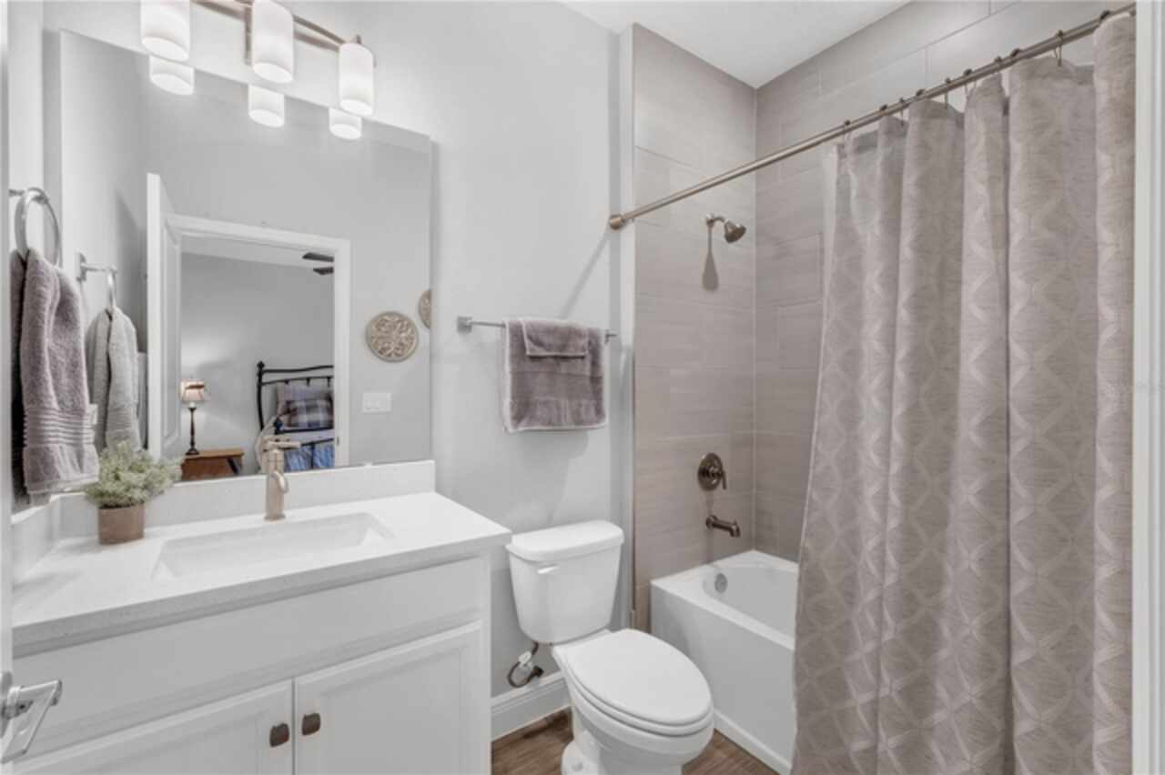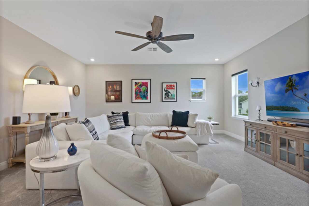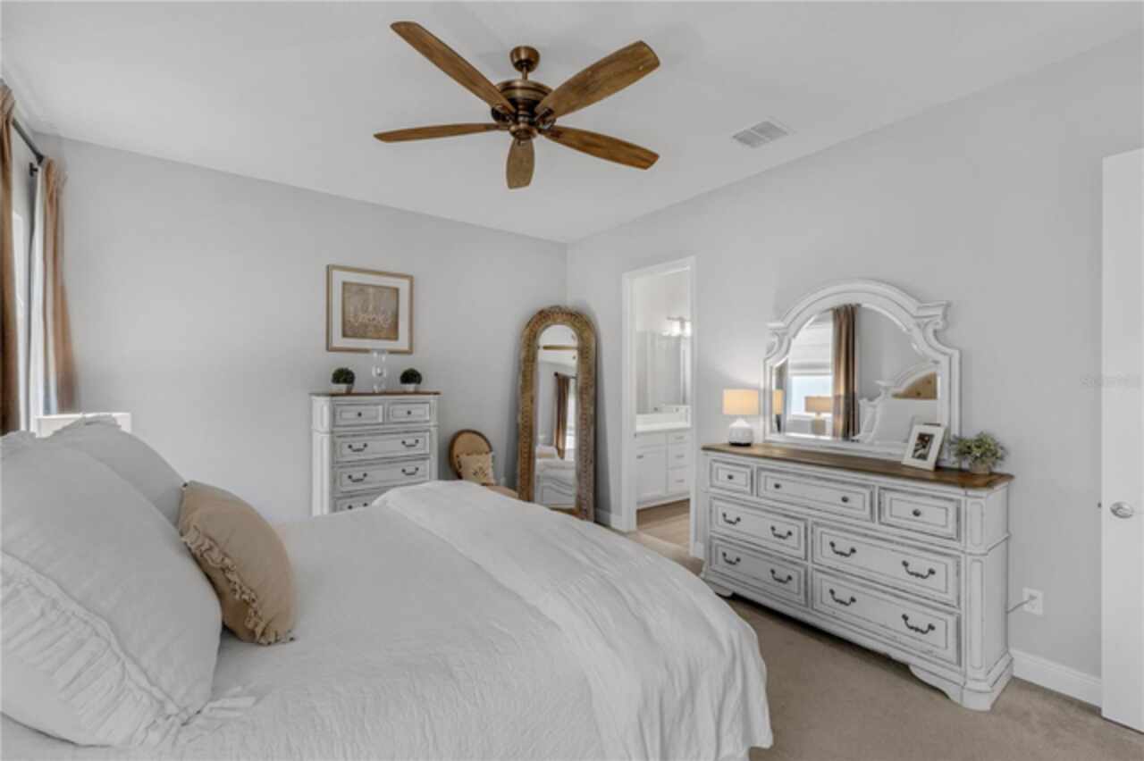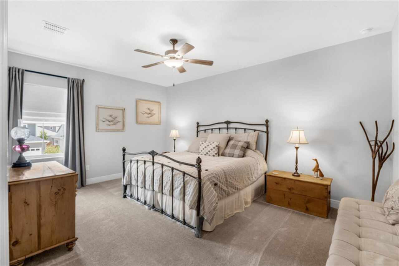 *** PRICED WELL BELOW MARKET VALUE! sellers offering unbelievable price that outshines any builder incentives. This home STANDS OUT with thoughtful upgrades, custom touches, and a level of finish and design far beyond what you’ll find in today’s standard builder inventory.*** Welcome to 3112 Ranger Drive, a beautifully enhanced home offering just under 3, 000 square feet, featuring, FIVE bedrooms, THREE and a HALF baths, a two-car garage, and paid-off solar panels, all situated on a peaceful, green-space-adjacent lot in the sought-after community of Weslyn Park at Sunbridge. As you step inside, you're greeted by a spacious foyer and a calming neutral color palette that provides the perfect canvas for any design style. Just off the entry to the left, two well-appointed secondary bedrooms share a full bathroom, ideally positioned for guests or family. Continue down the wide hallway and the home opens into a bright, beautifully designed living space. The main living areas feature wood-look tile flooring, offering warmth and elegance with the durability of tile, perfect for Florida living. At the heart of the home, the open-concept kitchen, dining, and great room seamlessly connect for effortless everyday living and entertaining. The gourmet kitchen includes an oversized quartz island with bar seating, soft-close cabinetry, stainless steel appliances, custom backsplash, and a pantry with built-in shelving for smart storage. The dining and living areas flow effortlessly to the screened-in lanai, extending your living space outdoors and overlooking the lush, fenced-in backyard with upgraded sod and landscaping. The primary suite, tucked privately at the rear of the home, offers a luxurious retreat with a freestanding soaking tub, an oversized walk-in shower, dual vanities, and a walk-in custom closet. Just off a small hallway near the staircase, a versatile flex room provides the ideal spot for a home office, study, or creative space. Upstairs, a spacious bonus room provides additional living flexibility, while a generous fourth bedroom with its own en suite bath makes for a perfect guest suite or secondary primary retreat. The sellers have added thoughtful custom upgrades throughout the home, including electric window treatments, designer Pottery Barn shades, and custom closet systems in every room. The laundry room has been fully built out with upper and lower cabinetry, solid surface countertops, and a farmhouse sink, creating a stylish and functional space. Other highlights include paid-off solar panels, a modern glass front door that brings in natural light, gutters, and black metal fencing to enclose the beautifully landscaped backyard. Located in Sunbridge, a nature-rich, master-planned community spanning over 28, 000 acres, residents enjoy scenic trails, a neighborhood K–8 school, regular community events, and the soon-to-open marina village with waterfront dining, shopping, and a resort-style pool complex. This home is a rare combination of elegance, thoughtful upgrades, and community living, schedule your private showing today and see everything this stunning home has to offer.