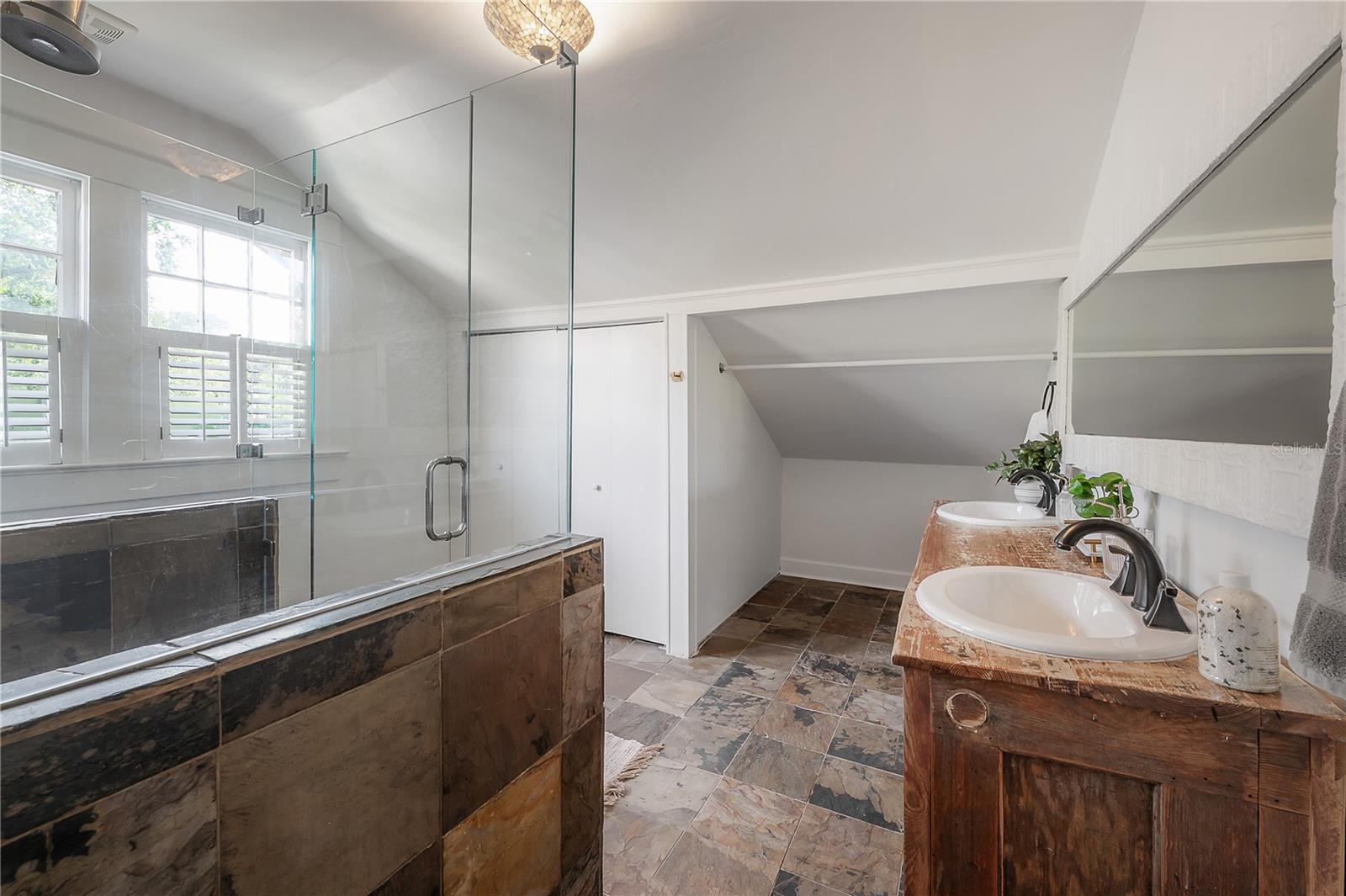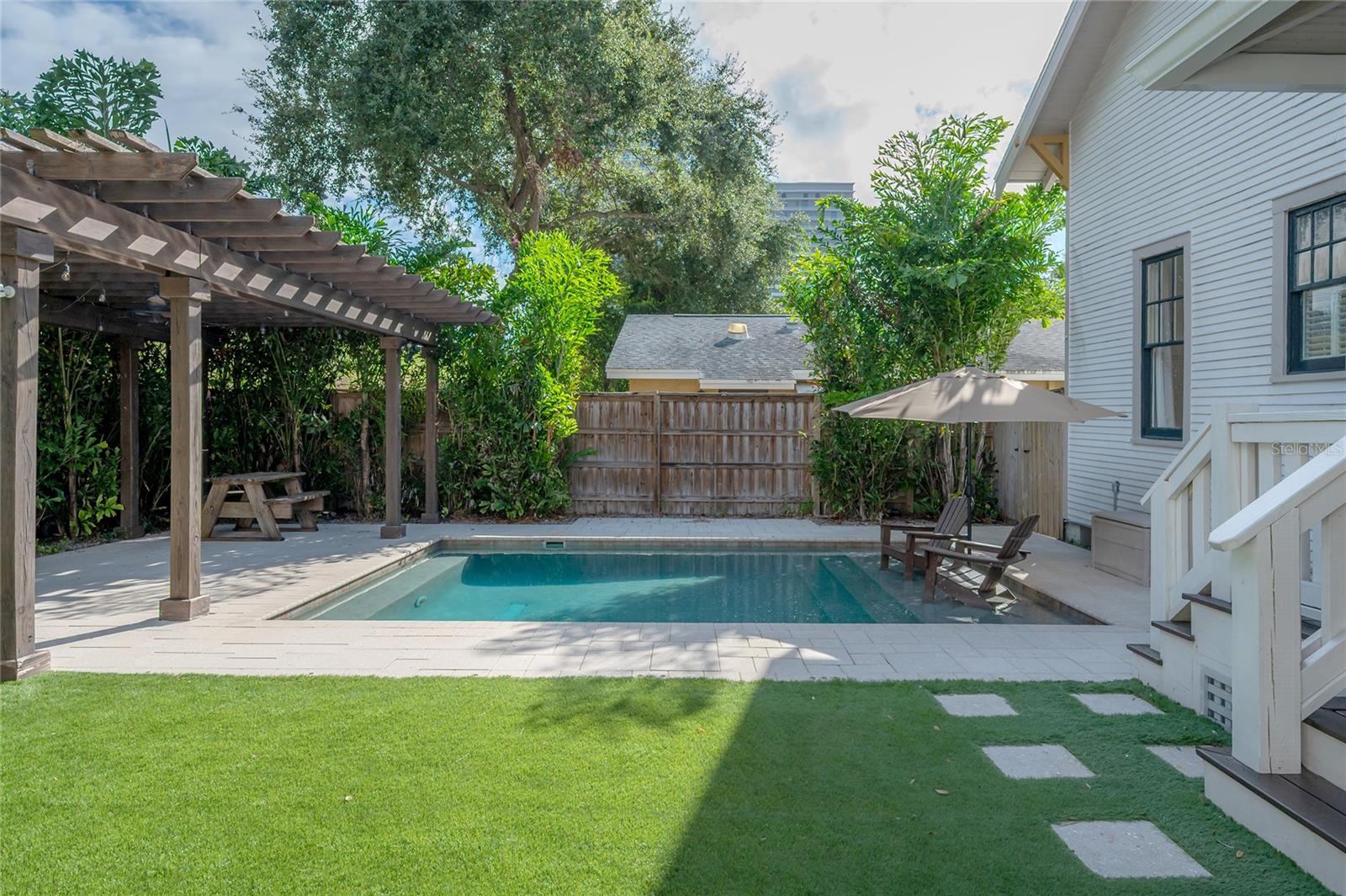 Under contract-accepting backup offers. Step into South Tampa history with this stunning 1927 Craftsman Bungalow, a showpiece of charm and character located in the highly coveted Roosevelt, Coleman, and Plant School Districts. Nestled in the heart of Palma Ceia, this home offers walkability to Bayshore Boulevard, Buddy Brew Coffee, Chill Bros, and countless other South Tampa favorites — the perfect blend of historic charm and modern city living. From the moment you arrive, you’re greeted by lush, manicured landscaping and the home’s iconic covered front porch, an inviting space for morning coffee or evening conversation. Inside, every detail tells a story. Refinished hardwood floors, a solid wood staircase, and vintage glass-paneled doors showcase timeless craftsmanship. High ceilings and classic millwork preserve the home’s history, while modern updates add a touch of luxury. The formal dining room flows seamlessly into the designer kitchen, featuring quartz countertops, a butcher block island, gas range, slate gray tile flooring, and stylish open shelving — a perfect balance of elegance and functionality. The main floor includes two full bathrooms and a versatile guest suite, ideal for visitors, a home office, or multi-generational living. Upstairs, a charming loft with built-in workstations provides an inspiring nook for work, study, or creative projects. The primary suite offers a sense of calm, complete with dual closets, built-in drawers, and a spa-inspired bath boasting an antique double vanity, rainfall shower, and slate flooring. Step outside to your own private resort-style retreat — an entertainer’s dream with a PebbleTec pool, sun deck, and custom pergola perfect for relaxing, lounging, or dining al fresco. The expansive green space with a removable shade sail creates endless possibilities for outdoor living and weekend gatherings. A brick-lined driveway leads to the newly constructed carriage house-style two-car garage, complete with a half pool bath, workshop, and an upstairs 525 sq ft finished bonus/media room featuring engineered hardwood floors, theater wiring, and a dedicated HVAC system — perfect for a private studio, guest suite, or creative workspace. Blending historic architecture with modern luxury, this residence has been meticulously updated with a tankless gas water heater, updated PVC plumbing and electrical panel, newer HVAC systems, foundation support, and a brand new roof (2025). This one-of-a-kind Palma Ceia masterpiece embodies the perfect mix of history, style, and comfort — a rare opportunity to own a piece of South Tampa’s legacy with every modern convenience at your fingertips.