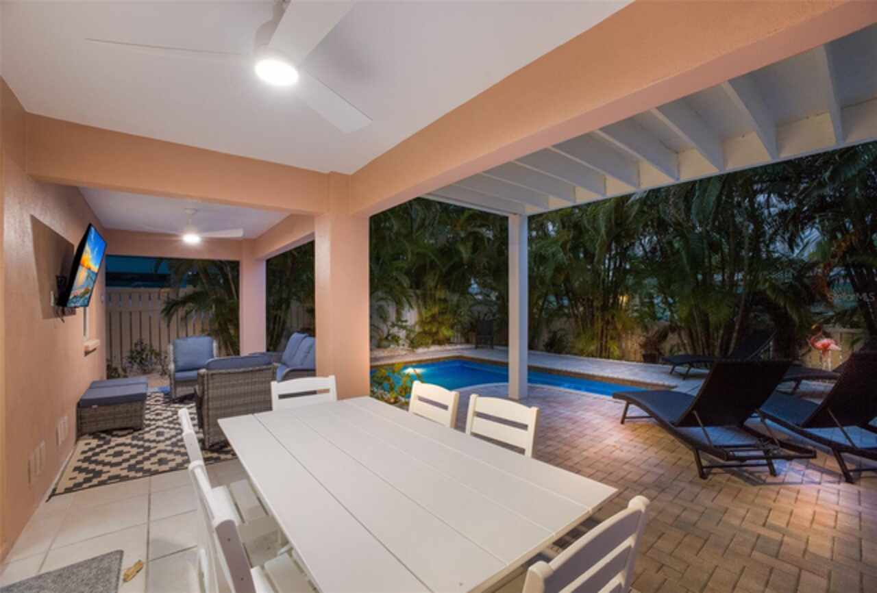 Welcome to Orange Crush! This recently updated three-bedroom and two-bath home has been thoughtfully decorated and has a game room you'll love! It features arcade games and a foosball table and is complete with a TV and a fridge. The location is unbeatable – just two blocks from the beach and near fantastic island shops and restaurants. With its fresh and delightful vibe, Orange Crush is the ultimate Anna Maria Island getaway destination. The living area located upstairs is well-designed and features a chic dining room table, as well as a comfortable seating area with a brand-new plush sectional and a TV. The kitchen is fully equipped and has stainless steel appliances. Open the French doors and step out onto the charming balcony, where you can relax and soak up the invigorating breeze. After a fun-filled day, retreat to the primary bedroom that feels like a tropical oasis with coastal furnishings. This room has a walk-in closet and an ensuite bathroom with a beautiful walk-in shower, double vanity, and a soaking tub. The tropical theme follows in the second and third bedrooms and easy access to the hall bathroom. Head down the staircase to the serene backyard! Take a dip in the sparkling blue pool or bask in the warm Florida sunshine on one of the many loungers that surround the pool. A complete outdoor living space awaits you under the covered patio, featuring an outdoor dining table and a cozy wicker seating area, complete with an outdoor TV. For your convenience, we’ve included both an outdoor shower and a BBQ grill. The oversized garage has an epoxy floor with ample storage. Great vacation rental, zoned for weekly rentals and an ideal investment opportunity. Schedule your showing today!