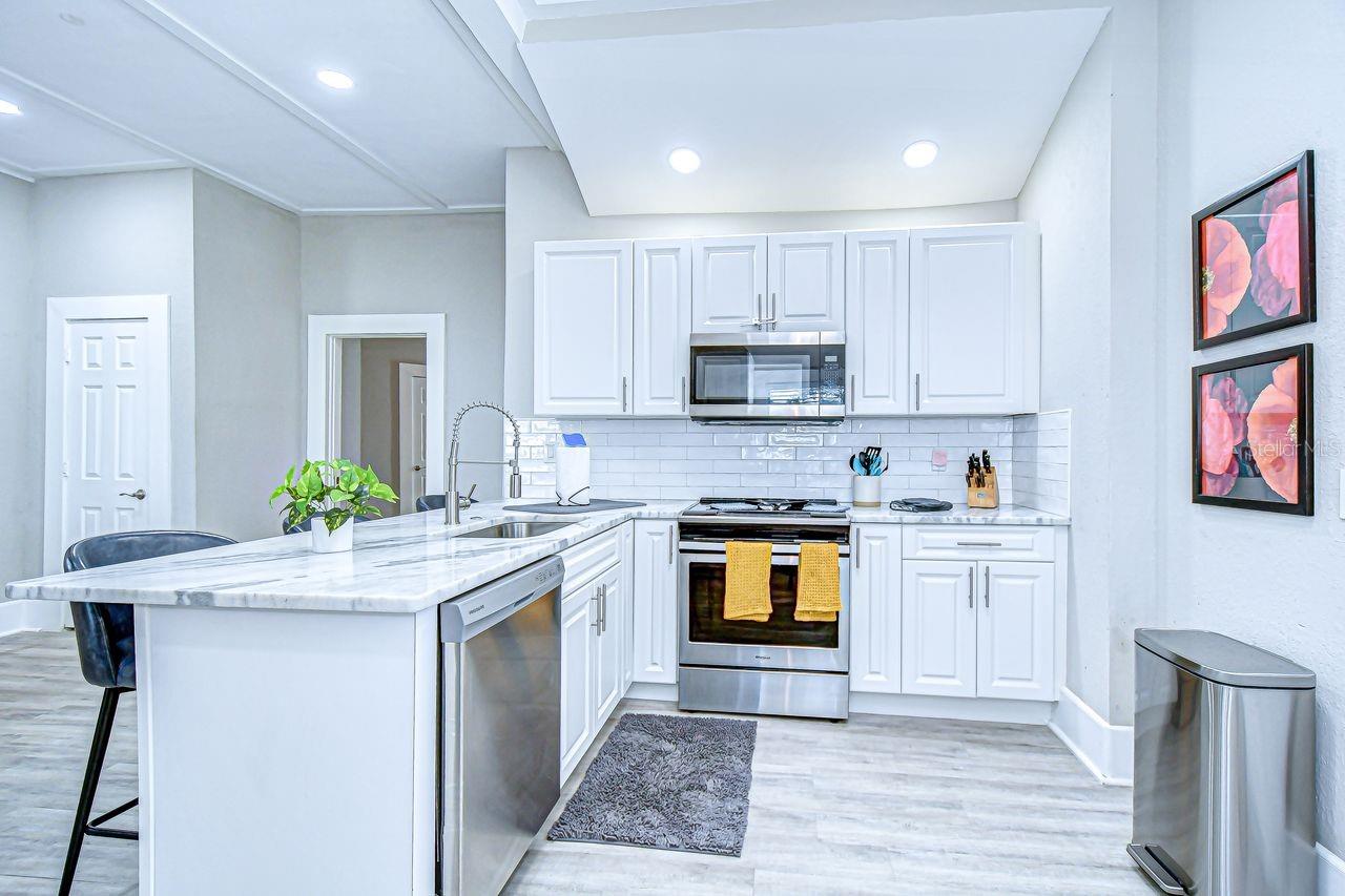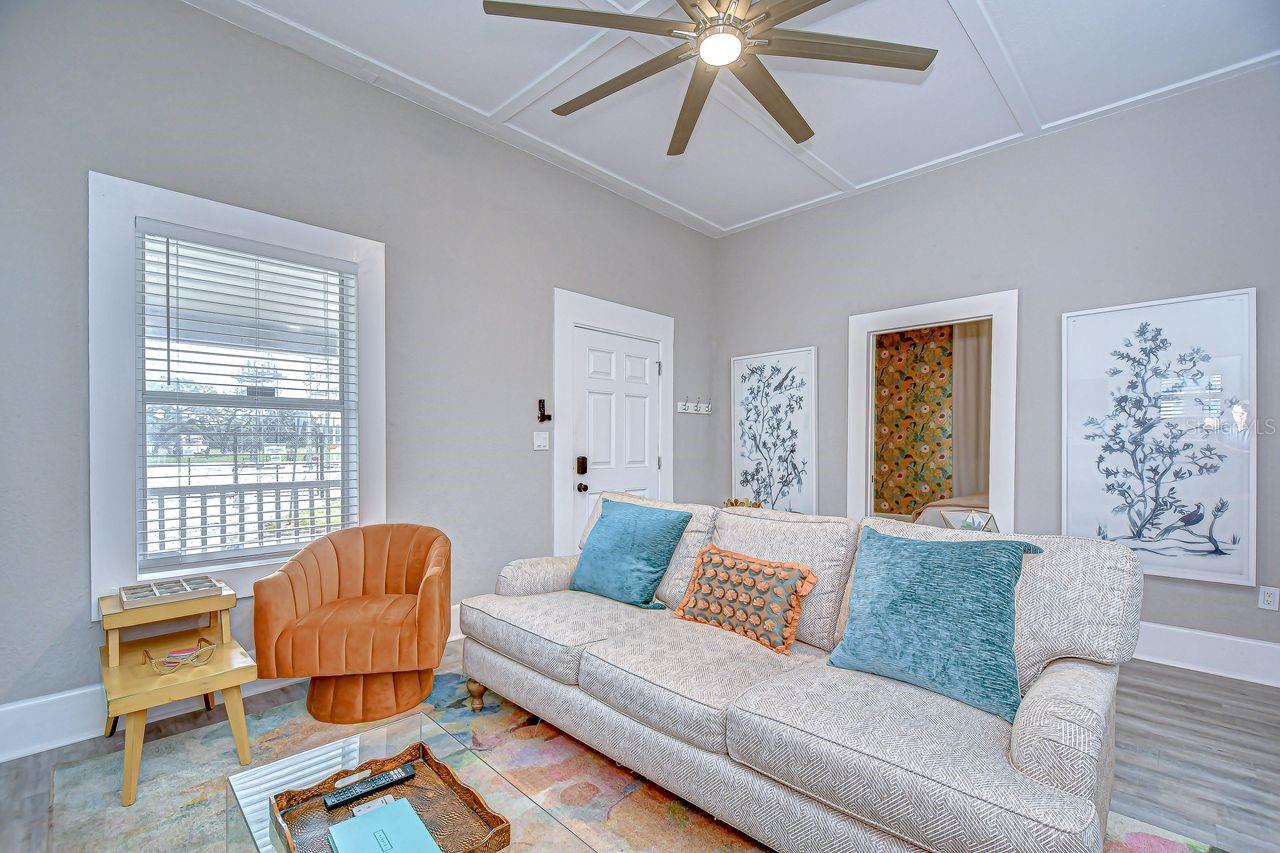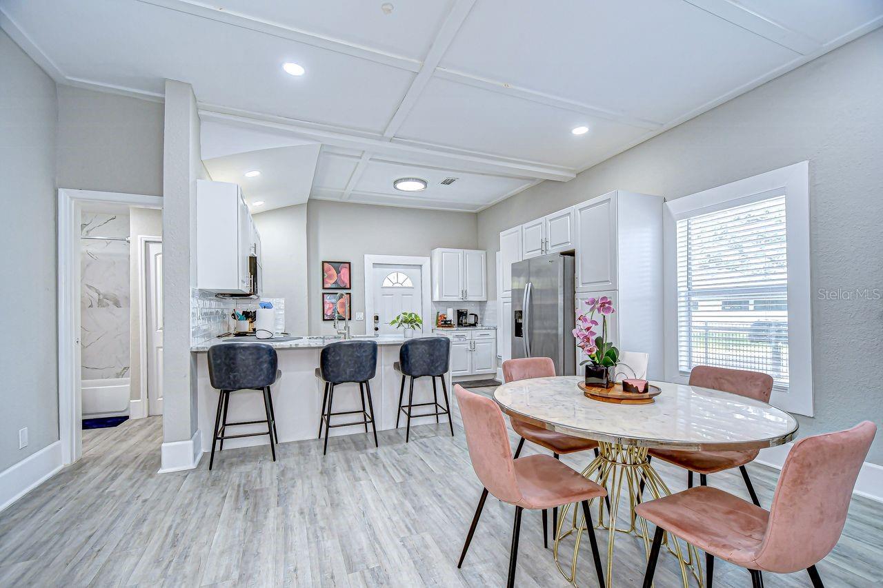 Welcome to this beautifully updated 2-bedroom, 2-bathroom bungalow located on a charming, historic brick-lined street just steps from Tampa’s vibrant Armature Works and Riverwalk district. This 1, 041 sq. ft. home has been tastefully renovated with modern updates while maintaining its classic character. Inside, you’ll find a light-filled, open floor plan that flows seamlessly from the living area into the dining and kitchen spaces. Thoughtful updates throughout the home provide comfort and style, making it truly move-in ready. With a full-price offer, all furnishings will be included—making it an ideal option for buyers looking for a primary residence, a fully equipped second home, or a ready-to-go addition to a rental portfolio. Enjoy the best of Tampa living in a quiet neighborhood setting, just minutes from downtown, dining, shopping, and entertainment.