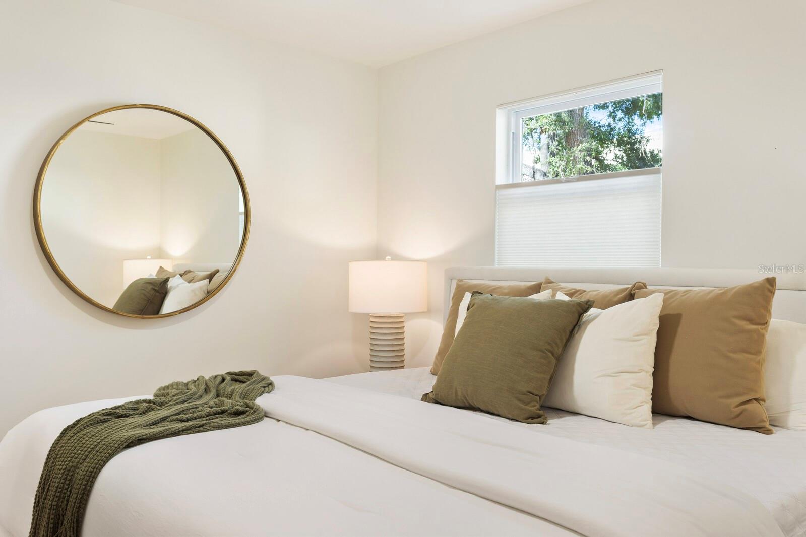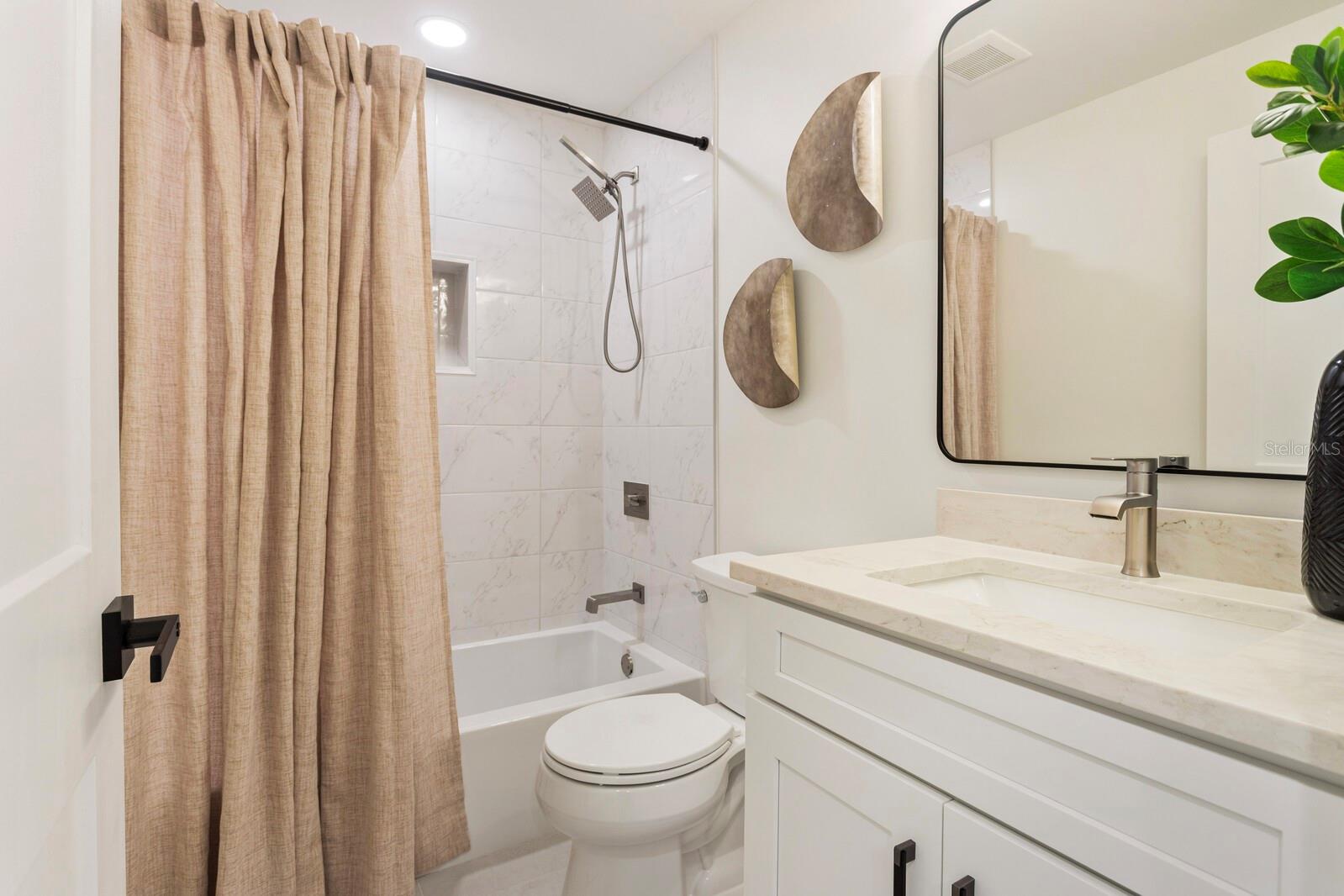 Extensive NEW CONSTRUCTION including new electrical, plumbing, duct work and vents, walls moved and rebuilt, Level 5 drywall finish, all new shaker style doors and baseboards, tankless hot water installed, laundry tub, just to name a few. Exterior has a brand new 50-year steel roof, new impact french doors and impact front door. Impact windows, cedar accents, aluminum covered eaves and soffits, all for worry free maintenance for years to come. This re-imagined and totally updated home will not disappoint. The kitchen has white shaker cabinets with crown molding and light rails as well as under counter lighting. Countertops are quartz with waterfall over the peninsula. Your counters will be clutter free because the range has a built in air fryer and there’s a microwave drawer in the peninsula. The master bath has been beautifully updated with herringbone tile floors, walk-in shower and white shaker cabinets with lots of storage and quartz countertops. The walk-in closet is 10’ wide with closet organizer.The second bath also has white shaker cabinets with quartz countertops. The main living areas have new Coretec waterproof luxury vinyl. The retaining wall from the 1920s has been reinforced with rebar and concrete, and broken portions replaced. The spacious back yard is completely fenced and has double gates which open to a former alleyway so you can bring you boat, build an office with private access, or build a pool. An irrigation system has been added. This home embraces the Tampa of the 20s with the wall and it's location next to the brick paved dead end street, the nostalgia of the 70s and the modern comforts and conveniences of a new build. Not only is it just a short walking distance to McFarlane Park, but it's just minutes away from I275, International Mall and Tampa International Airport as well as Tampa's amazing Riverwalk, Cultural Centers, Raymond James Stadium and Benchmark International Area. Compare with newbuilds in the area and be prepared to be wowed.