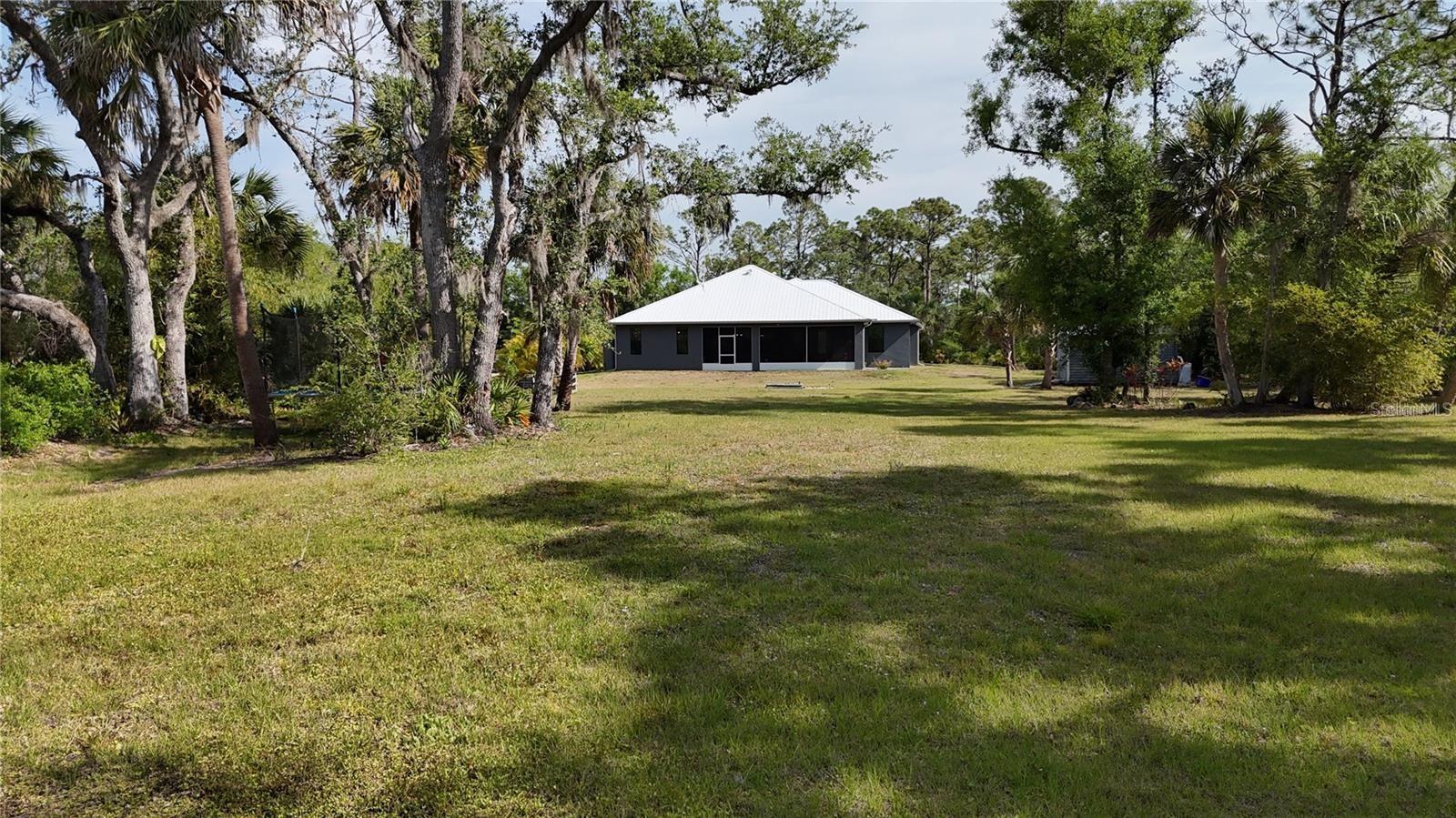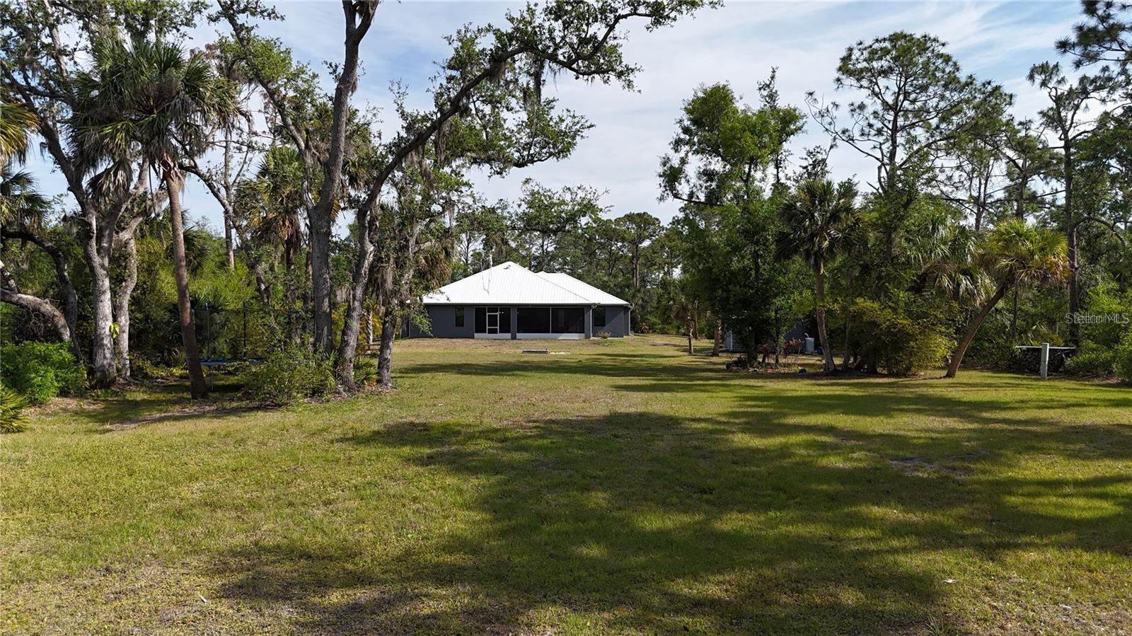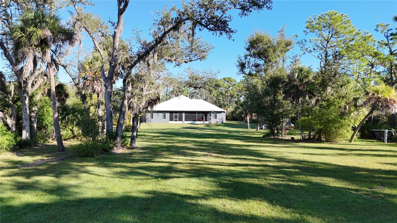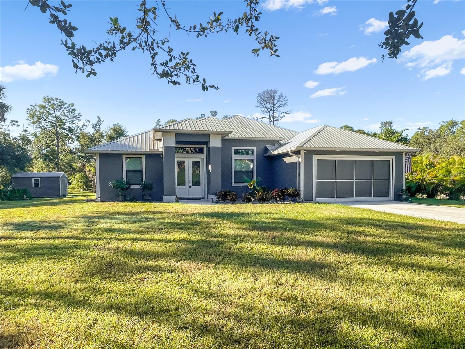 *3D VIRTUAL TOUR* Welcome home to your picture-perfect CUSTOM-BUILT home on 1.7 ACRES in the desirable area of Port Charlotte off Collingswood Blvd NOT IN A FLOOD ZONE! This beautifully crafted home combines elegance & comfort, while featuring 3 bedrooms + DEN, 2 baths & a 2 car garage. As you approach the property, you'll be captivated by its charming curb appeal, featuring lush landscaping, pebble rock, curbing, retractable garage screen door, T-shaped driveway, gutters & downspouts, flag holder, METAL ROOF (w/40yr transferable warranty) & to top it all off exterior soffit lights, for nighttime ambiance. Open the double front doors & be greeted with a grand entrance that's sure to please with gorgeous upgrades including 8' doorways, modern fixtures, high tray ceilings, warm, neutral colors & wood blinds throughout making this home one you don't want to miss! The welcoming Great Room draws your attention as you enter, complete with tall ceilings & natural sunlight beaming through the triple pocket sliding doors, wood plank ceramic tile flows freely throughout the main living areas making cleaning a breeze & pet friendly. The gourmet kitchen would make any chef happy! It boasts stainless steel appliances, quality cabinets with soft close feature, GRANITE countertops, ornate backsplash, closet pantry, WHOLE HOUSE R.O. System, farmhouse sink, plant shelves & a centered breakfast bar/island that is highlighted by 3 hanging pendant lights & has added storage & seating options when entertaining! The quaint dining room flows seamlessly together with the kitchen & makes the perfect gathering spot! Retreat to the primary bedroom, it is comfortable & large in size & houses private lanai access & an en-suite master bath, that offers dual sinks, make-up vanity, linen & walk-in clothing closet, private water closet & walk-in Roman shower. The guest bedrooms are across the home in this desirable split bedroom floor plan. Both bedrooms are supplied with a private closet, ceiling fan & window. A well-appointed guest bath with vanity, shower/tub combo & toilet is in between the bedrooms for added convenience. A den with built in desk would make for an excellent office, craft room or game room - the possibilities are endless! The inside laundry room has additional storage, utility sink & custom top for washer/dryer where you can fold your clothes or iron. The 2-car garage & large driveway provides ample storage & parking spaces for vehicles or hobbies. Pocket sliders from the Great Room open to your peaceful extended, screened in lanai showcasing panoramic backyard views, the epitome of Florida living. Entertain family & friends all while enjoying the firepit & gorgeous weather Florida has to offer or grab a good book & relax while taking in the sights & sounds of your serene 1.7 acres of land. No deed restrictions or HOA fees. The terrific location of this home allows QUICK access to shopping, golfing & restaurants. Close proximity to the beautiful Gulf Beaches. Also nearby, Charlotte Harbor & the Gulf of Mexico where fishing is plentiful! Love Baseball? Charlotte Sports Park, home of the Tampa Bay Rays baseball spring training & the BRAND NEW Wellen Park area where you can watch an Atlanta Braves spring training baseball game, shop, dine out or enjoy a Sunday at the Farmers Market are just a short drive! US-41 & Interstate 75 allow you quick access to the North or South. Include this home on your "Must See List" and start packing!