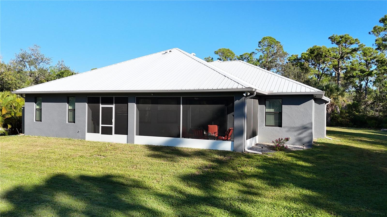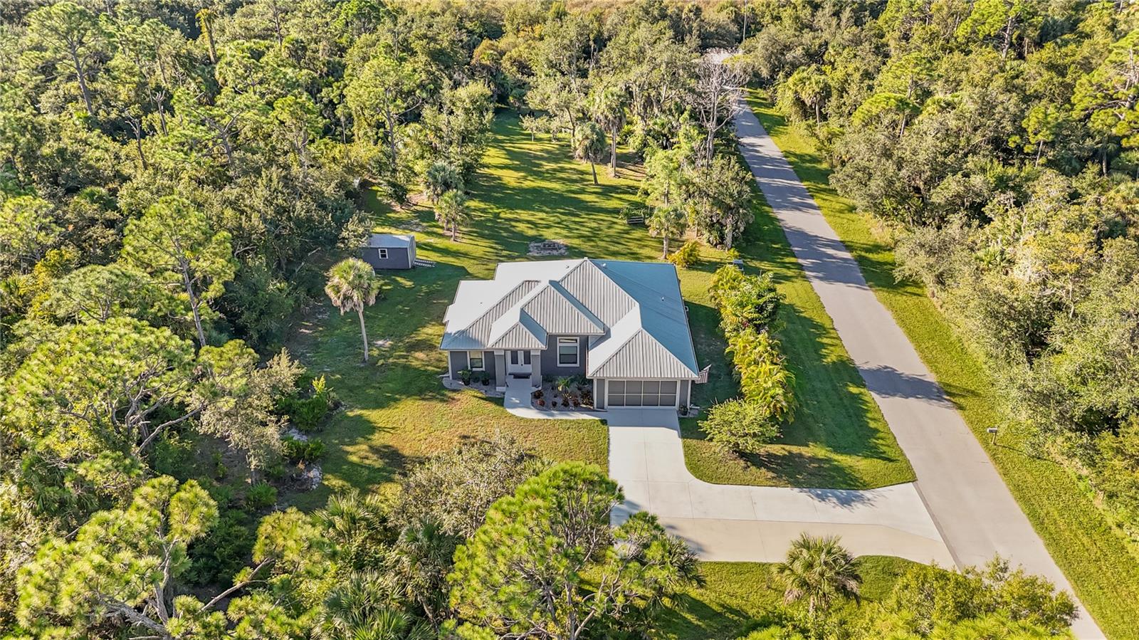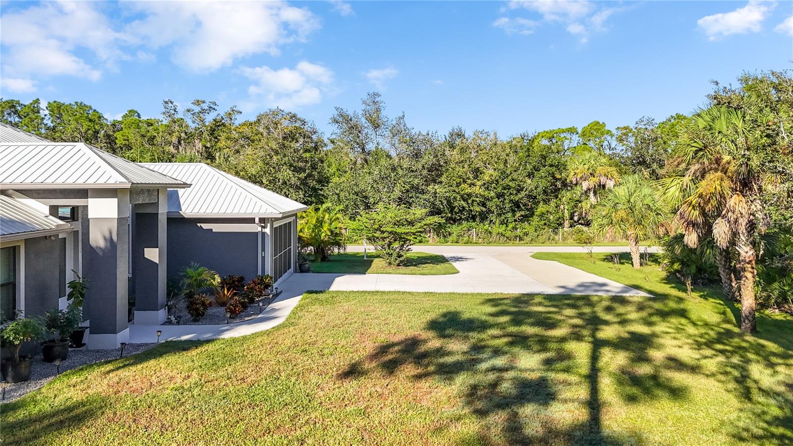 *3D VIRTUAL TOUR* Welcome home to your picture-perfect CUSTOM-BUILT home on 1.7 ACRES in the desirable area of Port Charlotte off Collingswood Blvd NOT IN A FLOOD ZONE! This beautifully crafted home combines elegance & comfort, while featuring 3 bedrooms + DEN, 2 baths & a 2 car garage. As you approach the property, you'll be captivated by its charming curb appeal, featuring lush landscaping, pebble rock, curbing, retractable garage screen door, T-shaped driveway, gutters & downspouts, flag holder, METAL ROOF (w/40yr transferable warranty) & to top it all off exterior soffit lights, for nighttime ambiance. Open the double front doors & be greeted with a grand entrance that's sure to please with gorgeous upgrades including 8' doorways, modern fixtures, high tray ceilings, warm, neutral colors & wood blinds throughout making this home one you don't want to miss! The welcoming Great Room draws your attention as you enter, complete with tall ceilings & natural sunlight beaming through the triple pocket sliding doors, wood plank ceramic tile flows freely throughout the main living areas making cleaning a breeze & pet friendly. The gourmet kitchen would make any chef happy! It boasts stainless steel appliances, quality cabinets with soft close feature, GRANITE countertops, ornate backsplash, closet pantry, WHOLE HOUSE R.O. System, farmhouse sink, plant shelves & a centered breakfast bar/island that is highlighted by 3 hanging pendant lights & has added storage & seating options when entertaining! The quaint dining room flows seamlessly together with the kitchen & makes the perfect gathering spot! Retreat to the primary bedroom, it is comfortable & large in size & houses private lanai access & an en-suite master bath, that offers dual sinks, make-up vanity, linen & walk-in clothing closet, private water closet & walk-in Roman shower. The guest bedrooms are across the home in this desirable split bedroom floor plan. Both bedrooms are supplied with a private closet, ceiling fan & window. A well-appointed guest bath with vanity, shower/tub combo & toilet is in between the bedrooms for added convenience. A den with built in desk would make for an excellent office, craft room or game room - the possibilities are endless! The inside laundry room has additional storage, utility sink & custom top for washer/dryer where you can fold your clothes or iron. The 2-car garage & large driveway provides ample storage & parking spaces for vehicles or hobbies. Pocket sliders from the Great Room open to your peaceful extended, screened in lanai showcasing panoramic backyard views, the epitome of Florida living. Entertain family & friends all while enjoying the firepit & gorgeous weather Florida has to offer or grab a good book & relax while taking in the sights & sounds of your serene 1.7 acres of land. No deed restrictions or HOA fees. The terrific location of this home allows QUICK access to shopping, golfing & restaurants. Close proximity to the beautiful Gulf Beaches. Also nearby, Charlotte Harbor & the Gulf of Mexico where fishing is plentiful! Love Baseball? Charlotte Sports Park, home of the Tampa Bay Rays baseball spring training & the BRAND NEW Wellen Park area where you can watch an Atlanta Braves spring training baseball game, shop, dine out or enjoy a Sunday at the Farmers Market are just a short drive! US-41 & Interstate 75 allow you quick access to the North or South. Include this home on your "Must See List" and start packing!