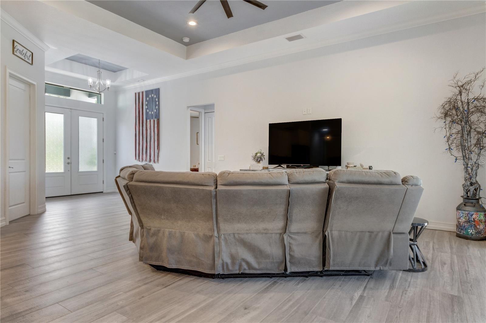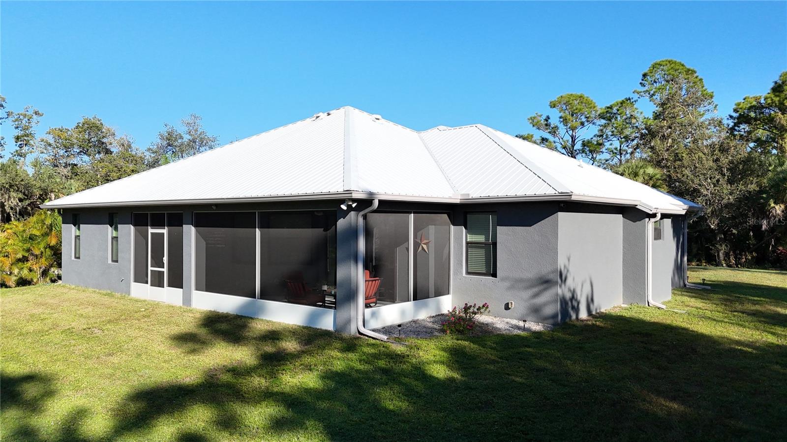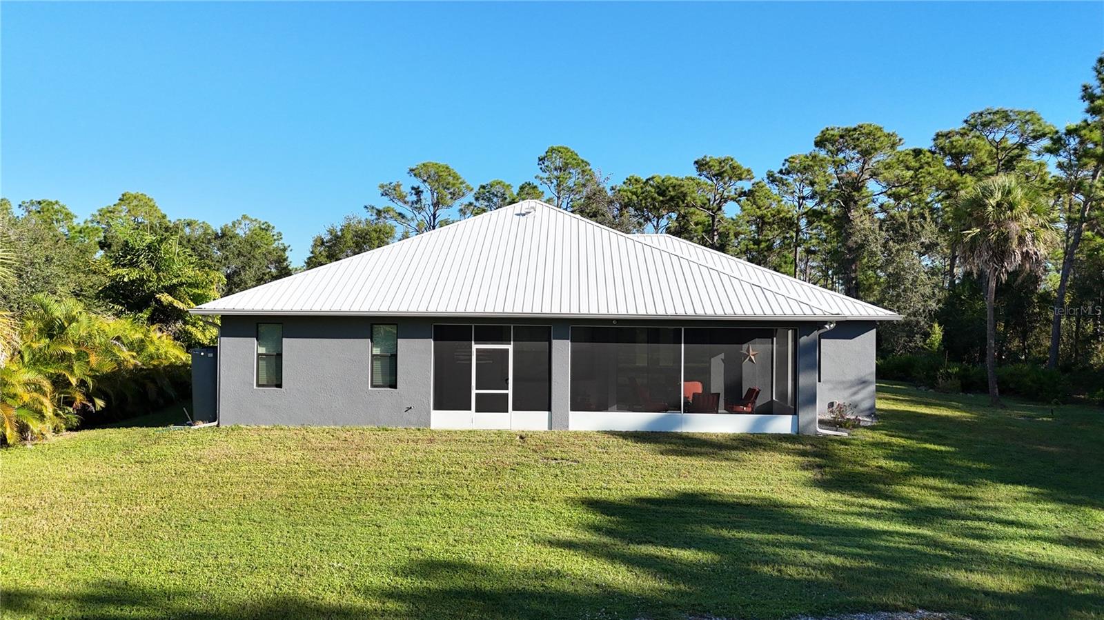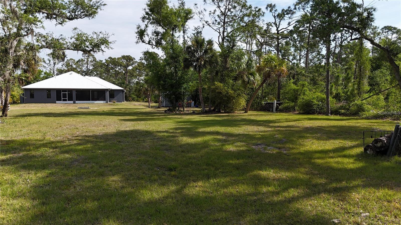 *3D VIRTUAL TOUR* Welcome home to your picture-perfect CUSTOM-BUILT home on 1.7 ACRES in the desirable area of Port Charlotte off Collingswood Blvd NOT IN A FLOOD ZONE! This beautifully crafted home combines elegance & comfort, while featuring 3 bedrooms + DEN, 2 baths & a 2 car garage. As you approach the property, you'll be captivated by its charming curb appeal, featuring lush landscaping, pebble rock, curbing, retractable garage screen door, T-shaped driveway, gutters & downspouts, flag holder, METAL ROOF (w/40yr transferable warranty) & to top it all off exterior soffit lights, for nighttime ambiance. Open the double front doors & be greeted with a grand entrance that's sure to please with gorgeous upgrades including 8' doorways, modern fixtures, high tray ceilings, warm, neutral colors & wood blinds throughout making this home one you don't want to miss! The welcoming Great Room draws your attention as you enter, complete with tall ceilings & natural sunlight beaming through the triple pocket sliding doors, wood plank ceramic tile flows freely throughout the main living areas making cleaning a breeze & pet friendly. The gourmet kitchen would make any chef happy! It boasts stainless steel appliances, quality cabinets with soft close feature, GRANITE countertops, ornate backsplash, closet pantry, WHOLE HOUSE R.O. System, farmhouse sink, plant shelves & a centered breakfast bar/island that is highlighted by 3 hanging pendant lights & has added storage & seating options when entertaining! The quaint dining room flows seamlessly together with the kitchen & makes the perfect gathering spot! Retreat to the primary bedroom, it is comfortable & large in size & houses private lanai access & an en-suite master bath, that offers dual sinks, make-up vanity, linen & walk-in clothing closet, private water closet & walk-in Roman shower. The guest bedrooms are across the home in this desirable split bedroom floor plan. Both bedrooms are supplied with a private closet, ceiling fan & window. A well-appointed guest bath with vanity, shower/tub combo & toilet is in between the bedrooms for added convenience. A den with built in desk would make for an excellent office, craft room or game room - the possibilities are endless! The inside laundry room has additional storage, utility sink & custom top for washer/dryer where you can fold your clothes or iron. The 2-car garage & large driveway provides ample storage & parking spaces for vehicles or hobbies. Pocket sliders from the Great Room open to your peaceful extended, screened in lanai showcasing panoramic backyard views, the epitome of Florida living. Entertain family & friends all while enjoying the firepit & gorgeous weather Florida has to offer or grab a good book & relax while taking in the sights & sounds of your serene 1.7 acres of land. No deed restrictions or HOA fees. The terrific location of this home allows QUICK access to shopping, golfing & restaurants. Close proximity to the beautiful Gulf Beaches. Also nearby, Charlotte Harbor & the Gulf of Mexico where fishing is plentiful! Love Baseball? Charlotte Sports Park, home of the Tampa Bay Rays baseball spring training & the BRAND NEW Wellen Park area where you can watch an Atlanta Braves spring training baseball game, shop, dine out or enjoy a Sunday at the Farmers Market are just a short drive! US-41 & Interstate 75 allow you quick access to the North or South. Include this home on your "Must See List" and start packing!