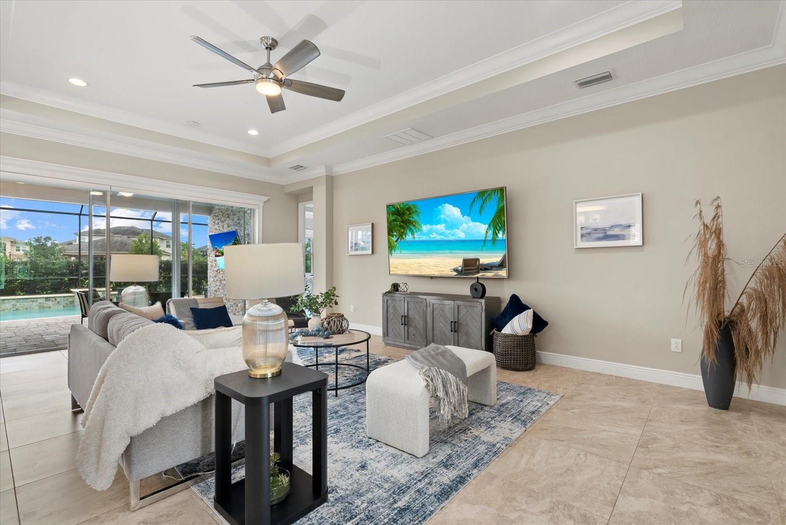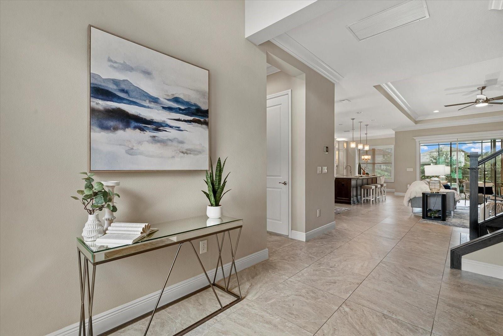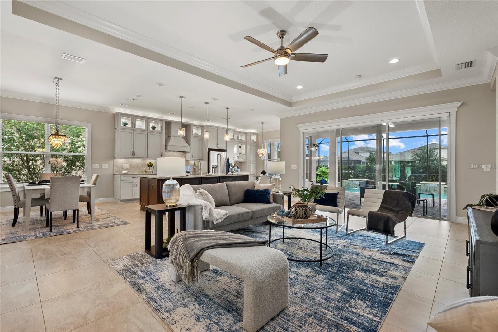 Coffered Ceiling(s), Crown Molding, Eat-in Kitchen, High Ceilings, Open Floorplan
