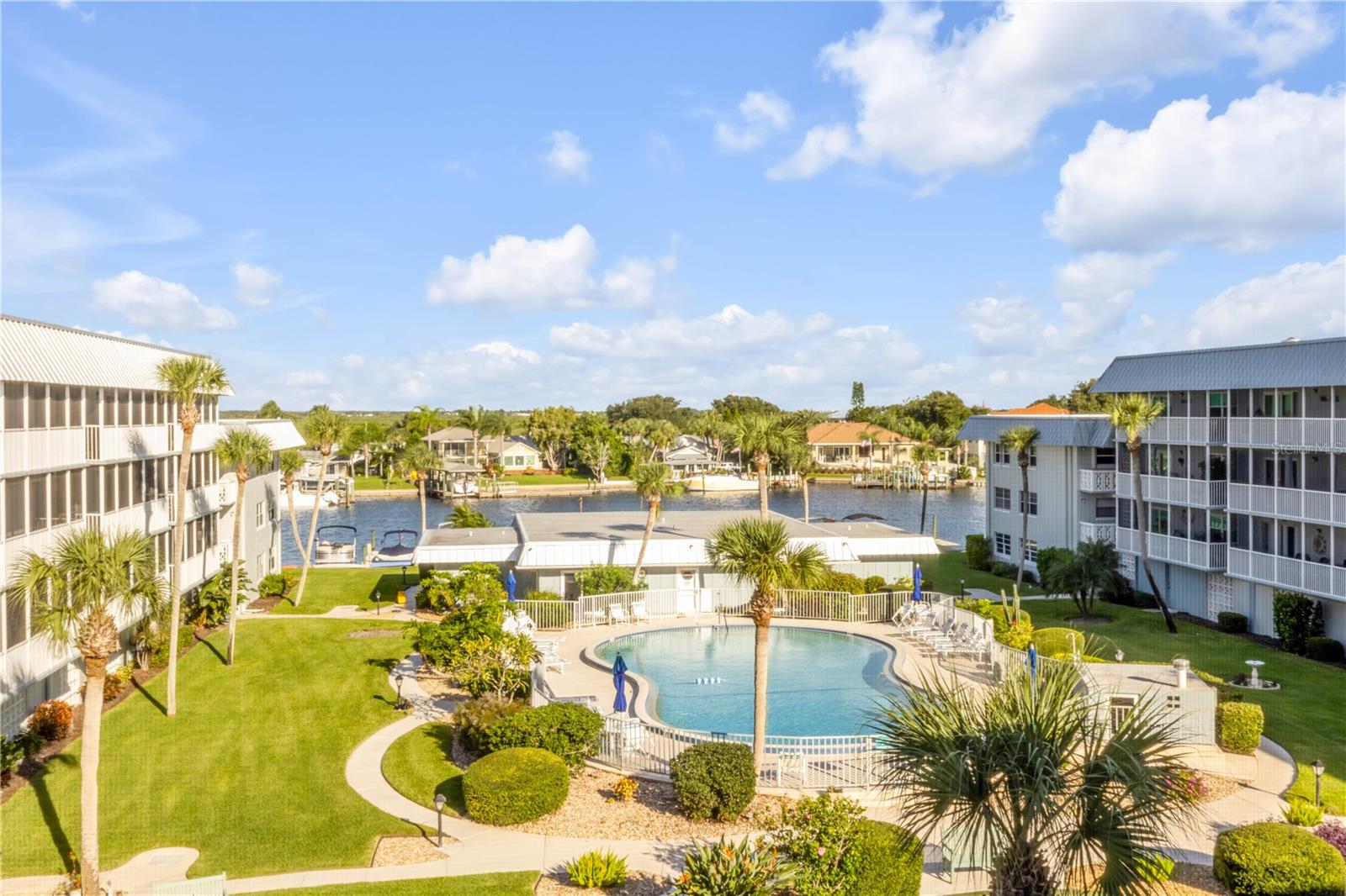 Under contract-accepting backup offers. Rarely available 3Bd 2 Ba condo penthouse home in the Waterway West community. Direct intracoastal access with views of the deep Venezia canals. A 40-foot private screened balcony overlooks the canal with views of the Ponce Inlet Lighthouse, pool and courtyards. There are modern stainless appliances and an open floor plan with sliding glass doors from both the living area and primary bedroom onto the balcony. Spacious storage. Enjoy resort-style amenities: heated pool, clubhouse with full kitchen, fitness center, putting green, shuffleboard, dock for fishing. Boat slips may be available with direct access to the intracoastal. Walk, bike or golf-cart ride to beach, Flagler Avenue or Canal Street shops & restaurants. Yr 2022 A/C, Lennox Heat Pump installed in December 2022. Waterway West has two central gas hot water heaters, cost included in monthly fees.