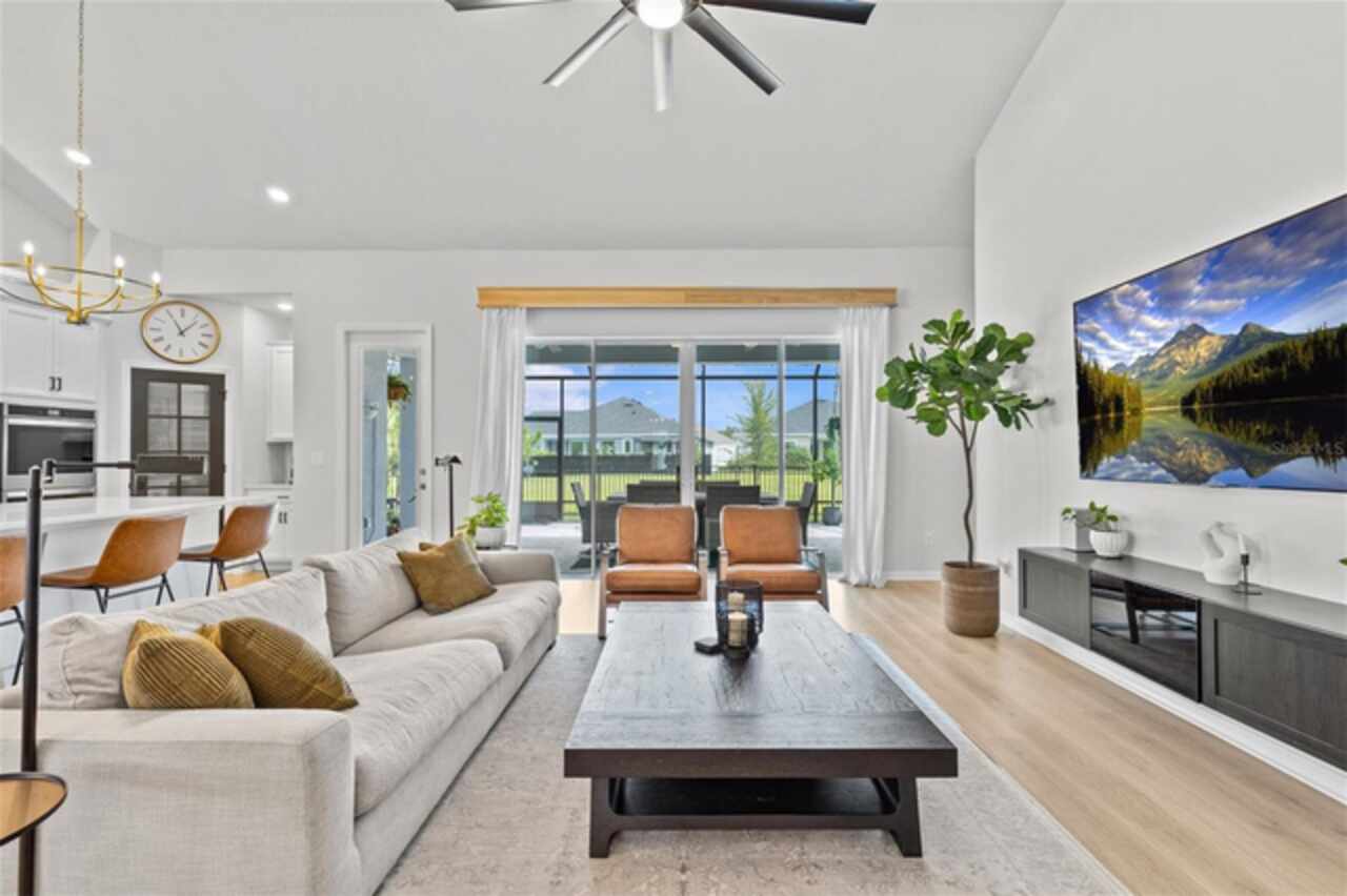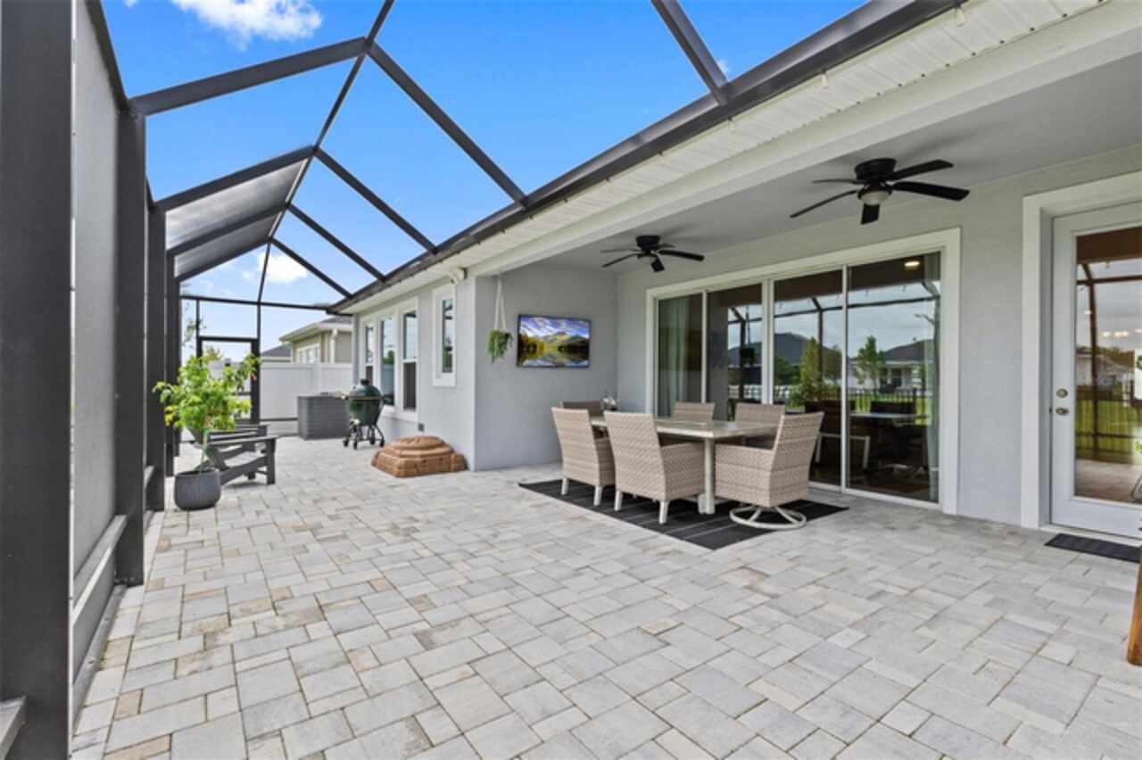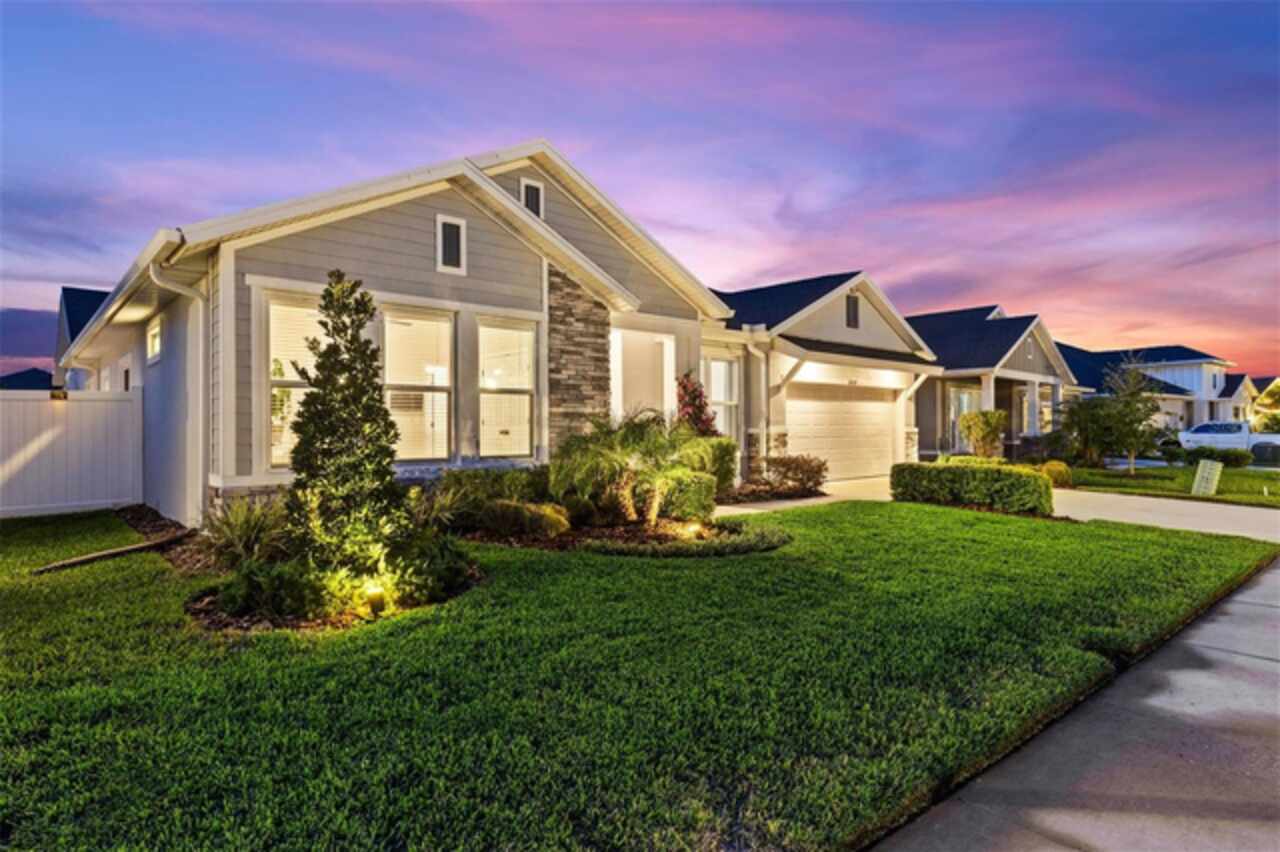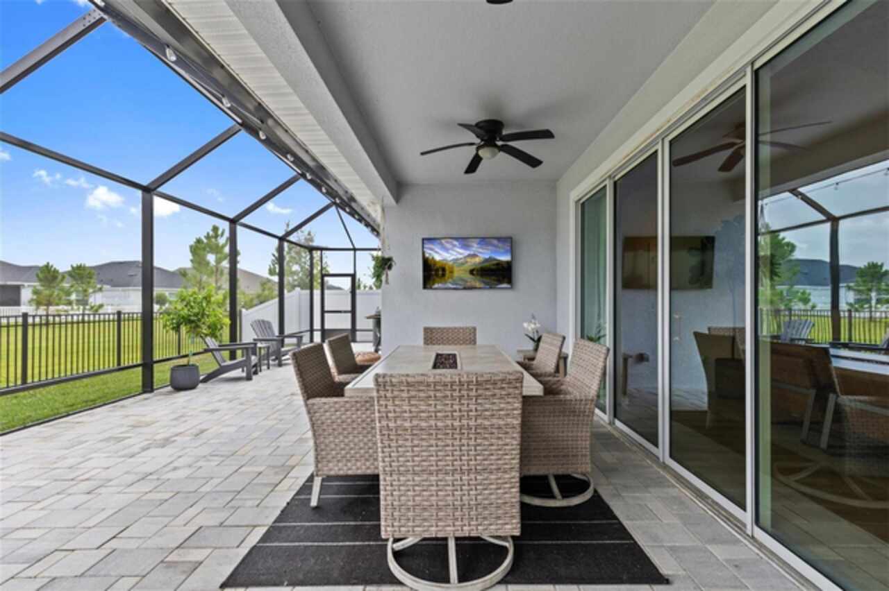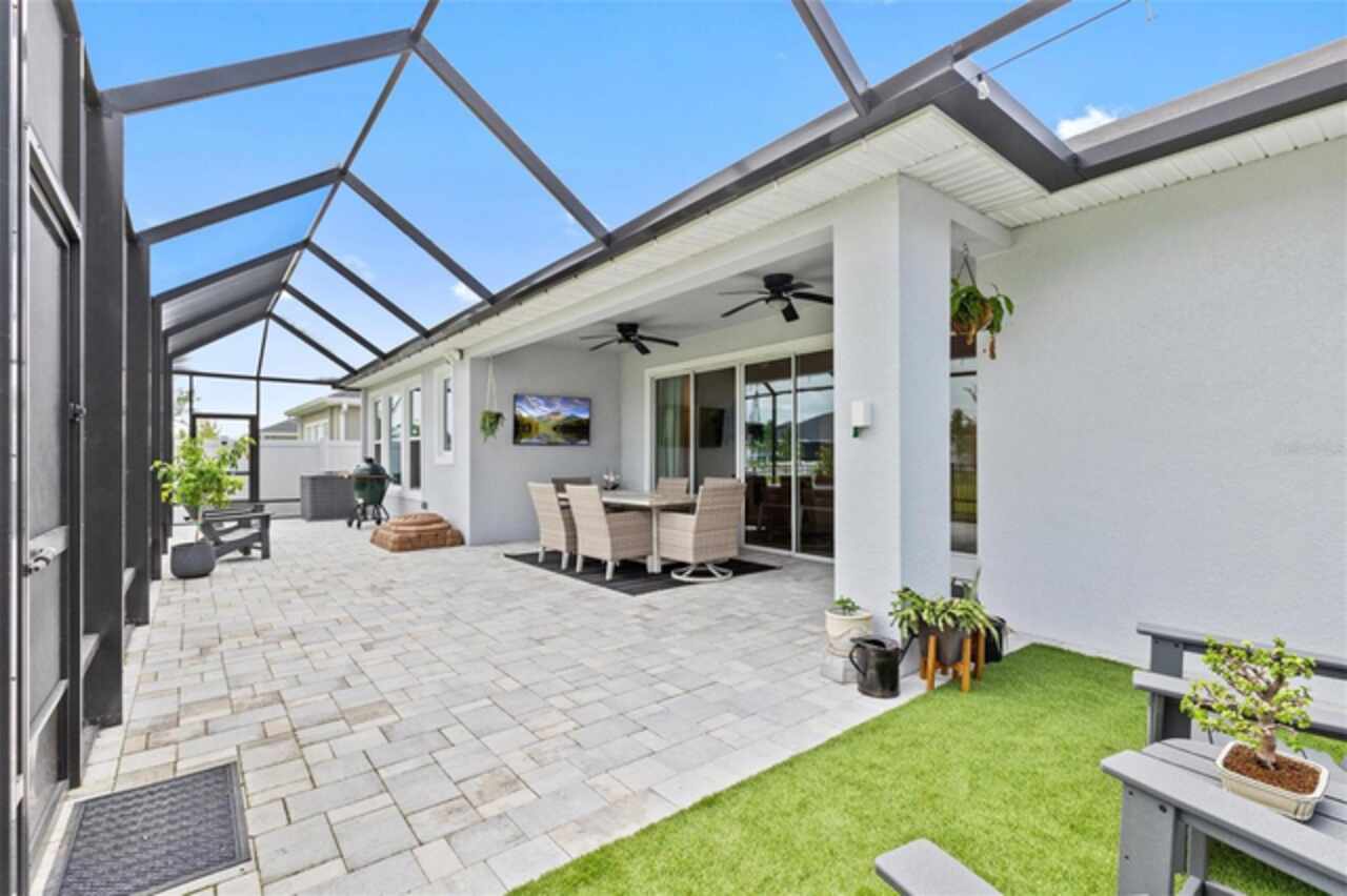 Welcome to this extensively upgraded Palmer model by David Weekley Homes offering over 3, 000 square feet of thoughtfully designed living space, featuring 4 bedrooms, 3 full bathrooms, RARE 4 CAR GARAGE (684 Sqft), a dedicated study/office, & TV room all set on a premium lot with upgraded elevation and stacked stone front. Reimagined and enhanced this home now showcases more than $100, 000 in upgrades, making it a standout in the community. Step inside and you’re immediately greeted by soaring ceilings, elegant sight lines, and a 12-foot multi-panel sliding glass door that draws your eyes out to the expansive screened lanai and paver patio. The heart of the home features a gourmet kitchen with quartz countertops, a designer vent hood, upgraded cabinetry, a cooktop layout, full-height backsplash, and a premium double oven. The oversized island flows into an open dining and living area that is perfect for both entertaining and everyday living. The Owner’s Suite offers a spa-like retreat with a super shower, upgraded custom closet system, and premium flooring. Secondary bedrooms have also been enhanced with custom closet upgrades, and two beautifully improved guest baths add even more function and style. Additional upgrades include eight premium ceiling fans, upgraded chandeliers and lighting fixtures, window blinds and custom drapery, upper cabinetry in the laundry room, and board and batten accent walls in the foyer and children’s room. A premium Titan water softener system and EV charging station offer convenience and efficiency, while the fully fenced backyard, enclosed with aluminum and PVC fencing is ideal for privacy and pets. The backyard also features a garbage can enclosure, extended pavers along the side yard, and a Brand new $40, 000 dollar full screen enclosure covering the entire extended back patio, all completed in 2025. This home is truly move-in ready, with every major upgrade already completed, included on a premium lot with upgraded elevation, quartz throughout, and high-end appliance package. Located in a vibrant resort-style community featuring a lazy river, dog parks, playgrounds, clubhouse, fitness center, and walking trails, and just minutes from top-rated schools, Wiregrass shopping, Tampa Premium Outlets, and famous man-made lagoons at Mirada and Epperson. This is more than a home, it's a fully upgraded lifestyle property, meticulously maintained and elevated to a level rarely seen in today’s market.