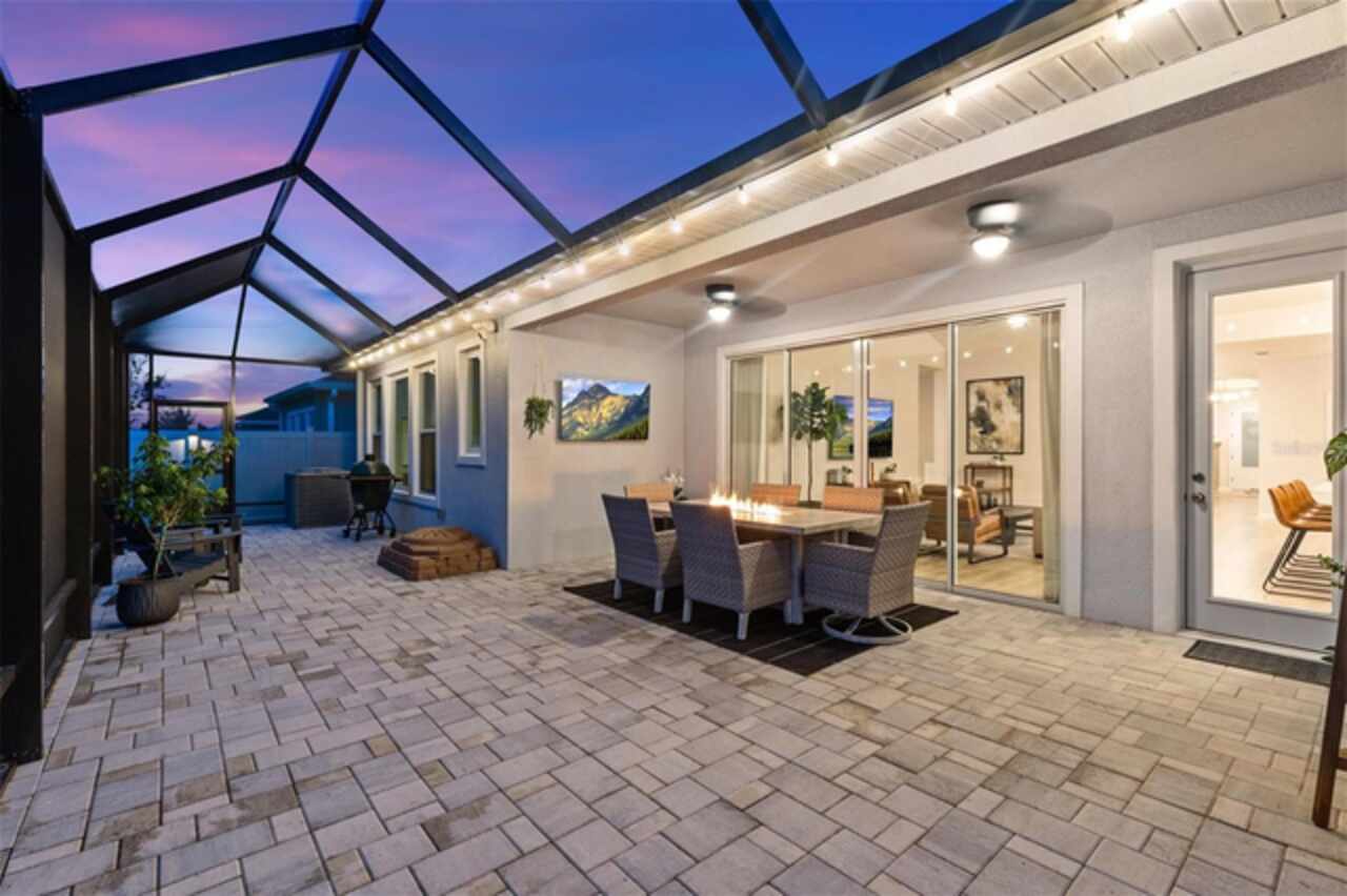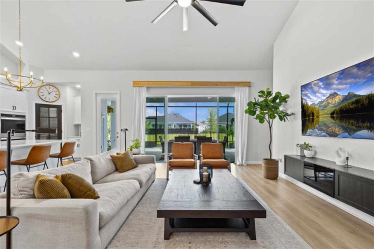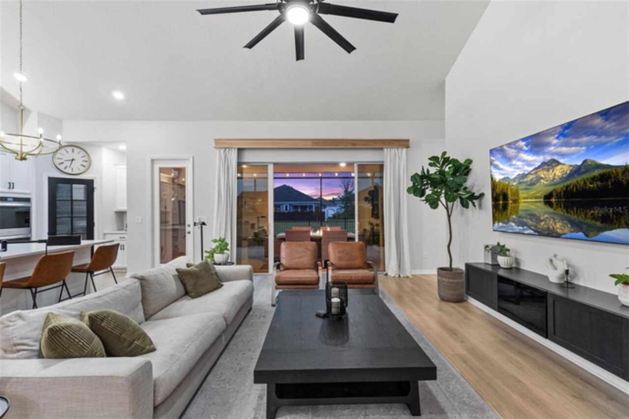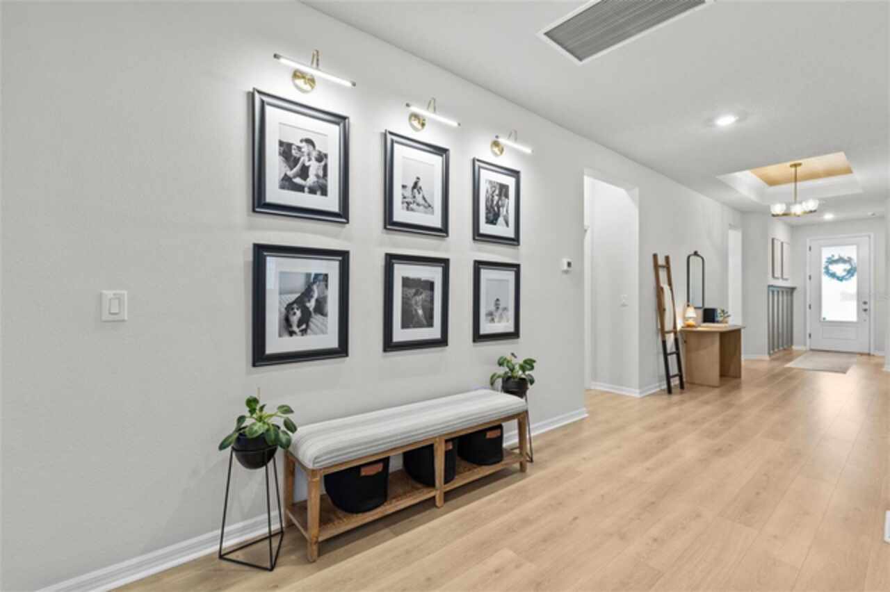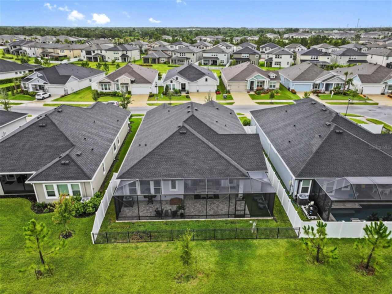 Welcome to this extensively upgraded Palmer model by David Weekley Homes offering over 3, 000 square feet of thoughtfully designed living space, featuring 4 bedrooms, 3 full bathrooms, RARE 4 CAR GARAGE (684 Sqft), a dedicated study/office, & TV room all set on a premium lot with upgraded elevation and stacked stone front. Reimagined and enhanced this home now showcases more than $100, 000 in upgrades, making it a standout in the community. Step inside and you’re immediately greeted by soaring ceilings, elegant sight lines, and a 12-foot multi-panel sliding glass door that draws your eyes out to the expansive screened lanai and paver patio. The heart of the home features a gourmet kitchen with quartz countertops, a designer vent hood, upgraded cabinetry, a cooktop layout, full-height backsplash, and a premium double oven. The oversized island flows into an open dining and living area that is perfect for both entertaining and everyday living. The Owner’s Suite offers a spa-like retreat with a super shower, upgraded custom closet system, and premium flooring. Secondary bedrooms have also been enhanced with custom closet upgrades, and two beautifully improved guest baths add even more function and style. Additional upgrades include eight premium ceiling fans, upgraded chandeliers and lighting fixtures, window blinds and custom drapery, upper cabinetry in the laundry room, and board and batten accent walls in the foyer and children’s room. A premium Titan water softener system and EV charging station offer convenience and efficiency, while the fully fenced backyard, enclosed with aluminum and PVC fencing is ideal for privacy and pets. The backyard also features a garbage can enclosure, extended pavers along the side yard, and a Brand new $40, 000 dollar full screen enclosure covering the entire extended back patio, all completed in 2025. This home is truly move-in ready, with every major upgrade already completed, included on a premium lot with upgraded elevation, quartz throughout, and high-end appliance package. Located in a vibrant resort-style community featuring a lazy river, dog parks, playgrounds, clubhouse, fitness center, and walking trails, and just minutes from top-rated schools, Wiregrass shopping, Tampa Premium Outlets, and famous man-made lagoons at Mirada and Epperson. This is more than a home, it's a fully upgraded lifestyle property, meticulously maintained and elevated to a level rarely seen in today’s market.