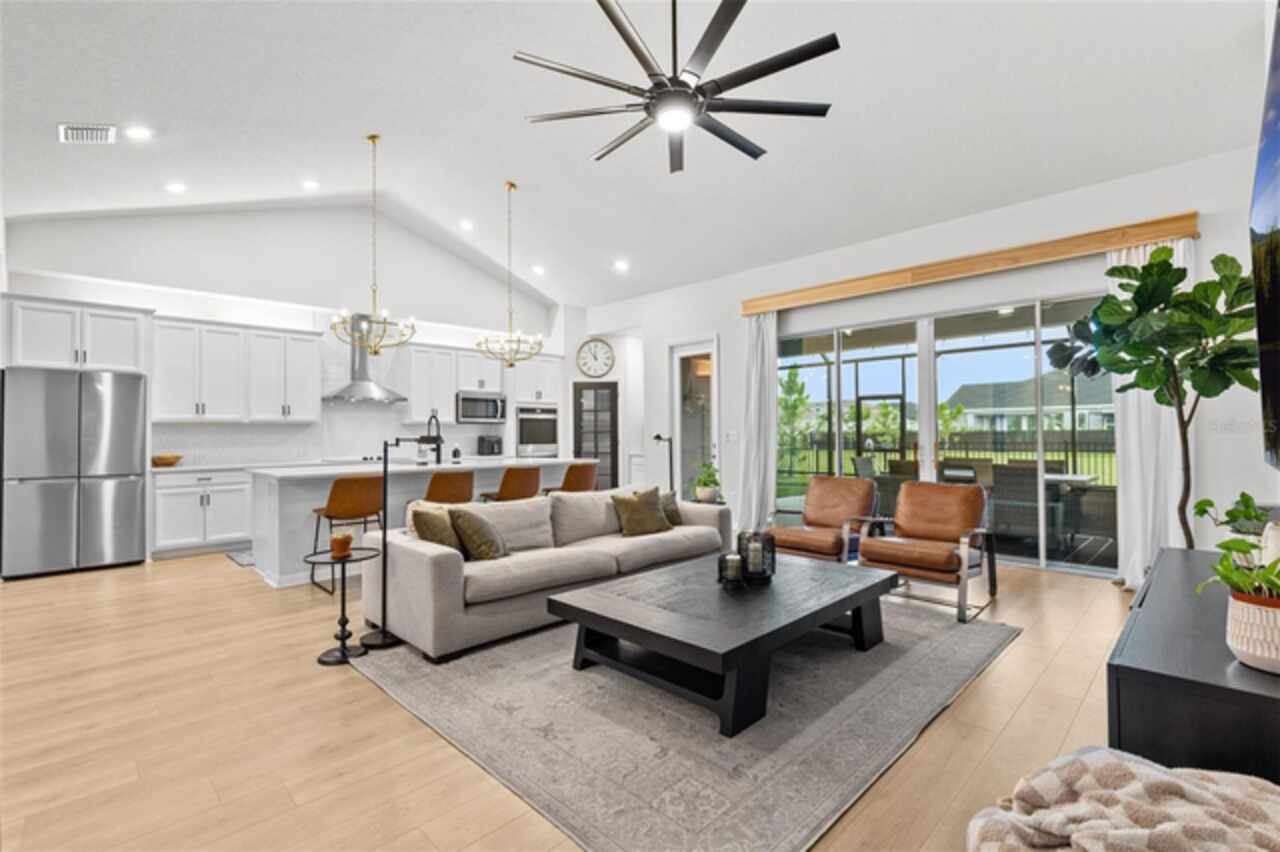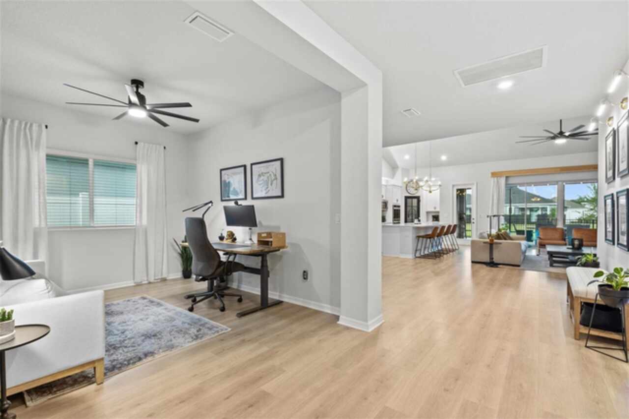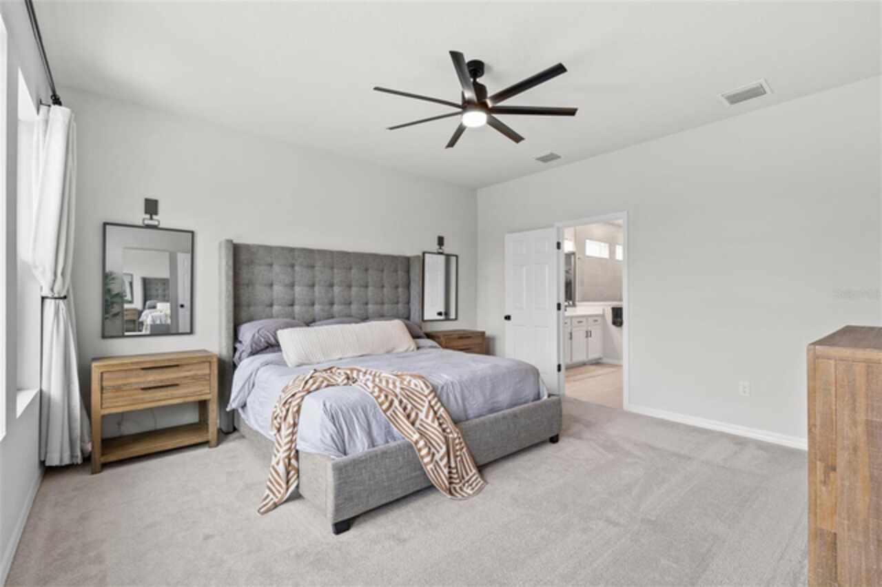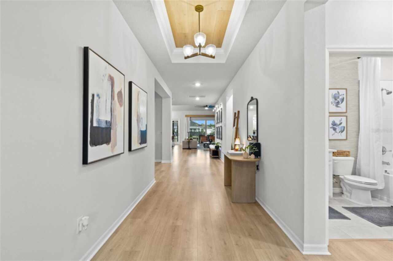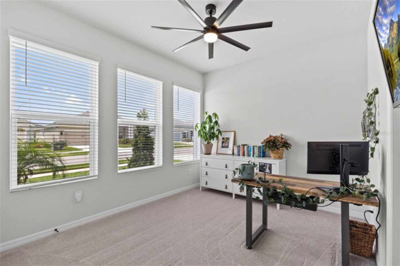 Welcome to this extensively upgraded Palmer model by David Weekley Homes offering over 3, 000 square feet of thoughtfully designed living space, featuring 4 bedrooms, 3 full bathrooms, RARE 4 CAR GARAGE (684 Sqft), a dedicated study/office, & TV room all set on a premium lot with upgraded elevation and stacked stone front. Reimagined and enhanced this home now showcases more than $100, 000 in upgrades, making it a standout in the community. Step inside and you’re immediately greeted by soaring ceilings, elegant sight lines, and a 12-foot multi-panel sliding glass door that draws your eyes out to the expansive screened lanai and paver patio. The heart of the home features a gourmet kitchen with quartz countertops, a designer vent hood, upgraded cabinetry, a cooktop layout, full-height backsplash, and a premium double oven. The oversized island flows into an open dining and living area that is perfect for both entertaining and everyday living. The Owner’s Suite offers a spa-like retreat with a super shower, upgraded custom closet system, and premium flooring. Secondary bedrooms have also been enhanced with custom closet upgrades, and two beautifully improved guest baths add even more function and style. Additional upgrades include eight premium ceiling fans, upgraded chandeliers and lighting fixtures, window blinds and custom drapery, upper cabinetry in the laundry room, and board and batten accent walls in the foyer and children’s room. A premium Titan water softener system and EV charging station offer convenience and efficiency, while the fully fenced backyard, enclosed with aluminum and PVC fencing is ideal for privacy and pets. The backyard also features a garbage can enclosure, extended pavers along the side yard, and a Brand new $40, 000 dollar full screen enclosure covering the entire extended back patio, all completed in 2025. This home is truly move-in ready, with every major upgrade already completed, included on a premium lot with upgraded elevation, quartz throughout, and high-end appliance package. Located in a vibrant resort-style community featuring a lazy river, dog parks, playgrounds, clubhouse, fitness center, and walking trails, and just minutes from top-rated schools, Wiregrass shopping, Tampa Premium Outlets, and famous man-made lagoons at Mirada and Epperson. This is more than a home, it's a fully upgraded lifestyle property, meticulously maintained and elevated to a level rarely seen in today’s market.