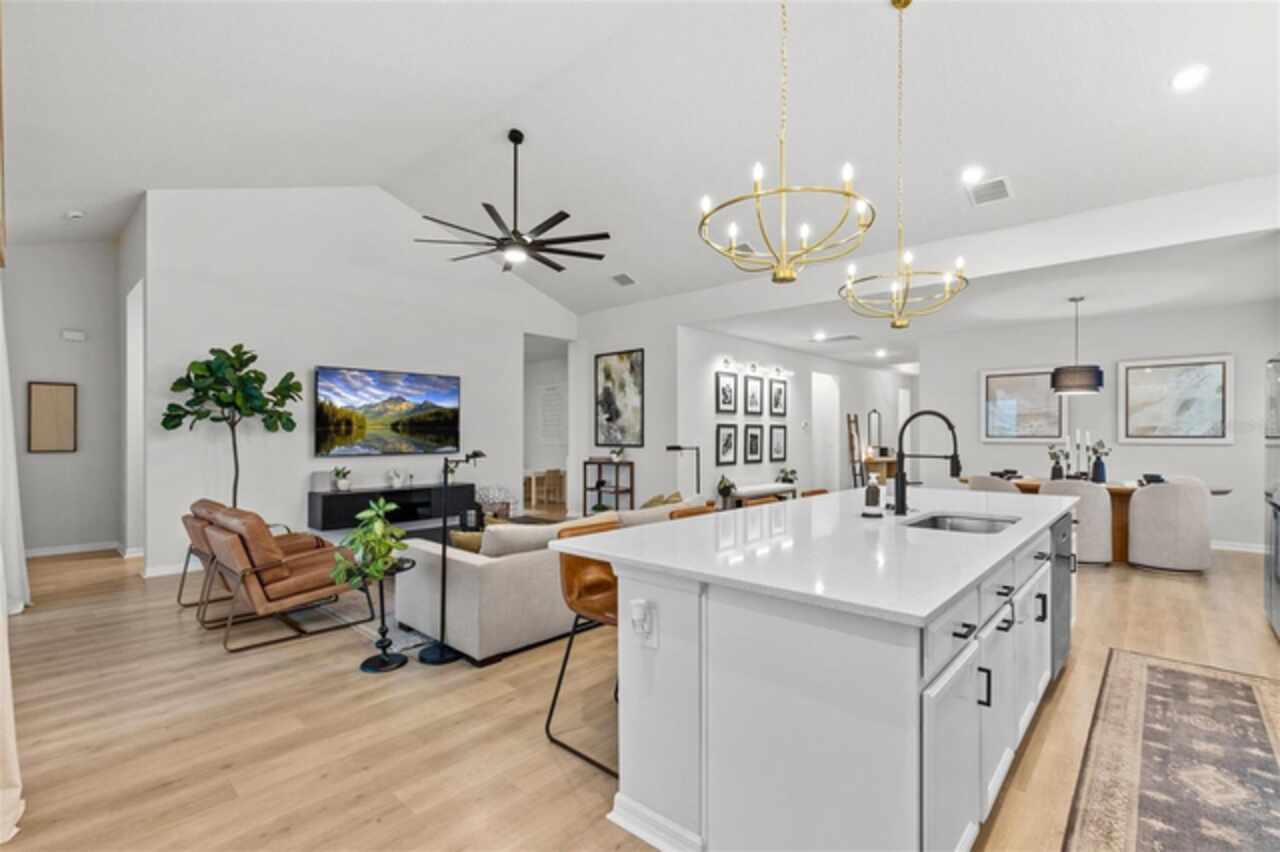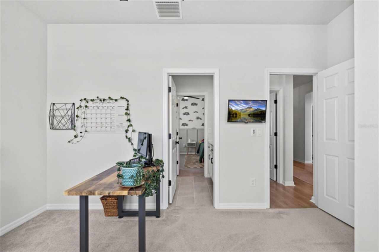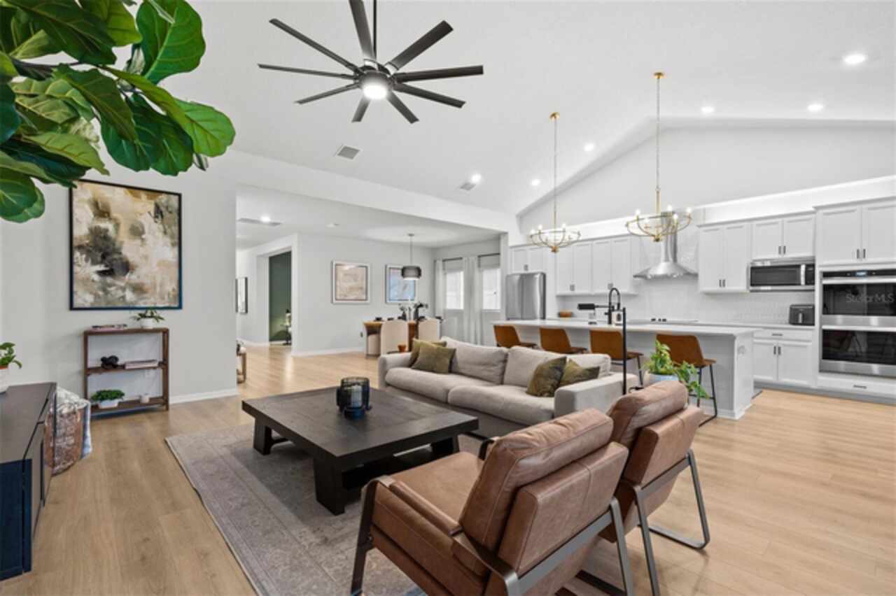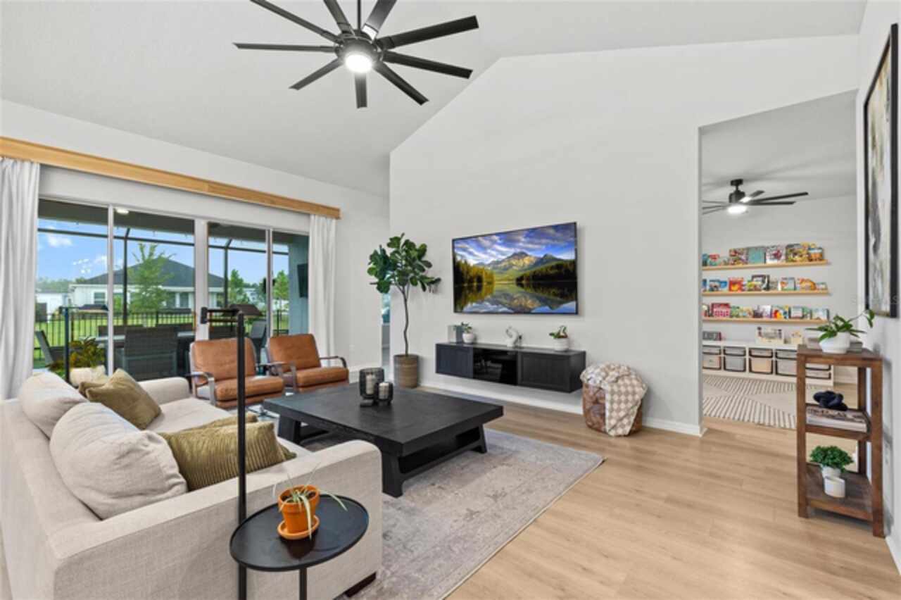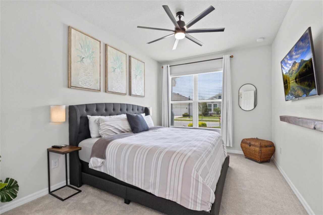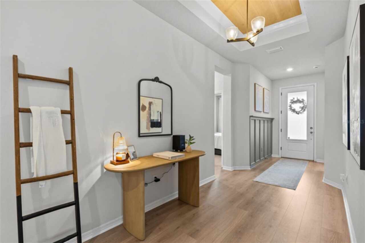 Welcome to this extensively upgraded Palmer model by David Weekley Homes offering over 3, 000 square feet of thoughtfully designed living space, featuring 4 bedrooms, 3 full bathrooms, RARE 4 CAR GARAGE (684 Sqft), a dedicated study/office, & TV room all set on a premium lot with upgraded elevation and stacked stone front. Reimagined and enhanced this home now showcases more than $100, 000 in upgrades, making it a standout in the community. Step inside and you’re immediately greeted by soaring ceilings, elegant sight lines, and a 12-foot multi-panel sliding glass door that draws your eyes out to the expansive screened lanai and paver patio. The heart of the home features a gourmet kitchen with quartz countertops, a designer vent hood, upgraded cabinetry, a cooktop layout, full-height backsplash, and a premium double oven. The oversized island flows into an open dining and living area that is perfect for both entertaining and everyday living. The Owner’s Suite offers a spa-like retreat with a super shower, upgraded custom closet system, and premium flooring. Secondary bedrooms have also been enhanced with custom closet upgrades, and two beautifully improved guest baths add even more function and style. Additional upgrades include eight premium ceiling fans, upgraded chandeliers and lighting fixtures, window blinds and custom drapery, upper cabinetry in the laundry room, and board and batten accent walls in the foyer and children’s room. A premium Titan water softener system and EV charging station offer convenience and efficiency, while the fully fenced backyard, enclosed with aluminum and PVC fencing is ideal for privacy and pets. The backyard also features a garbage can enclosure, extended pavers along the side yard, and a Brand new $40, 000 dollar full screen enclosure covering the entire extended back patio, all completed in 2025. This home is truly move-in ready, with every major upgrade already completed, included on a premium lot with upgraded elevation, quartz throughout, and high-end appliance package. Located in a vibrant resort-style community featuring a lazy river, dog parks, playgrounds, clubhouse, fitness center, and walking trails, and just minutes from top-rated schools, Wiregrass shopping, Tampa Premium Outlets, and famous man-made lagoons at Mirada and Epperson. This is more than a home, it's a fully upgraded lifestyle property, meticulously maintained and elevated to a level rarely seen in today’s market.