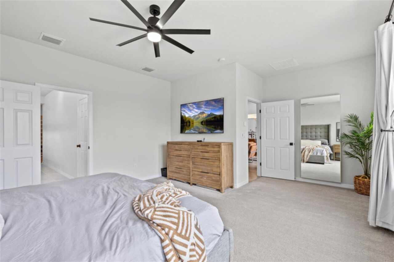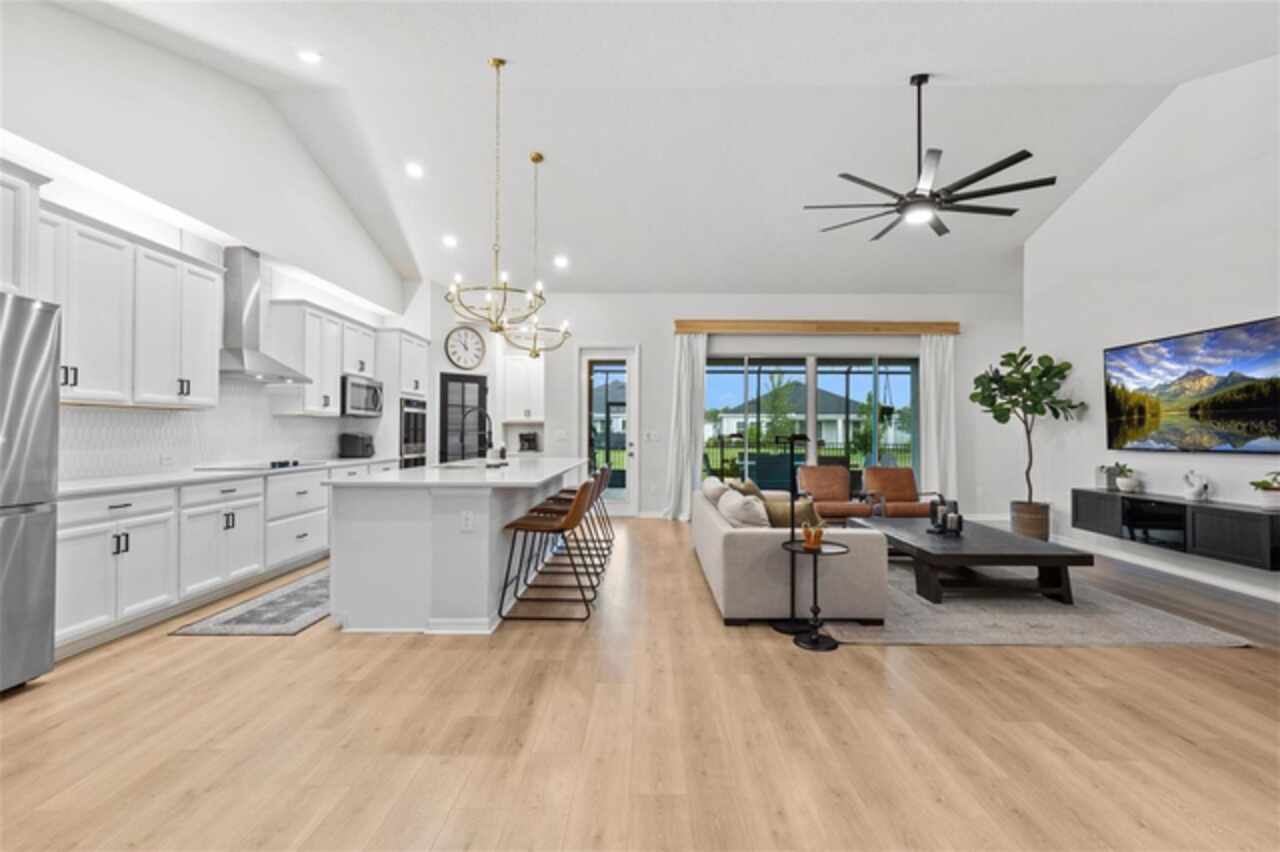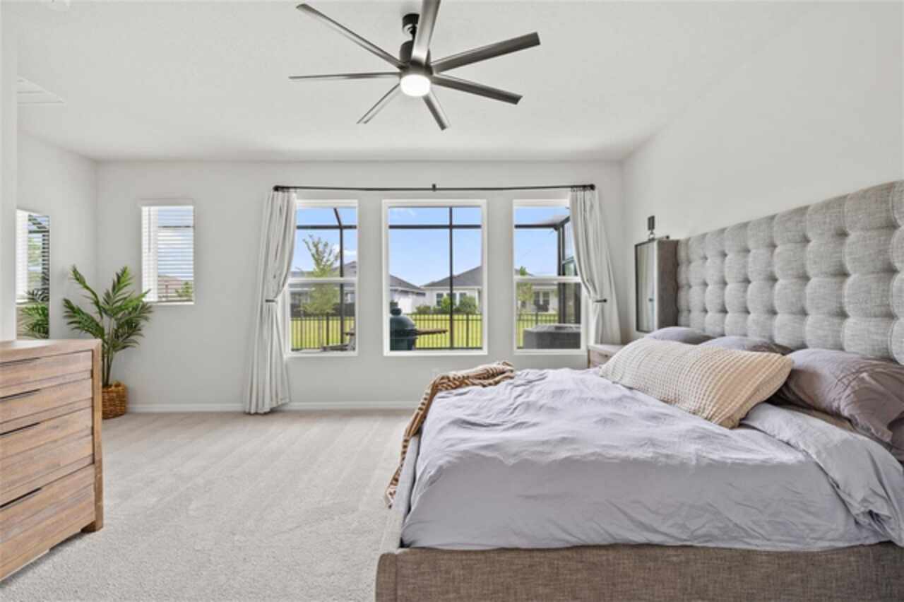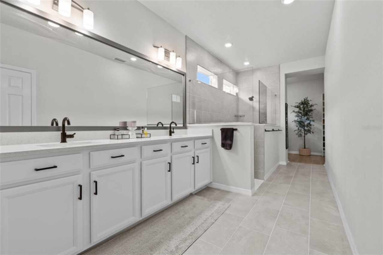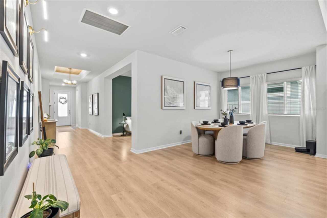Welcome to this extensively upgraded Palmer model by David Weekley Homes offering over 3, 000 square feet of thoughtfully designed living space, featuring 4 bedrooms, 3 full bathrooms, RARE 4 CAR GARAGE (684 Sqft), a dedicated study/office, & TV room all set on a premium lot with upgraded elevation and stacked stone front. Reimagined and enhanced this home now showcases more than $100, 000 in upgrades, making it a standout in the community. Step inside and you’re immediately greeted by soaring ceilings, elegant sight lines, and a 12-foot multi-panel sliding glass door that draws your eyes out to the expansive screened lanai and paver patio. The heart of the home features a gourmet kitchen with quartz countertops, a designer vent hood, upgraded cabinetry, a cooktop layout, full-height backsplash, and a premium double oven. The oversized island flows into an open dining and living area that is perfect for both entertaining and everyday living. The Owner’s Suite offers a spa-like retreat with a super shower, upgraded custom closet system, and premium flooring. Secondary bedrooms have also been enhanced with custom closet upgrades, and two beautifully improved guest baths add even more function and style. Additional upgrades include eight premium ceiling fans, upgraded chandeliers and lighting fixtures, window blinds and custom drapery, upper cabinetry in the laundry room, and board and batten accent walls in the foyer and children’s room. A premium Titan water softener system and EV charging station offer convenience and efficiency, while the fully fenced backyard, enclosed with aluminum and PVC fencing is ideal for privacy and pets. The backyard also features a garbage can enclosure, extended pavers along the side yard, and a Brand new $40, 000 dollar full screen enclosure covering the entire extended back patio, all completed in 2025. This home is truly move-in ready, with every major upgrade already completed, included on a premium lot with upgraded elevation, quartz throughout, and high-end appliance package. Located in a vibrant resort-style community featuring a lazy river, dog parks, playgrounds, clubhouse, fitness center, and walking trails, and just minutes from top-rated schools, Wiregrass shopping, Tampa Premium Outlets, and famous man-made lagoons at Mirada and Epperson. This is more than a home, it's a fully upgraded lifestyle property, meticulously maintained and elevated to a level rarely seen in today’s market.