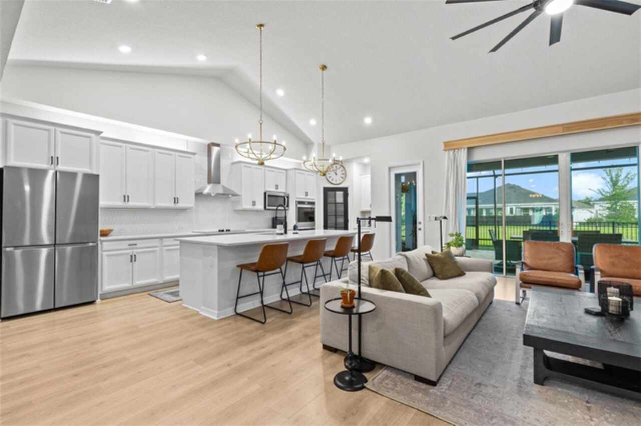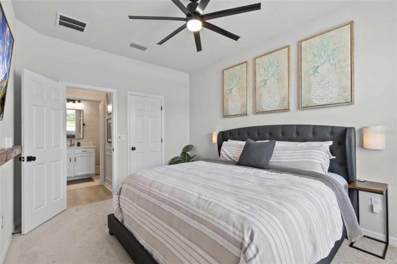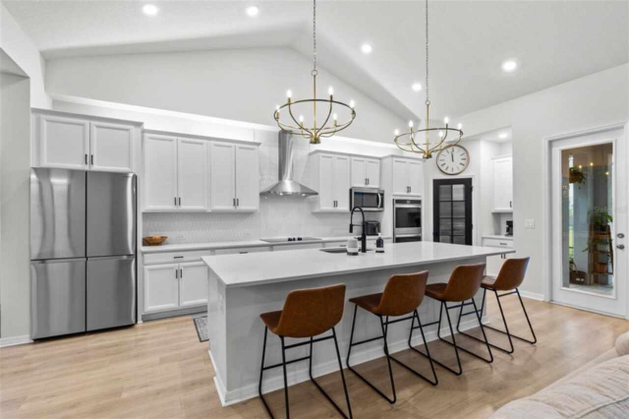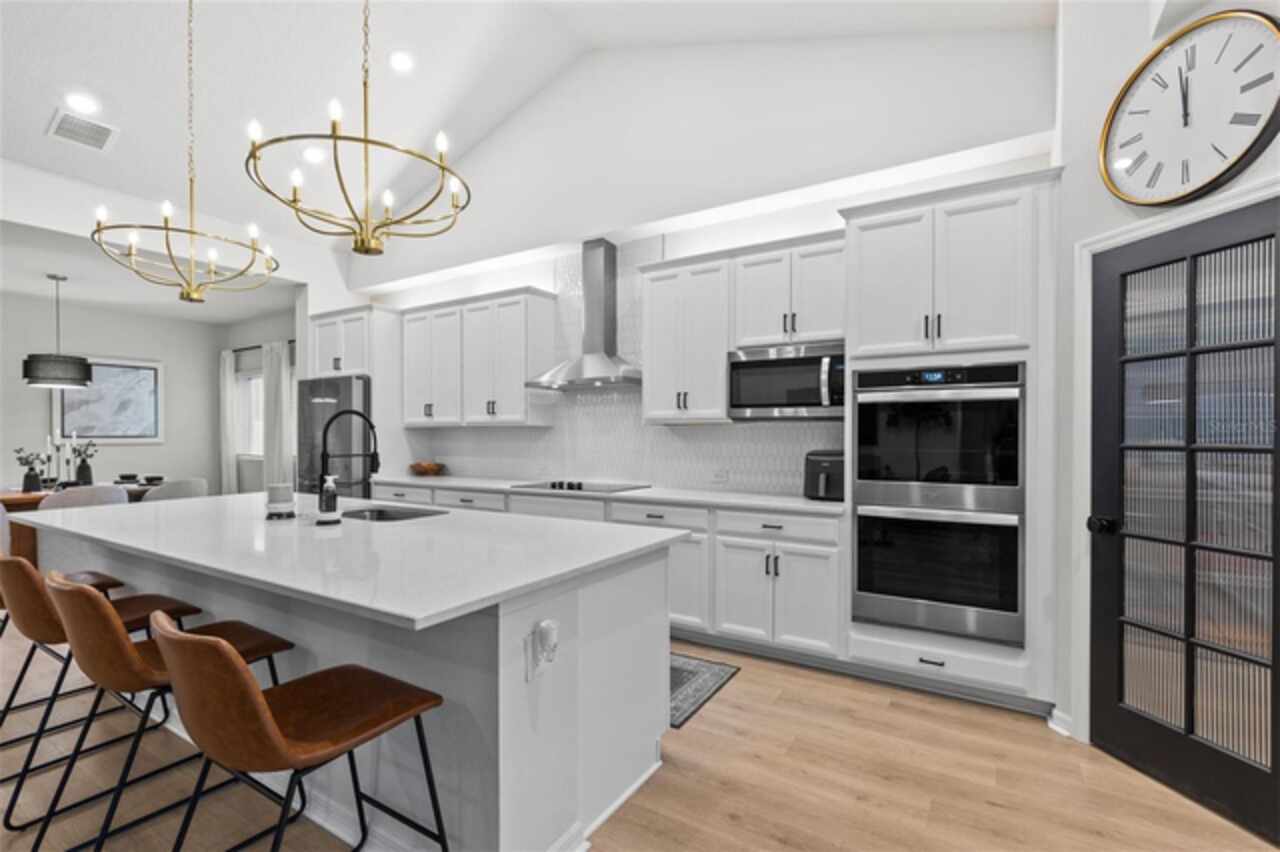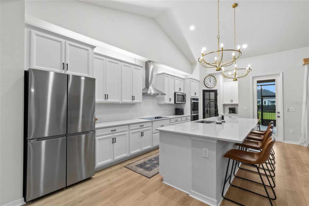 Welcome to this extensively upgraded Palmer model by David Weekley Homes offering over 3, 000 square feet of thoughtfully designed living space, featuring 4 bedrooms, 3 full bathrooms, RARE 4 CAR GARAGE (684 Sqft), a dedicated study/office, & TV room all set on a premium lot with upgraded elevation and stacked stone front. Reimagined and enhanced this home now showcases more than $100, 000 in upgrades, making it a standout in the community. Step inside and you’re immediately greeted by soaring ceilings, elegant sight lines, and a 12-foot multi-panel sliding glass door that draws your eyes out to the expansive screened lanai and paver patio. The heart of the home features a gourmet kitchen with quartz countertops, a designer vent hood, upgraded cabinetry, a cooktop layout, full-height backsplash, and a premium double oven. The oversized island flows into an open dining and living area that is perfect for both entertaining and everyday living. The Owner’s Suite offers a spa-like retreat with a super shower, upgraded custom closet system, and premium flooring. Secondary bedrooms have also been enhanced with custom closet upgrades, and two beautifully improved guest baths add even more function and style. Additional upgrades include eight premium ceiling fans, upgraded chandeliers and lighting fixtures, window blinds and custom drapery, upper cabinetry in the laundry room, and board and batten accent walls in the foyer and children’s room. A premium Titan water softener system and EV charging station offer convenience and efficiency, while the fully fenced backyard, enclosed with aluminum and PVC fencing is ideal for privacy and pets. The backyard also features a garbage can enclosure, extended pavers along the side yard, and a Brand new $40, 000 dollar full screen enclosure covering the entire extended back patio, all completed in 2025. This home is truly move-in ready, with every major upgrade already completed, included on a premium lot with upgraded elevation, quartz throughout, and high-end appliance package. Located in a vibrant resort-style community featuring a lazy river, dog parks, playgrounds, clubhouse, fitness center, and walking trails, and just minutes from top-rated schools, Wiregrass shopping, Tampa Premium Outlets, and famous man-made lagoons at Mirada and Epperson. This is more than a home, it's a fully upgraded lifestyle property, meticulously maintained and elevated to a level rarely seen in today’s market.