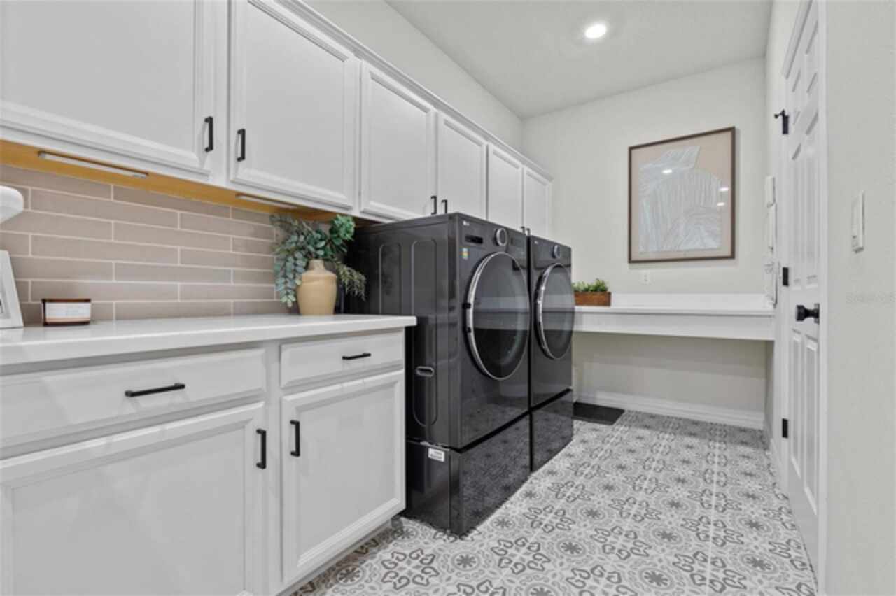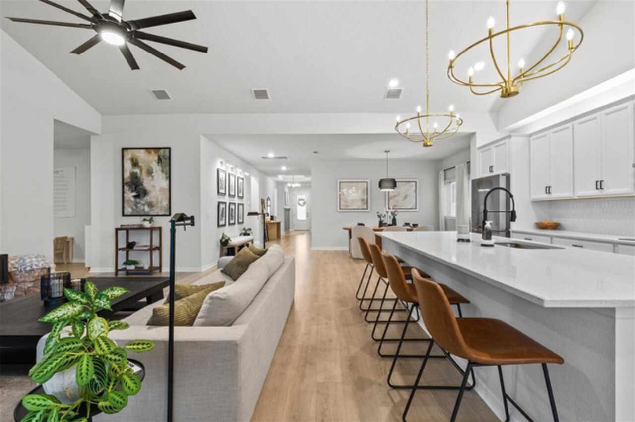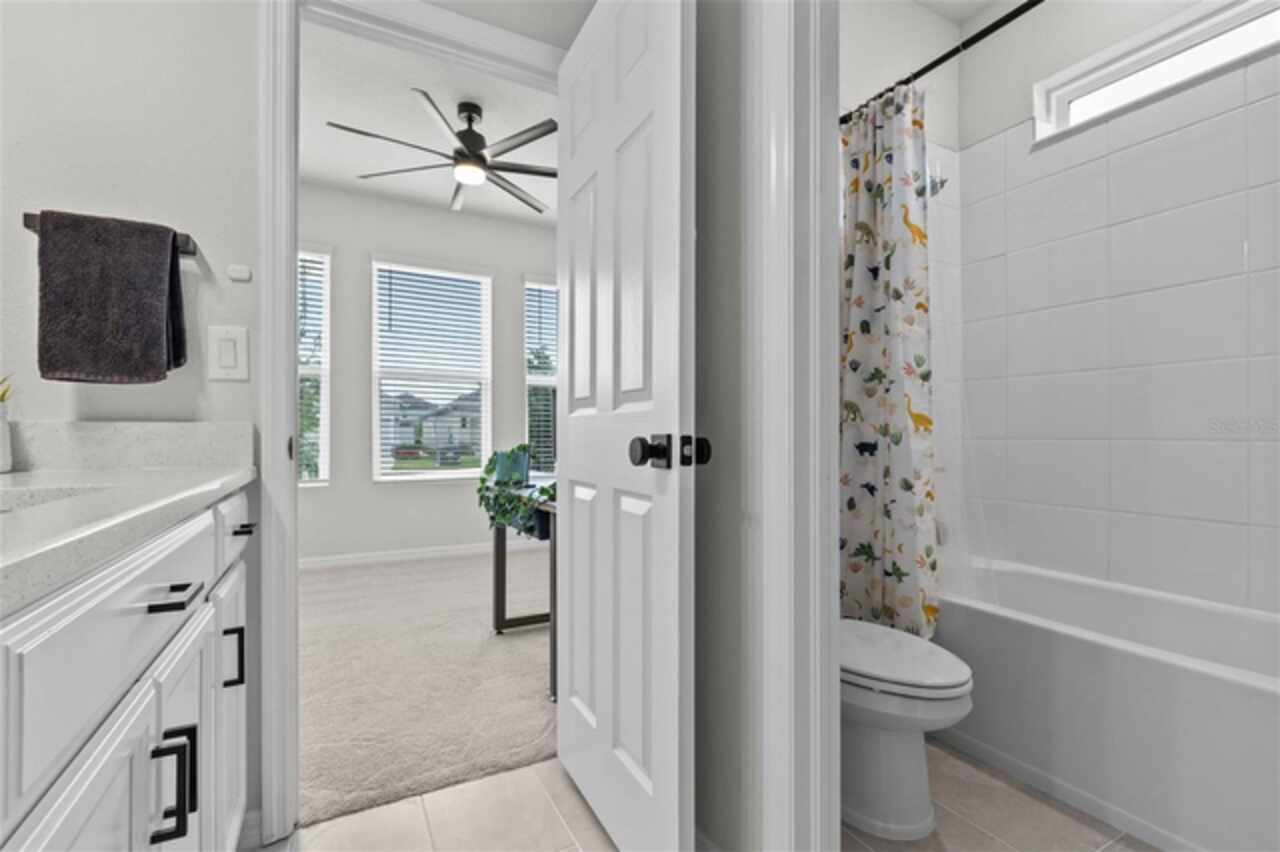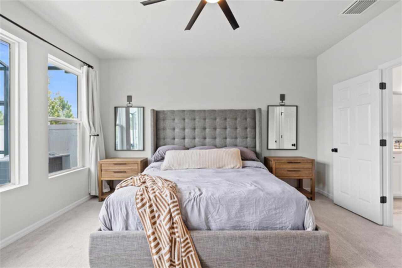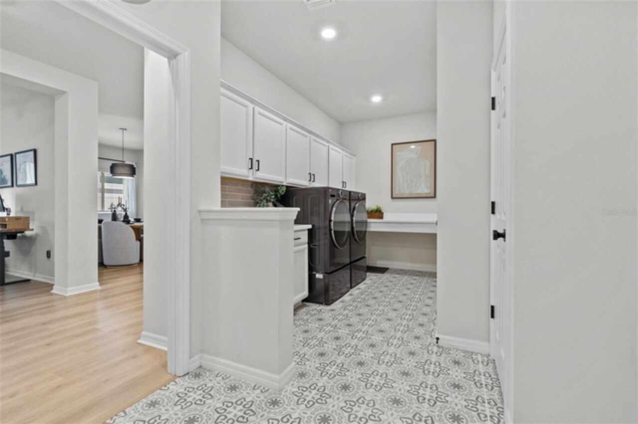 Welcome to this extensively upgraded Palmer model by David Weekley Homes offering over 3, 000 square feet of thoughtfully designed living space, featuring 4 bedrooms, 3 full bathrooms, RARE 4 CAR GARAGE (684 Sqft), a dedicated study/office, & TV room all set on a premium lot with upgraded elevation and stacked stone front. Reimagined and enhanced this home now showcases more than $100, 000 in upgrades, making it a standout in the community. Step inside and you’re immediately greeted by soaring ceilings, elegant sight lines, and a 12-foot multi-panel sliding glass door that draws your eyes out to the expansive screened lanai and paver patio. The heart of the home features a gourmet kitchen with quartz countertops, a designer vent hood, upgraded cabinetry, a cooktop layout, full-height backsplash, and a premium double oven. The oversized island flows into an open dining and living area that is perfect for both entertaining and everyday living. The Owner’s Suite offers a spa-like retreat with a super shower, upgraded custom closet system, and premium flooring. Secondary bedrooms have also been enhanced with custom closet upgrades, and two beautifully improved guest baths add even more function and style. Additional upgrades include eight premium ceiling fans, upgraded chandeliers and lighting fixtures, window blinds and custom drapery, upper cabinetry in the laundry room, and board and batten accent walls in the foyer and children’s room. A premium Titan water softener system and EV charging station offer convenience and efficiency, while the fully fenced backyard, enclosed with aluminum and PVC fencing is ideal for privacy and pets. The backyard also features a garbage can enclosure, extended pavers along the side yard, and a Brand new $40, 000 dollar full screen enclosure covering the entire extended back patio, all completed in 2025. This home is truly move-in ready, with every major upgrade already completed, included on a premium lot with upgraded elevation, quartz throughout, and high-end appliance package. Located in a vibrant resort-style community featuring a lazy river, dog parks, playgrounds, clubhouse, fitness center, and walking trails, and just minutes from top-rated schools, Wiregrass shopping, Tampa Premium Outlets, and famous man-made lagoons at Mirada and Epperson. This is more than a home, it's a fully upgraded lifestyle property, meticulously maintained and elevated to a level rarely seen in today’s market.