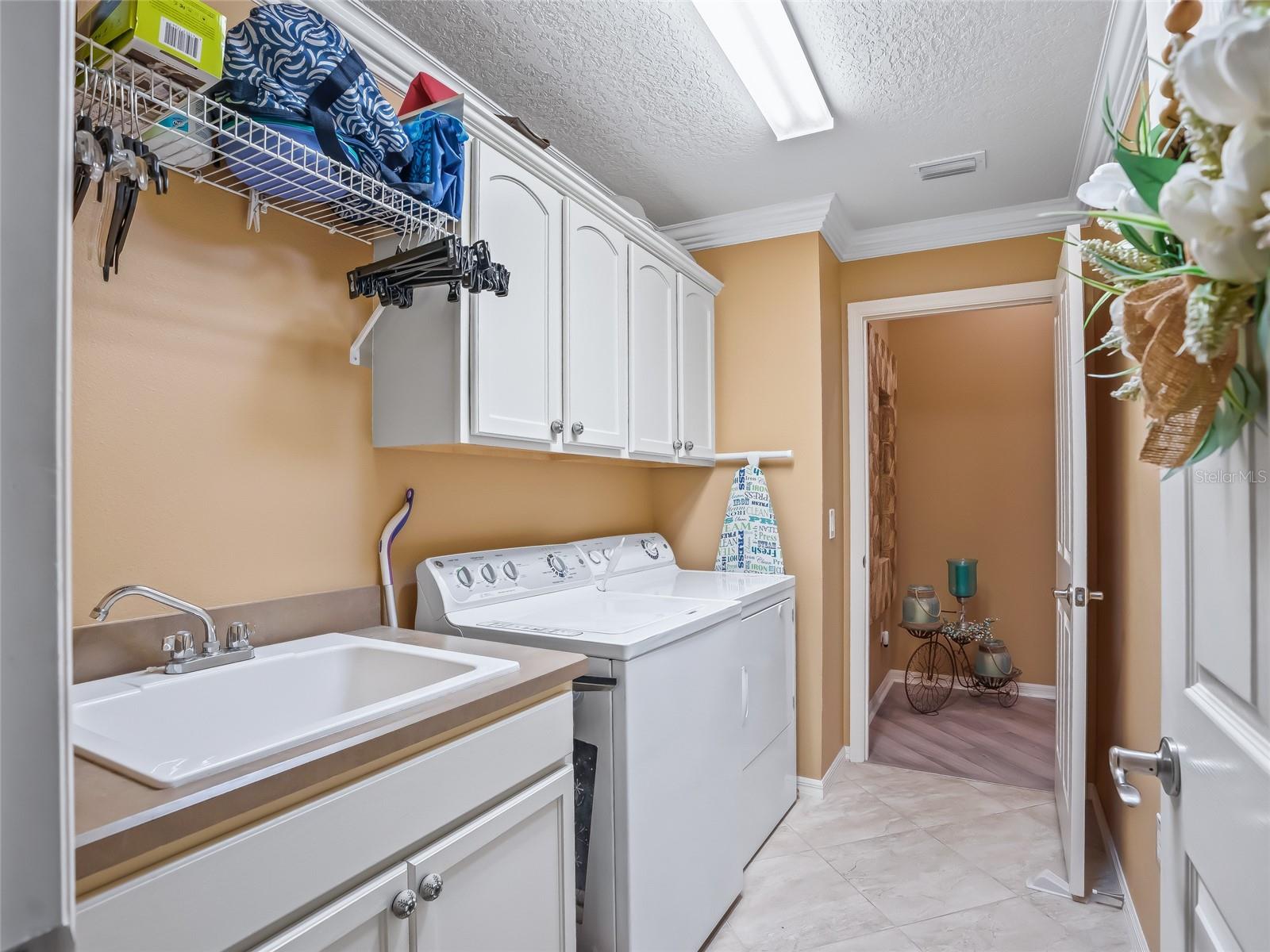 A steal of a price for this high end high quality home inside and out! This Begona model is rich with charm and character. Plantation Shutters throughout, pocket doors, Split bedroom arrangement, 3rd bedroom used as a TV viewing area, 2nd bedroom is the perfect guest suite. In the Kitchen, Roll out shelving in lower kitchen cabinets and the wall pantry makes a happy cook for sure, wrap around breakfast bar has new Quartz countertops, breakfast nook with bakers rack with customized table and chairs are optional to stay. The ensuite primary bath has separate dual sinks and matching his and hers walk in closets with organizers and pocket doors. Both the primary bath and the guest bath have new sinks, faucets and countertops and ceramic tile flooring in 2025. The walk in Roman shower has shower benches and new shower head. The private water closet has a frosted window for natural light. The volume ceiling in the primary bedroom is complimented by a new lighted ceiling fan and custom laminate flooring. The laundry room is located off the kitchen and has a utility sink, washer & dryer stay, flooring is ceramic tiled. Expanded 2 car garage with solid door and 2ndary electric overhead screen door is great for seasonal weather changes, (2017 Quietech Yahama golf cart can be purchased separately with details at the home). This home has Twilight outdoor lighting enhancement for evening beauty and the meticulously groomed professional landscape package sets this stylish home apart from others. There's a Roof fan and some area of the attic is floored, Garage shelving stays. Optional interior furniture package will be considered- separately. Ceramic tile flooring, privacy screens and sliding windows were added upgrades in the Lanai. A stylish frosted overlay on the end windows adds to the peace and privacy of this 'any occassion' Lanai. New Bosch dishwasher, stove and refrigerator are all part of the updates here. Garbage disposal new in 2025, plus replaced sink and new circulating pump for kitchen hot water. Some Interior lights and fixtures have been updated too. Entry door has new leaded glass with leaded side window. Quartz countertops are new throughout the home in 2025. The exteror of this home has been freshened and the driveway was freshly painted and sealed. There are 3 solar tubes not to be missed!! The finishing touch is the crown molding throughout this home. The mature landscape and new irrigation control system were installed in 2023. New 40 gal electric Rheem hot water heater installed in 2024, New liftmaster garage door openers in 2024, New thermostat in 2024, New exterior LED recessed lights in eaves. Low bond balance. Enjoy nearby golf at Bonifay Golf and Country Club or Volusia Executive golf course or choose from 4 other nearby courses. Medical and shopping are a 5 minute drive away. Another great asset is the short drive to Sumter Landing Square or enjoy all of the eateries at Brownwood Square. Location Location Location in the Villages of Sanibel!
