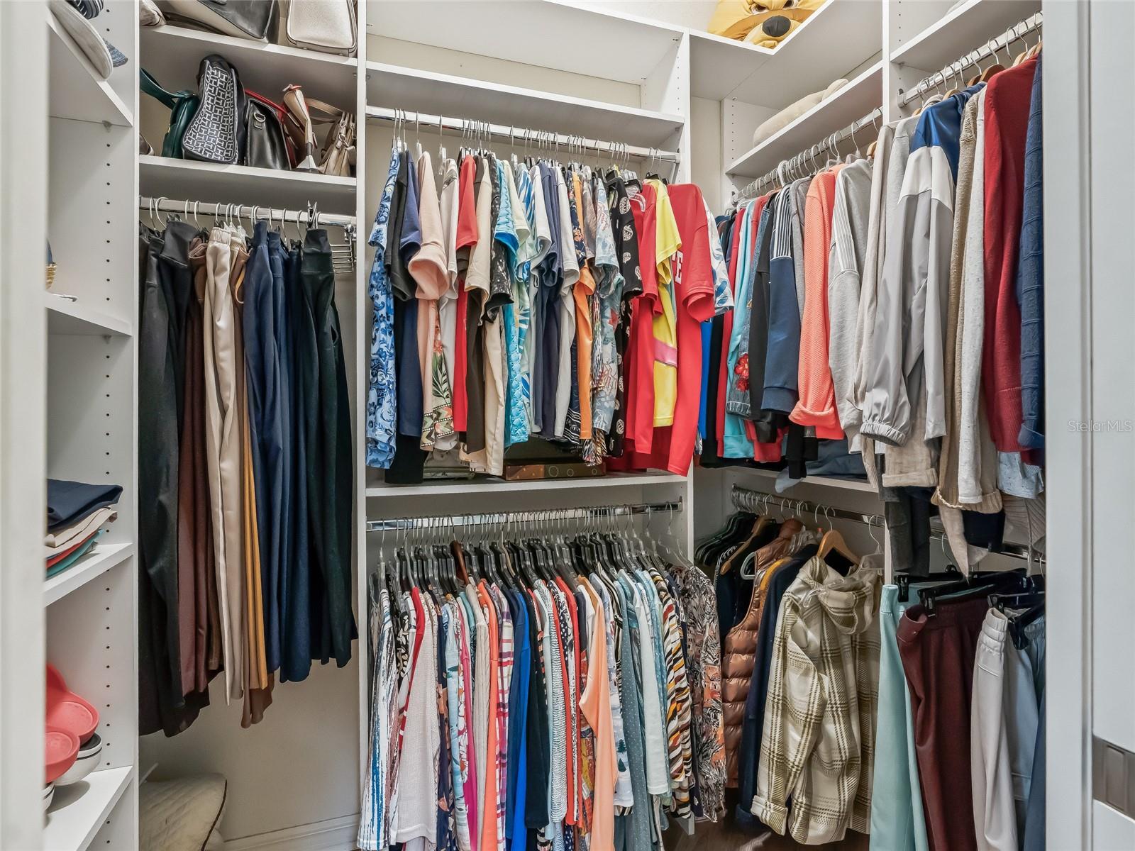 Ceiling Fans(s), Crown Molding, Eat-in Kitchen, High Ceilings, Open Floorplan, Primary Bedroom Main Floor, Solid Surface Counters, Solid Wood Cabinets, Split Bedroom, Thermostat, Walk-In Closet(s), Window Treatments