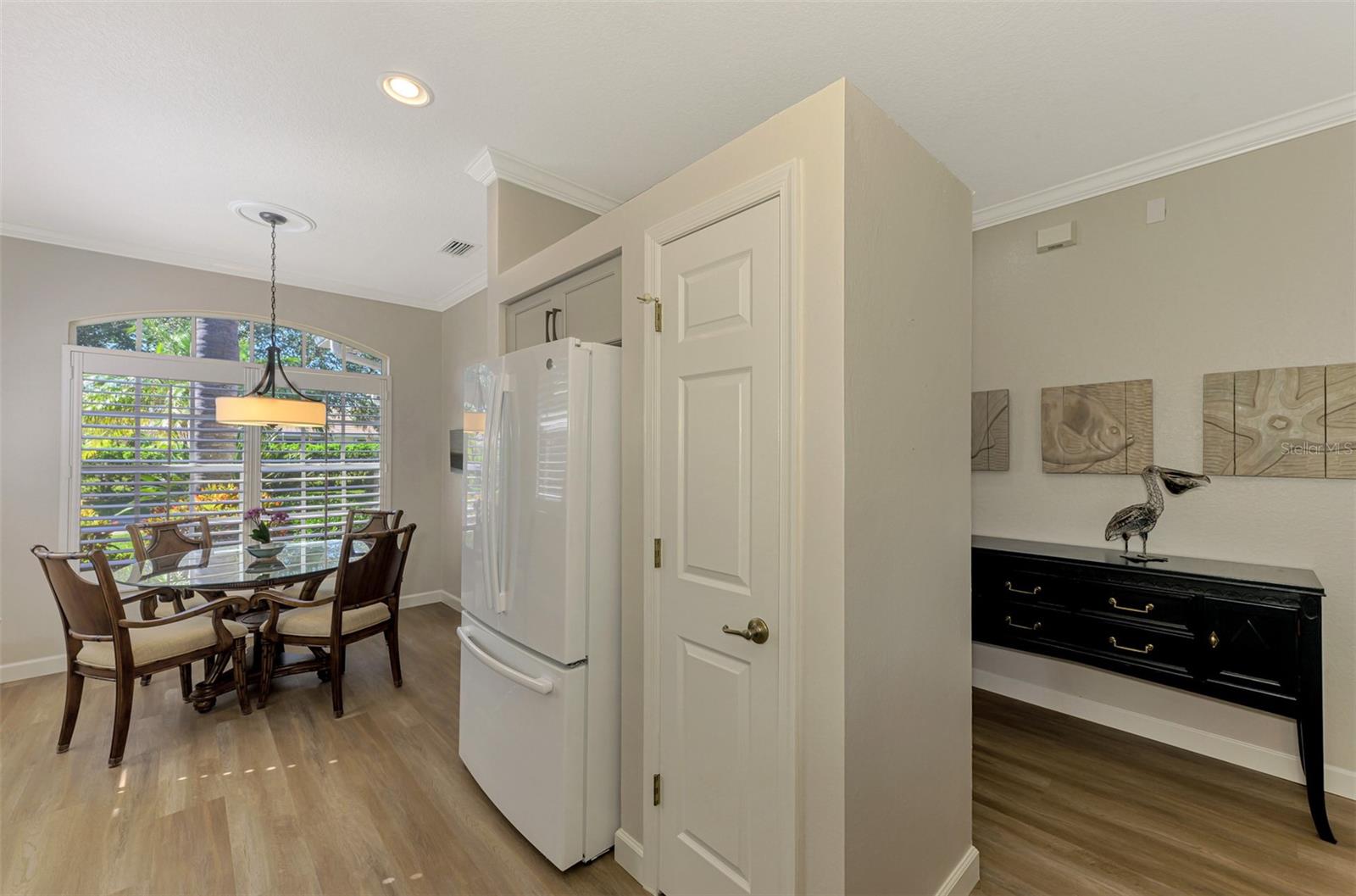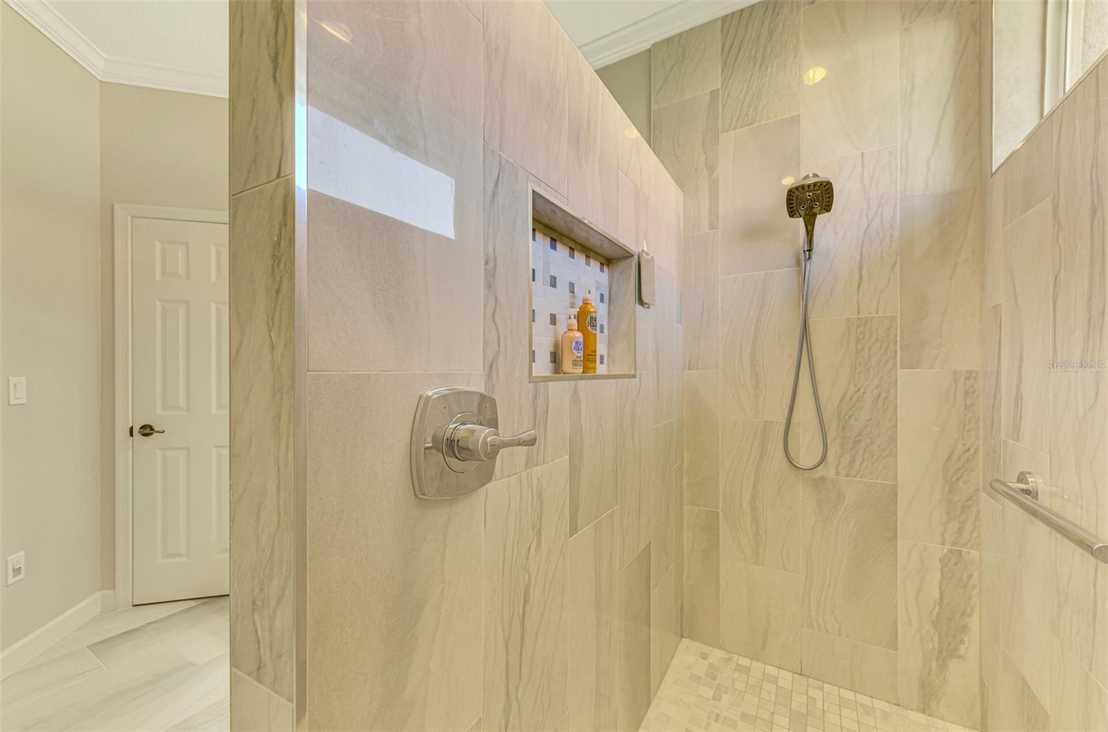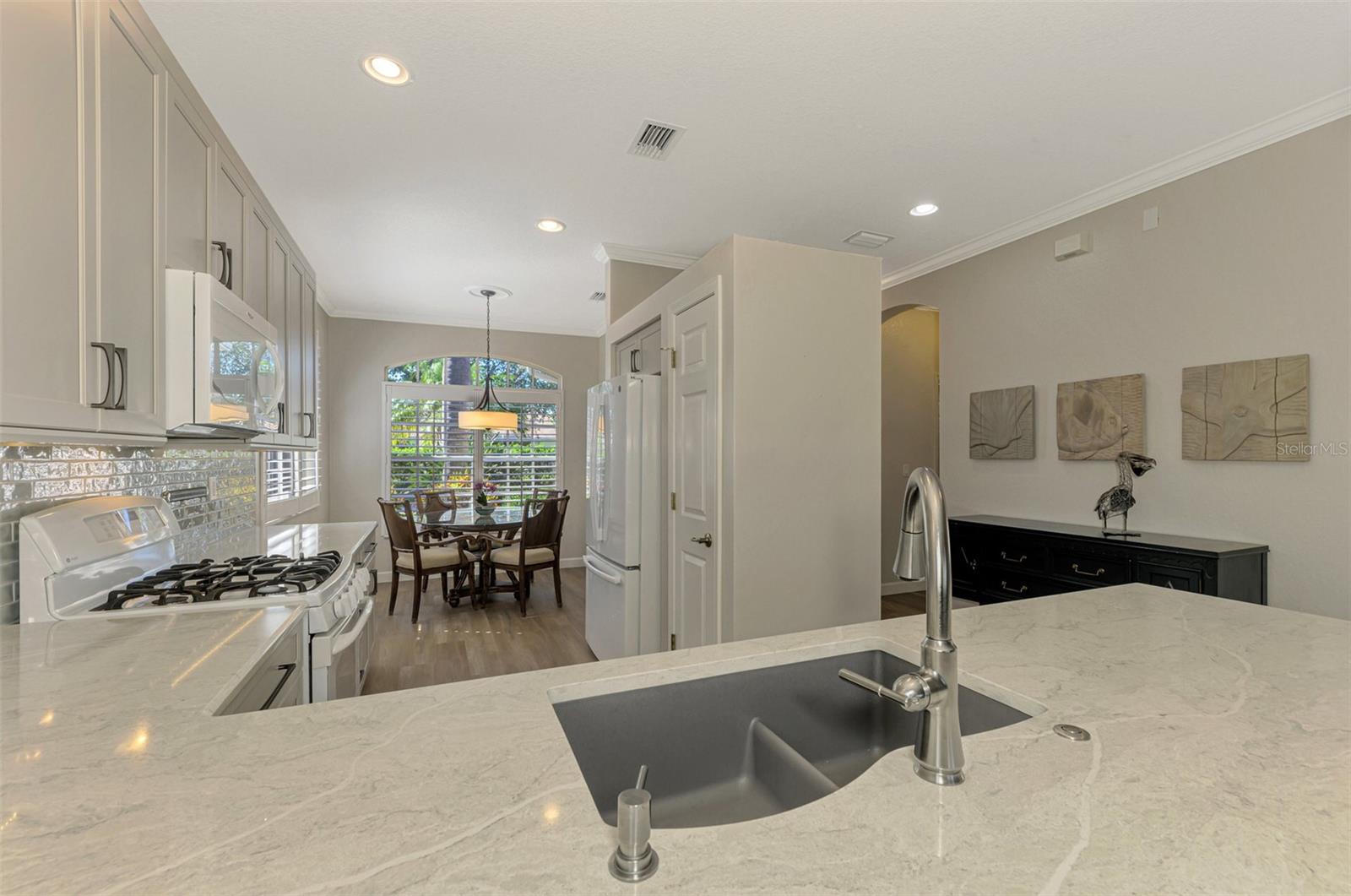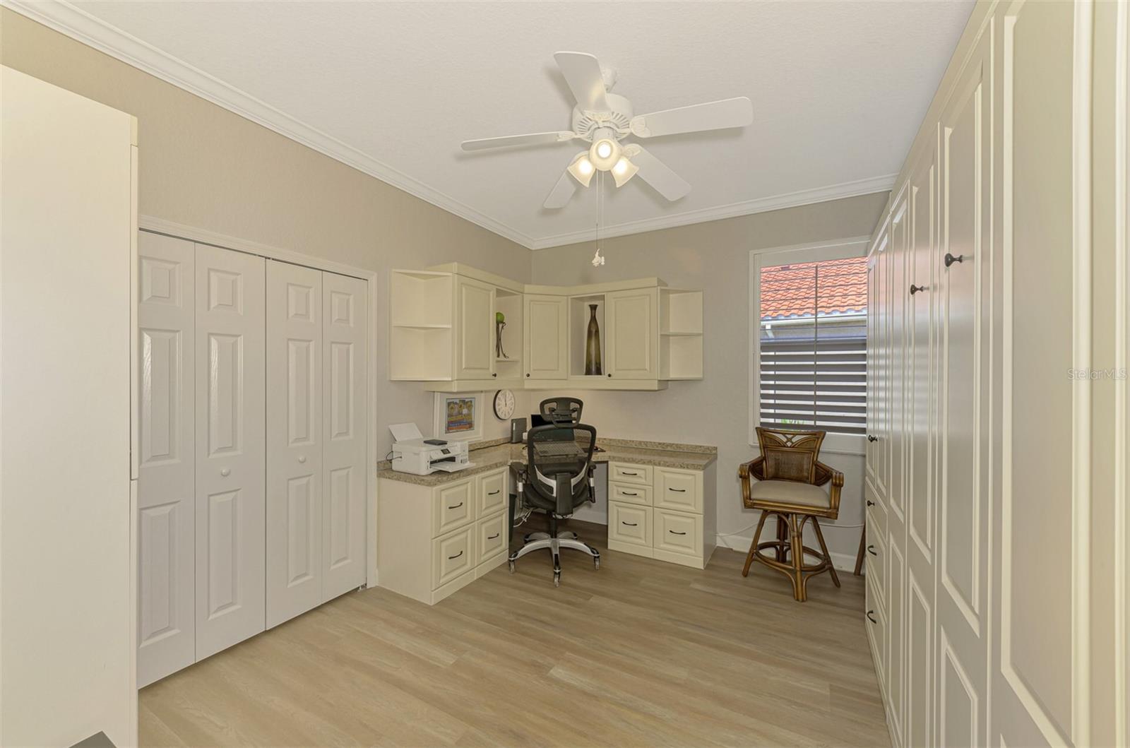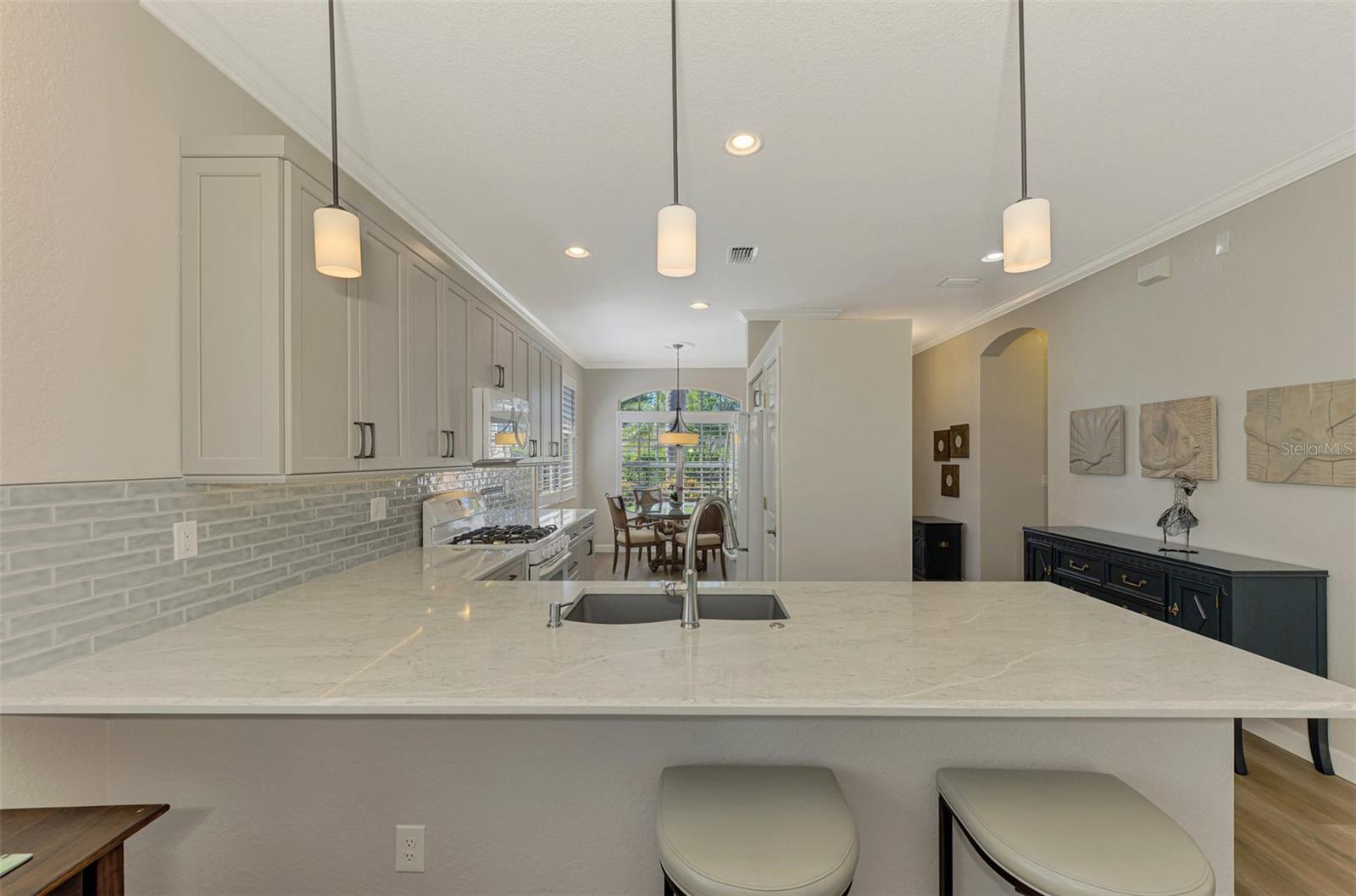 This FULLY REMODELED home with today’s MODERN TRENDS is a SHOWSTOPPER- From the home’s inviting curb appeal and well-maintained landscaping to its expansive outdoor lanai, this 3 Bedroom 2 Bathroom home is ready for you to move right in! The expansive lanai for relaxation and entertaining features a heated oversized spa with decorative tile accents and a planter, all conveniently controlled with electronic settings. Surrounded by Florida’s natural beauty, the home offers serene water views that provide a peaceful and private retreat. Inside, the updated interior strikes the perfect balance between modern style and everyday comfort. Highlights include quality cabinetry, sleek quartz countertops and replaced appliances, complemented by upgraded luxury vinyl floors, a stylish tiled backsplash and a custom-built entertainment center. Plantation shutters, crown molding and other charming details add character throughout. The primary bedroom features a renovated bathroom with an expansive Roman walk-in shower and two closets for extra storage. The third bedroom offers versatility with a built-in desk and a Murphy bed, making it ideal for a home office or guest space. Adding even more value, this home includes a 2023 NEW METAL ROOF for peace of mind. Nestled in the resort-style, gated community of Riverwood, this home is perfectly situated to enjoy all the amenities and activities the neighborhood provides. Residents love the tree-lined walking and biking paths, tennis and pickleball courts, a lap and resort-style pool with a hot tub, fitness center, and a variety of social activities and classes at the Activity Center. Golf enthusiasts can take advantage of the Riverwood Golf Club’s Par 72 Championship course, while pet owners will appreciate the R.O.M.P. Dog Park. Members can also enjoy access to the exclusive Beach Club on Manasota Key (membership based on availability). Conveniently located between Sarasota and Fort Myers on Florida’s stunning West Coast, Riverwood provides easy access to boating, cultural events, dining, shopping, and the gorgeous beaches of Southwest Florida. This home is the ideal blend of relaxed living and stylish upgrades. Don’t wait—contact your agent today to view all that this well-appointed Riverwood Home and Community provides.
