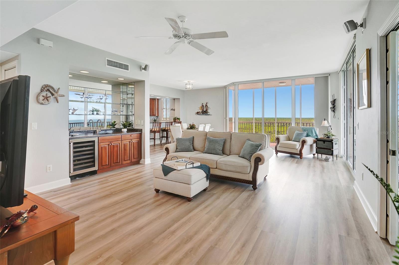 Beautifully revitalized and newly staged, this 6th-floor corner residence at Vista del Sol is offered fully furnished and ready for its next owner. Rarely available, this light-filled corner unit features walls of windows that maximize privacy, natural light, and spectacular views. The versatile den has been thoughtfully transformed into a true 3rd bedroom, making this condo as functional as it is stunning. Step outside to the expansive wrap-around lanai or enjoy a quiet retreat on the private balcony off the primary suite—both perfect vantage points for soaking in panoramic harbor views and breathtaking nightly sunsets. Inside, the open-concept design is elevated by quartz countertops, modern luxury vinyl plank flooring, and timeless plantation shutters, blending style with comfort. A coveted under-building parking space offers convenience and peace of mind, while secure elevator access and maintenance-free living let you spend more time enjoying the Florida lifestyle. Set within **Burnt Store Marina—the largest deep-water marina on Florida’s Gulf Coast—**this residence offers access to a world-class boating and yachting haven. Beyond the water, the community delivers the ultimate resort experience with a 27-hole championship golf course, pickleball and tennis courts, a state-of-the-art fitness center, walking and biking paths, on-site dining, and an active social calendar. Watch dolphins and manatees play in the harbor, take your boat directly into Charlotte Harbor and the Gulf of Mexico, or simply relax poolside with neighbors in this vibrant, gated community. Whether you’re seeking a seasonal retreat, an investment opportunity, or a year-round residence, this furnished condo checks every box. Don’t miss this rare chance to own one of Vista del Sol’s premier residences—schedule your private showing today and discover why this home is truly one of a kind.