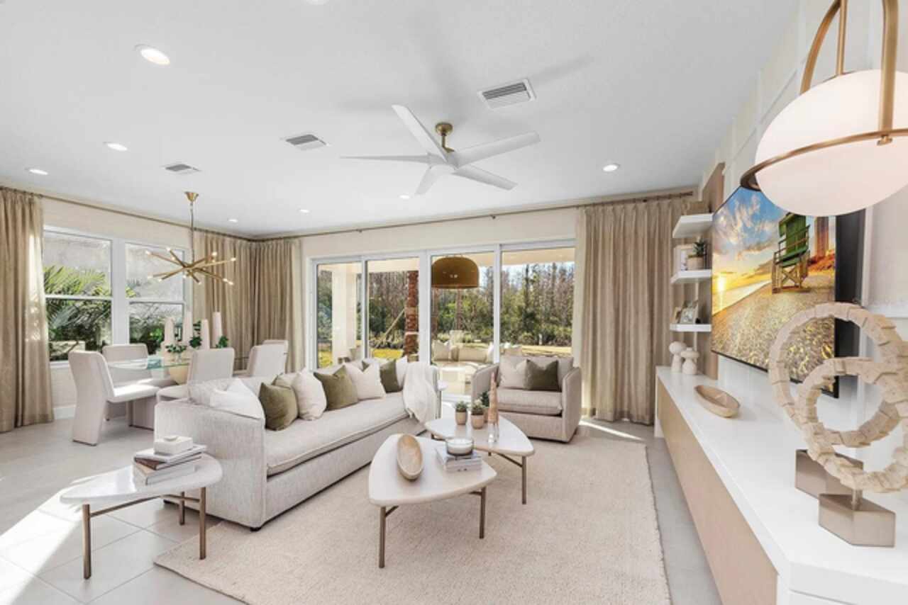 Under Construction. **Home Under Construction. A recent builder incentive of $15K has been applied to the list price. **Experience the art of right-sized living in the Jasmine model at Valencia Ridge. Valencia Ridge is a 55+ age-restricted and community designed exclusively for active adult living. Life at Valencia Ridge means vibrant social events, resort-style relaxation, and opportunities to connect with like-minded neighbors. The lifestyle is thoughtfully designed for active adults seeking wellness, recreation, and fun at every stage of the day — from sunrise pickleball to evening socials. The Jasmine is a thoughtfully designed 3-bedroom, 2-bath + den home offering over 1900 square feet of stylish living space with a 2’ extended garage and a curated collection of high-end upgrades throughout. Designed for ease, elegance, and effortless entertaining, this move-in-ready home is perfect for those who want luxury without excess. From the moment you step through the ¾ glass front door with matching sidelite, you’re welcomed by an open layout with designer-selected finishes and an abundance of natural light. This is a natural gas community, offering energy-efficient appliances and high-performance living.Your gourmet kitchen is a showstopper, boasting full overlay cabinetry, quartz countertops, a full quartz backsplash, and a GE Profile stainless appliances, including a gas range, chimney hood, built-in microwave, and French door refrigerator. The built-in pantry cabinet, under-cabinet lighting, and pendant fixtures add both beauty and function. The main living spaces and den are finished in tile, complemented by upgraded recessed lighting, ceiling fans, and HDMI TV packages pre-wired in the great room, den, and primary suite. Shoji White paint creates a warm, sophisticated backdrop, while 2” faux wood blinds add privacy and polish throughout. The primary suite is a serene retreat with upgraded lush-carpet. Primary suite bathroom includes dual vanities topped with quartz, a walk-in shower with brushed nickel framed glass enclosure, and stylish cabinetry with satin nickel hardware. Secondary bathrooms mirror the upscale feel with quartz counters, upgraded wall tile with waterfall offset patterns, and matching cabinetry and hardware. Additional upgrades include a pre-plumb for future summer kitchen, laundry sink pre-plumb, keyless garage entry, garage extension, and concrete footers for a future screened enclosure — offering both flexibility and long-term livability. The home also features a variable speed HVAC system with Wi-Fi-enabled humidity control for energy-efficient comfort. And just outside your door, your lifestyle expands at Valencia Ridge’s world-class clubhouse. The clubhouse and community amenities are currently under construction, with completion expected soon — offering residents an exciting new social hub right around the corner. Once complete it will include multiple resort-style pools, tennis and pickleball courts, a fitness center, restaurant and bar, lively sports lounge, and grand event space. Whether you’re enjoying a quiet morning at home or joining in the community’s vibrant social life, the Jasmine delivers elevated living without compromise in a 55 + and CDD community.