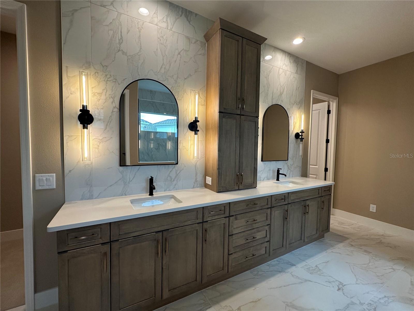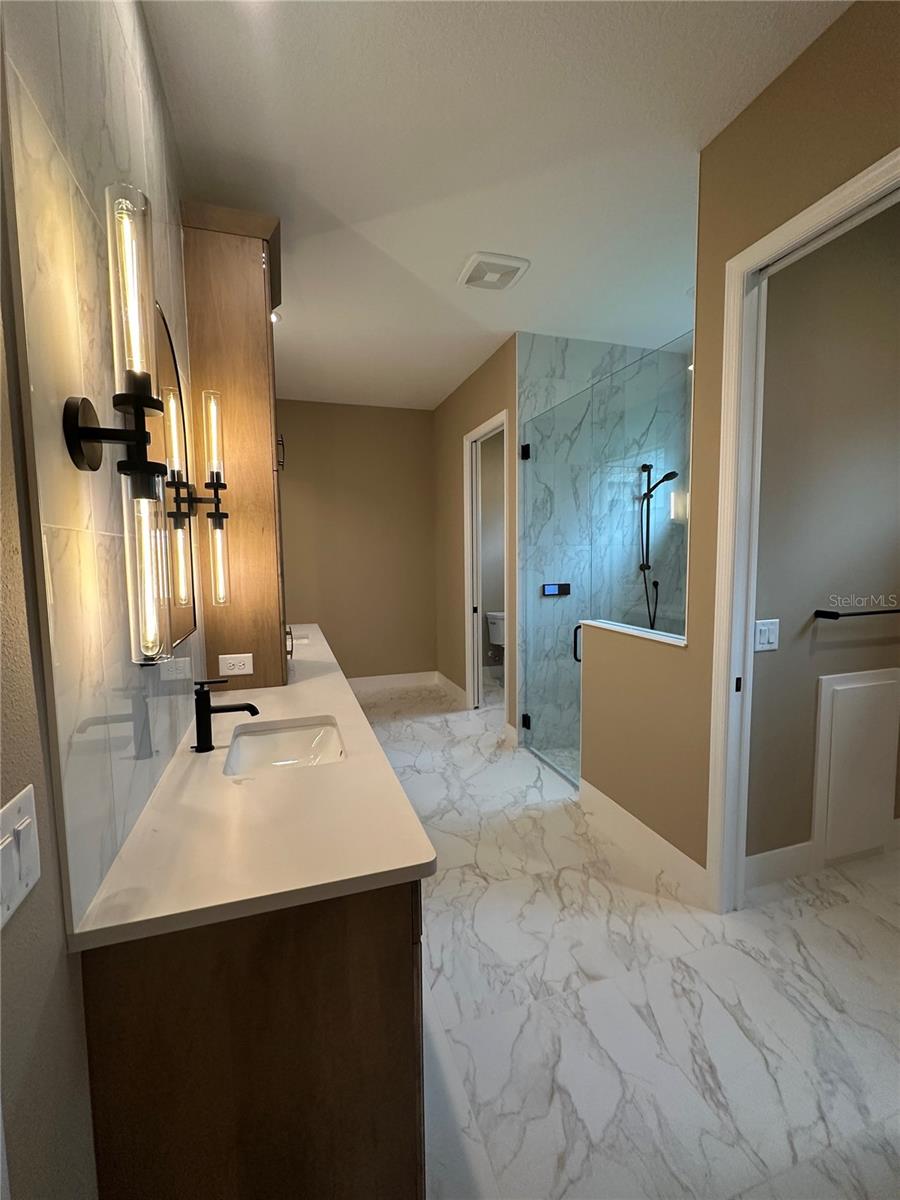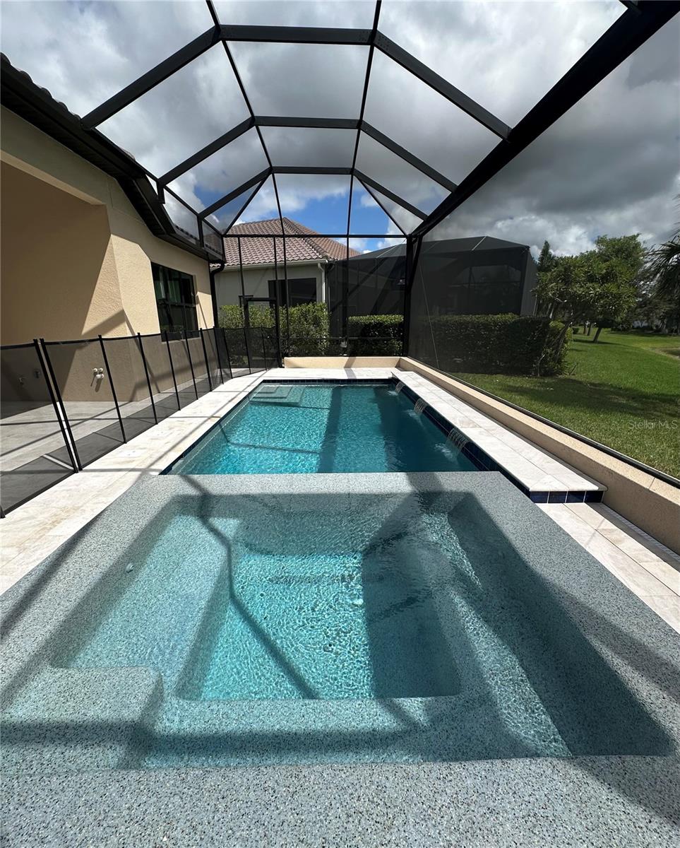 OUR LOSS IS YOUR GAIN! One of a kind layout with new price for newly added cabinets to pantry, and primary closets making this MOVE IN READY! Situated on oversized lot overlooking the pond and NO view of power lines, clubhouse is just a short walk away! This beautiful 3-bedroom, 4 bath, plus den/office home with over 2, 700 sq.ft of luxurious living space! The Great Room has spectacular views of the pond, custom pool with negative edge spa and upgraded Italian-style pavers, picture-view screen to allow for unobstructed views. The gourmet kitchen features designer touches of arched doorways, stacked-custom cabinets 54”, GE Monogram appliances, with gas range and feature wall of Quartz backsplash to add a dramatic touch! The large center island with waterfall Quartz on both ends! Walk-in pantry, wet bar, and beverage refrigerator complete this space. The primary bedroom is uniquely designed for couples wanting their own space! Each has their own walk-in closet, toilet room, vanity is split with storage tower in between sinks (extra electrical inside cabinet), walk-in shower features spa-like shower with 2 heads and custom electronic temperature regulating feature. Two additional bedrooms with en-suite bathrooms, offering extra comfort and privacy for family or guests. A custom “drop-zone” is located just off the garage in the upgraded Laundry Room. This room features beautiful tile floors, blue custom cabinets and accent tile backsplash. Wood floors, crown molding, accent ceilings painted and window coverings. A 3-car garage gives you that extra storage space everyone needs.