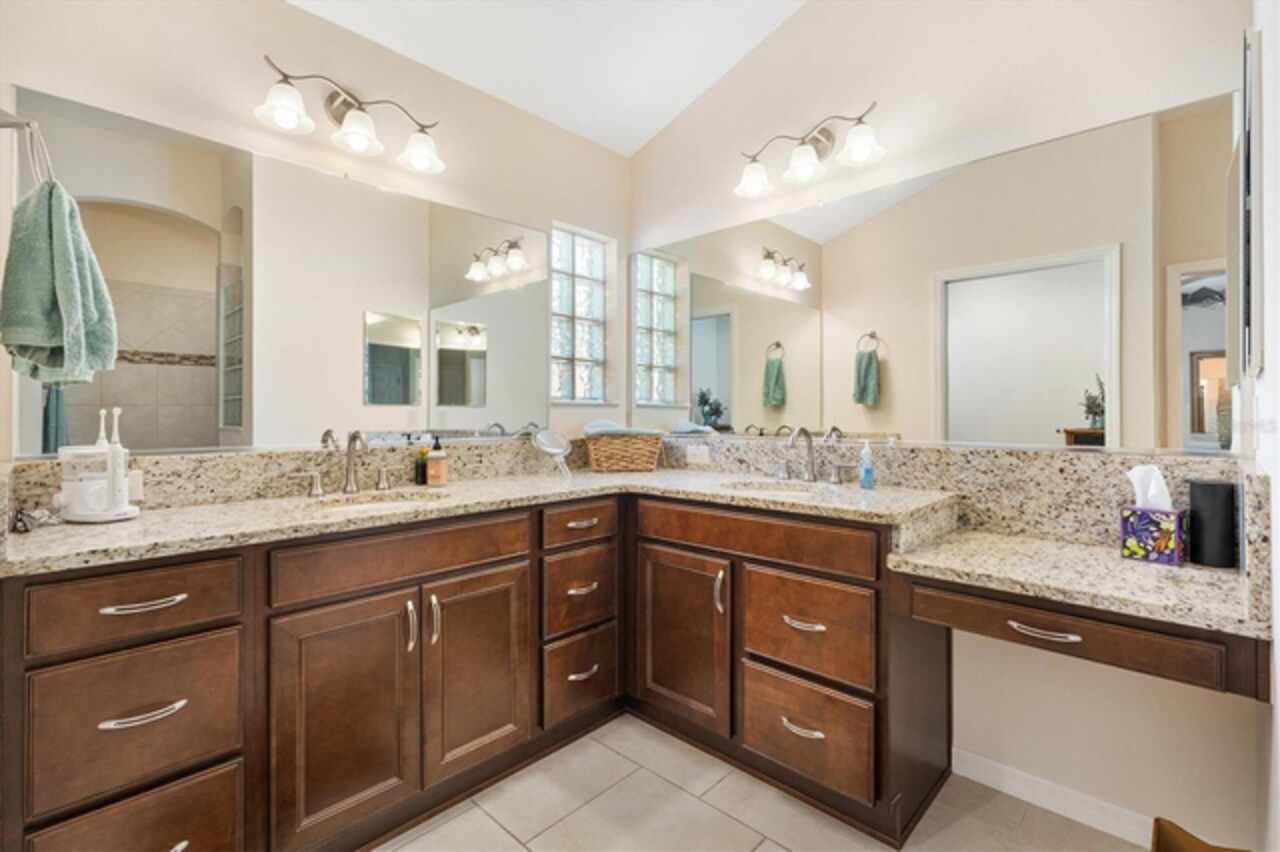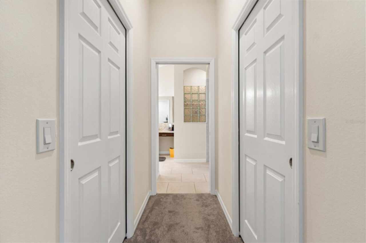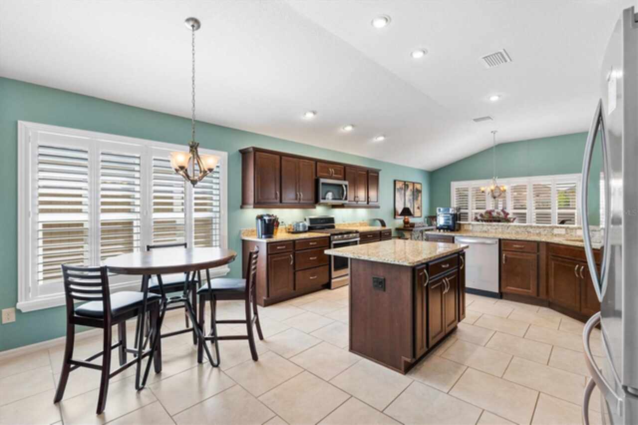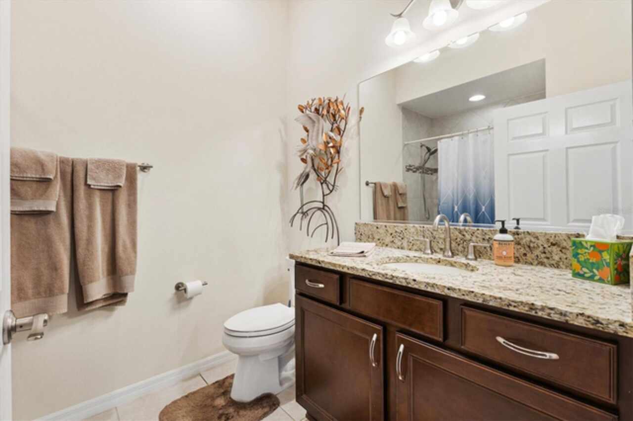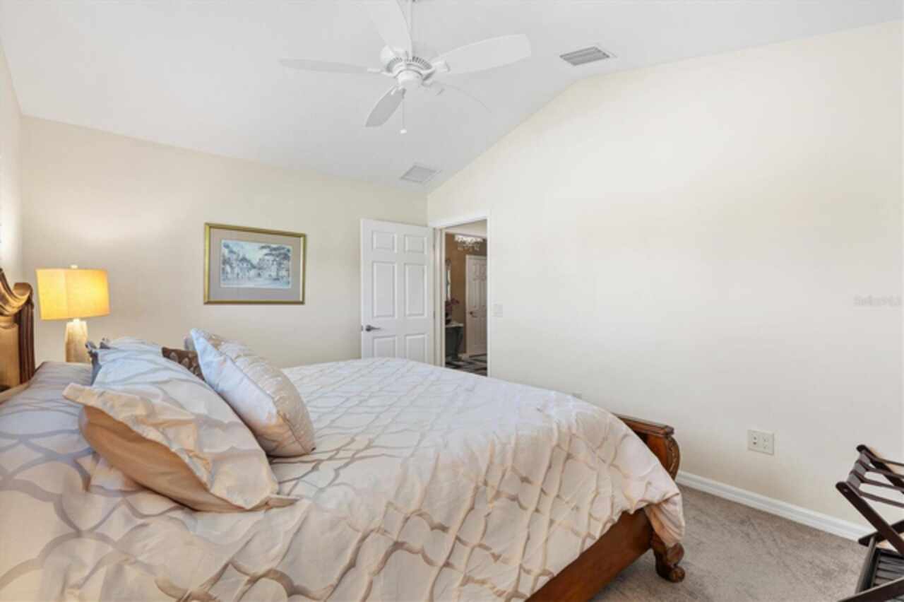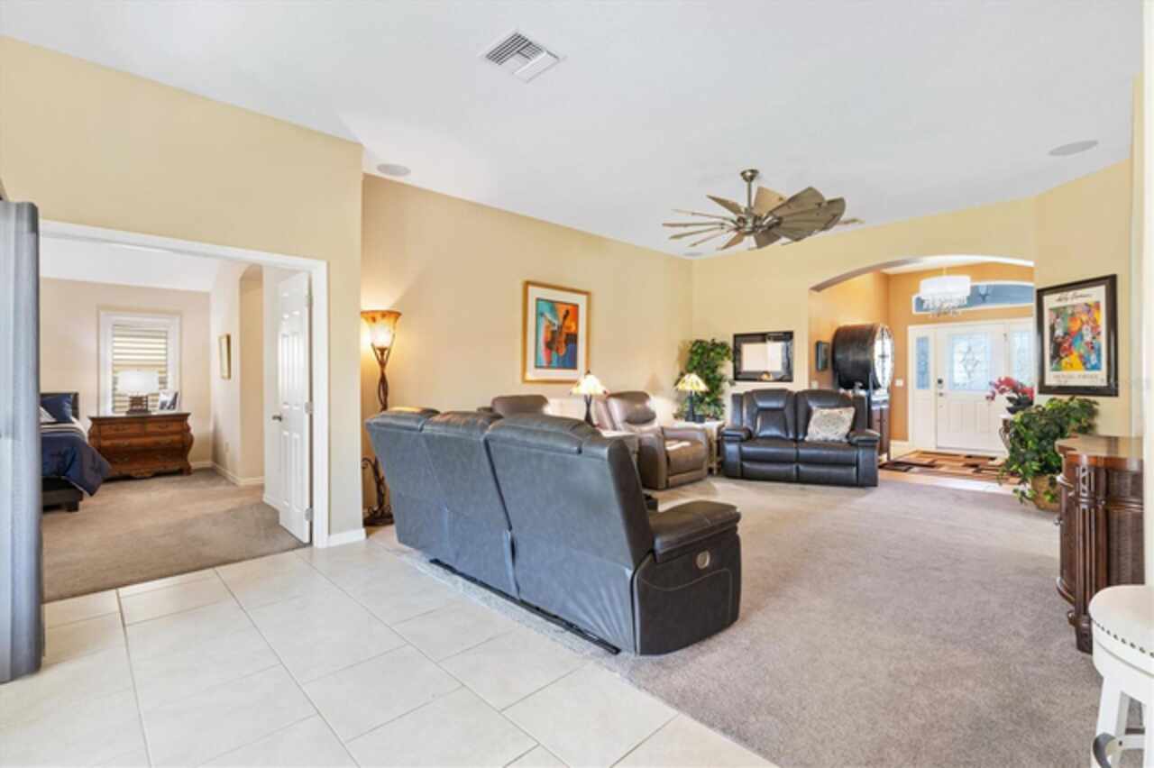 Veranda with Privacy Courtyard • Upgraded 3-Bedroom Holly Model • Move-In Ready. Don't miss this beautifully upgraded Holly Veranda located in the desirable Village of Fenney in The Villages, Florida. Designed for privacy and comfort, this 3-Bedroom, 2-Bathroom Veranda home features a courtyard wall that creates a private outdoor retreat, perfect for relaxing or entertaining. Step inside to discover a spacious and thoughtfully designed floor plan with elegant upgrades throughout. The large kitchen is ideal for everyday living and hosting gatherings, showcasing a curved peninsula, center work island, built-in desk, granite countertops, and pull-out shelving for practical convenience. The dining room is separate from the living area, creating defined yet connected spaces for entertaining and relaxation. The Primary Suite offers two walk-in closets with custom built-ins and a luxurious ensuite bath featuring a Roman shower, split dual vanities, and a separate water closet. The guest suite is located on the opposite side of the home for privacy, with the second and third bedrooms thoughtfully separated by the guest bath. The third bedroom features a tray ceiling and walk-in closet, making it a versatile space for guests or an office. Enjoy outdoor living at its best. Just beyond the screened lanai, you’ll find two patios, including one with a custom hardscape fire pit—perfect for quiet evenings or entertaining under the stars. The private courtyard wall adds a sense of seclusion rarely found in veranda homes, while still allowing open-air enjoyment of the Florida lifestyle. The laundry room is generously sized, with a cabinet-enclosed utility sink, folding station, and upper cabinetry for extra storage. The air-conditioned garage ensures comfort and practicality year-round. Other highlights include neutral color palette, high ceilings, gas utilities, gutters, and added insulation for energy efficiency. This home is move-in ready, meticulously maintained, and loaded with thoughtful upgrades that elevate both style and function. Perfectly situated in one of the most picturesque and natural settings in The Villages, the home is conveniently located near some of Fenney’s best amenities: Blue Heron Postal & Recreation Center (0.6 mi), Fenney Grill (0.6 mi), Spanish Moss Sports Pool & Recreation Center (0.8 mi), and Red Fox & Gray Fox Executive Golf Courses (1.2 mi).This upgraded Holly Veranda delivers the rare combination of privacy, convenience, and elegant design, all within easy reach of dining, recreation, and golf. Discover why the Village of Fenney is one of The Villages’ most sought-after neighborhoods, where nature, lifestyle, and comfort blend perfectly.