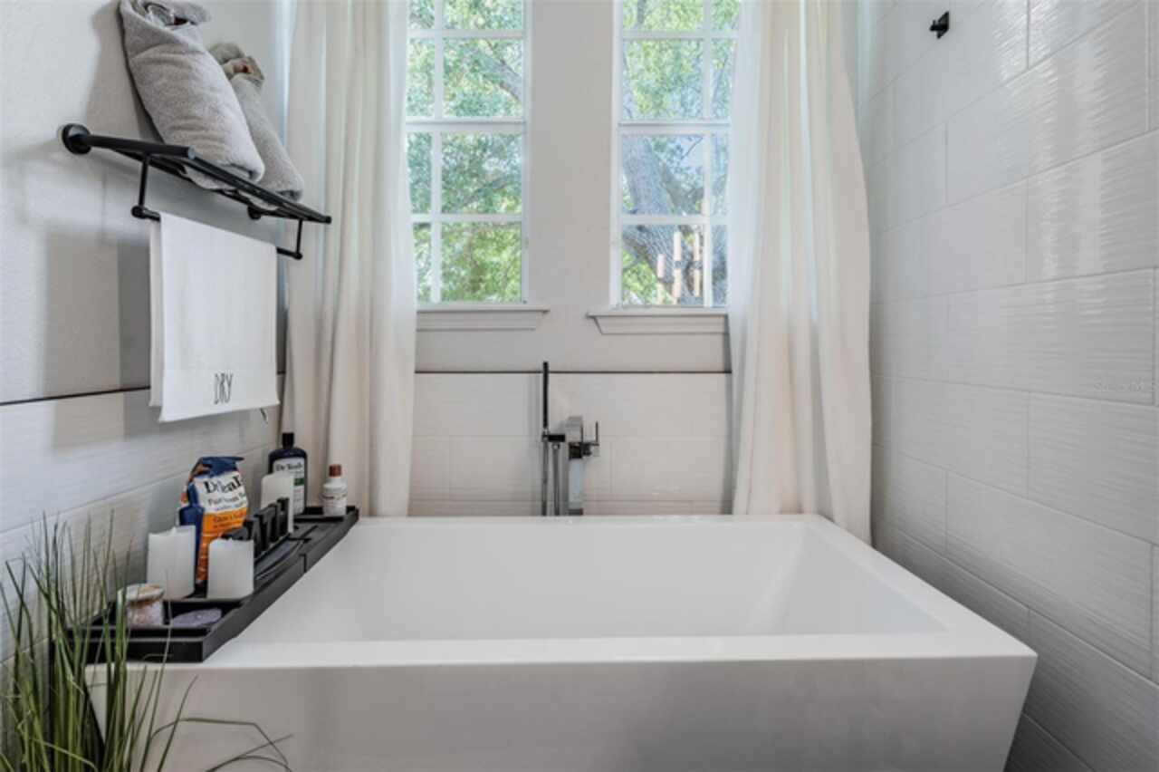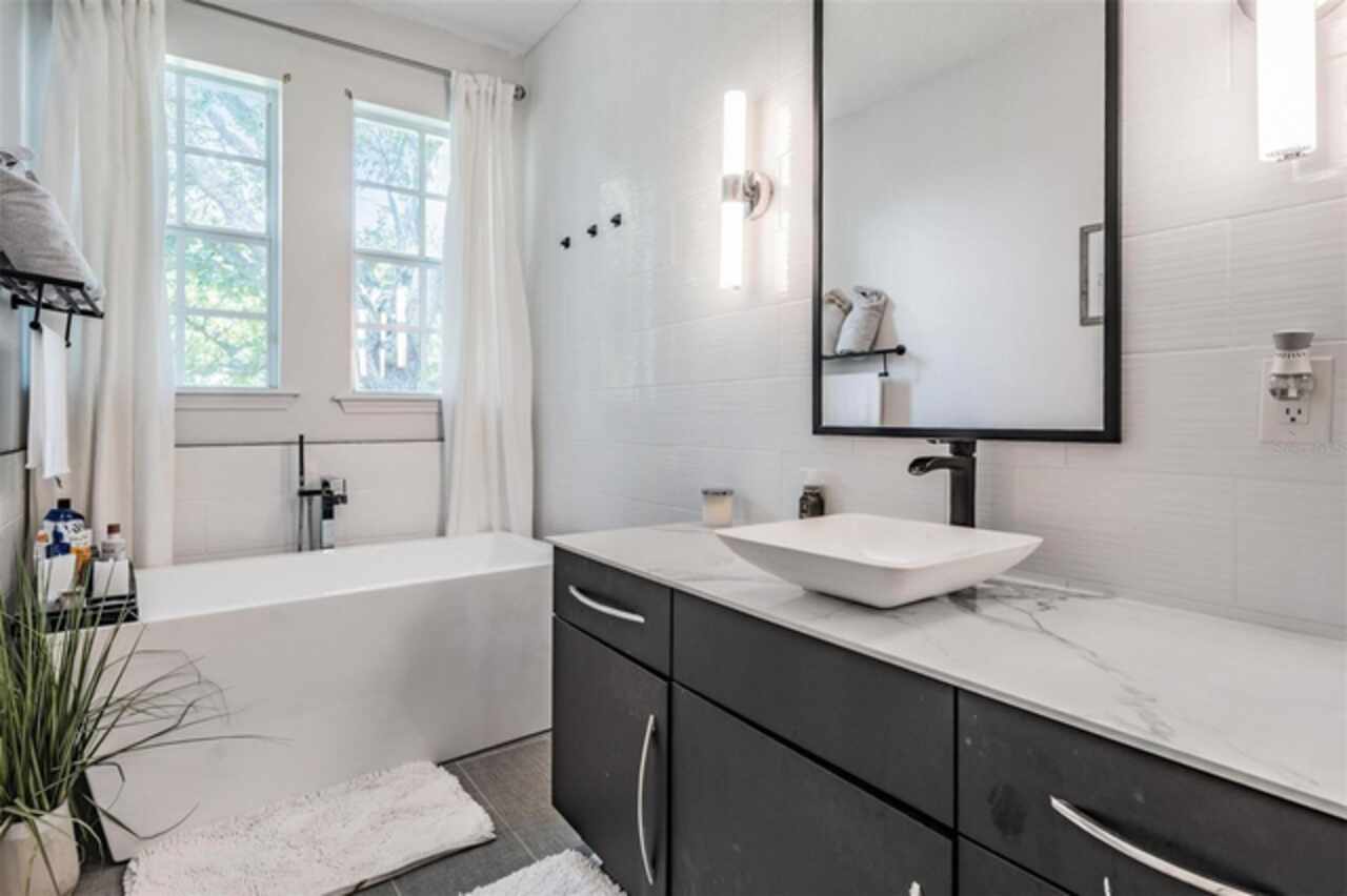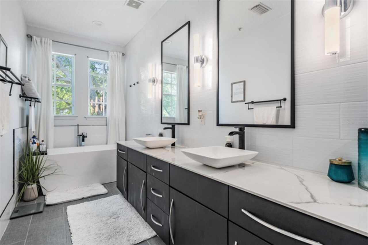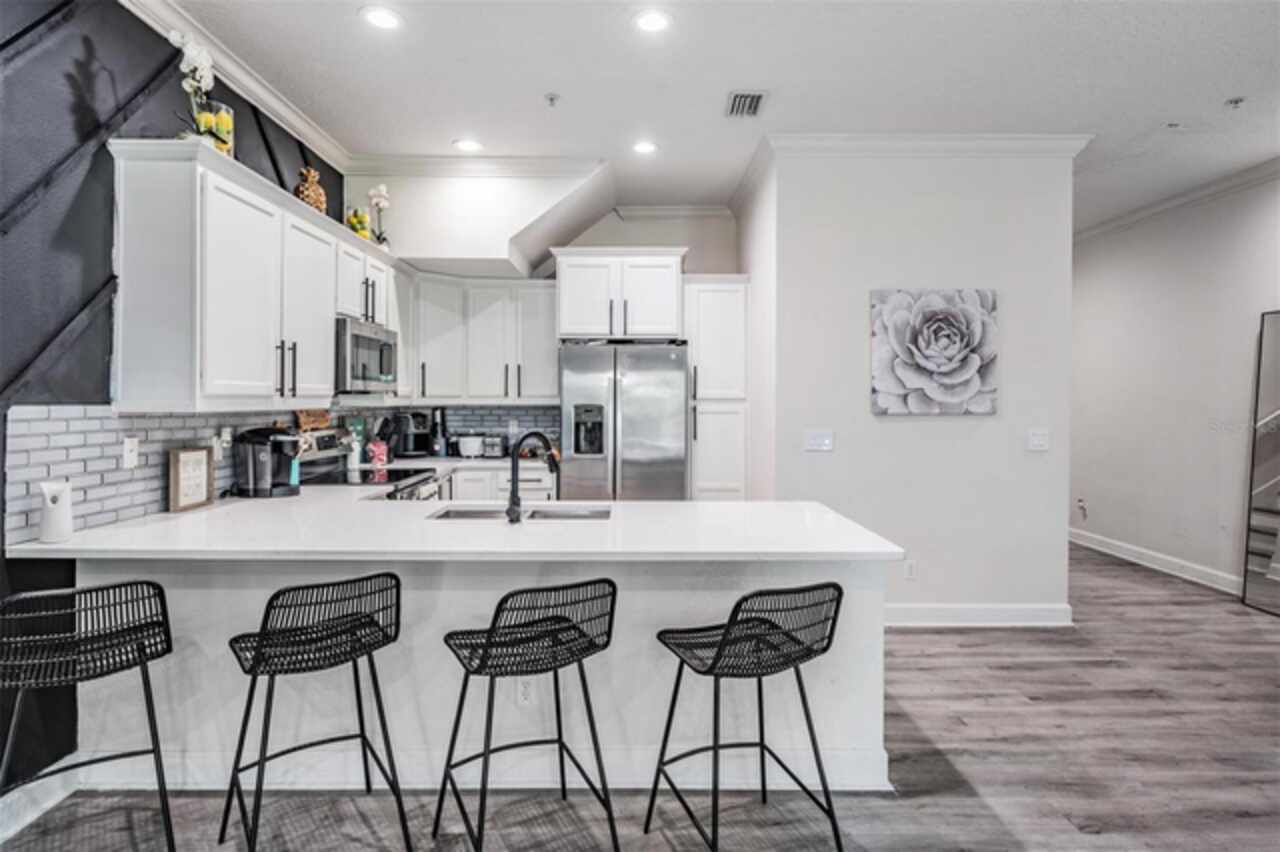 A Rare Find: Designer-Inspired Townhome in the Heart of South Tampa. This isn’t just a townhome — it’s a statement. Thoughtfully redesigned with a custom, modern aesthetic, this two-story residence blends the comfort of a single-family home with the ease of low-maintenance living. Every inch of this home reflects intentional style and function. From the soaring 12-foot ceilings to the custom accent walls, upgraded luxury vinyl flooring, and crown molding, this home stands out for all the right reasons. The open-concept main floor features a sleek kitchen with stylish cabinetry, tile backsplash, quartz counters and stainless steel appliances, flowing into a spacious living area perfect for entertaining. Upstairs, the layout is smart and private: two secondary bedrooms share access to a beautifully updated bath, while the expansive primary suite offers walk-in closets and a tastefully updated spa-style bath with double vanities, new tile, smart mirrors, and a separate freestanding soaking tub and shower.This home is just blocks from the vibrant SoHo district and Hyde Park Village, placing you within walking distance of some of Tampa’s best dining, shopping, and nightlife. With a low monthly HOA that covers water, sewer, trash, exterior maintenance, pest control, and landscaping, this home offers style and simplicity in one package. Zoned for Plant High School and minutes from everything South Tampa has to offer. Modern. Bold. Turn-key. This is the townhome you've been waiting for.