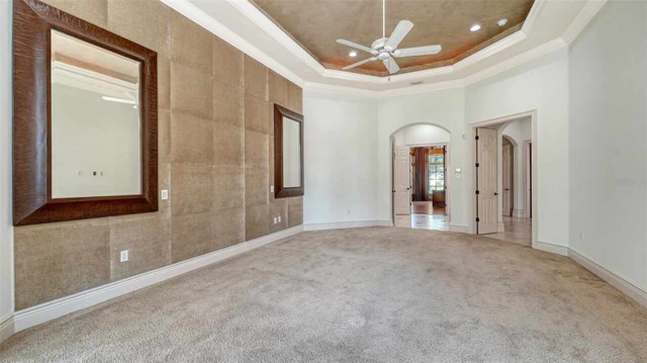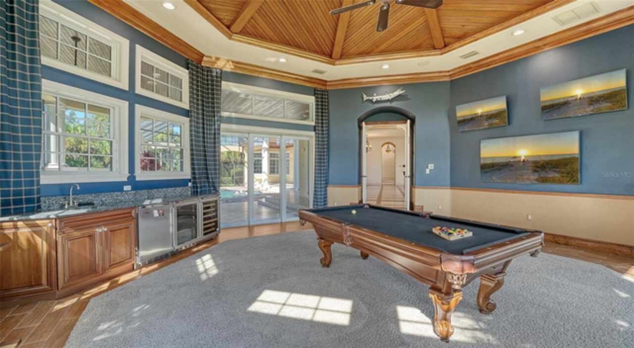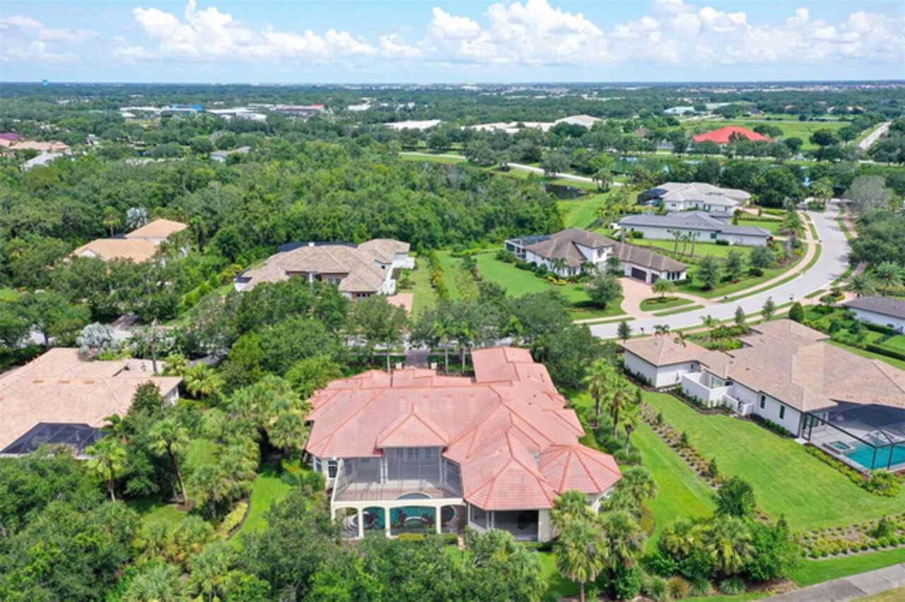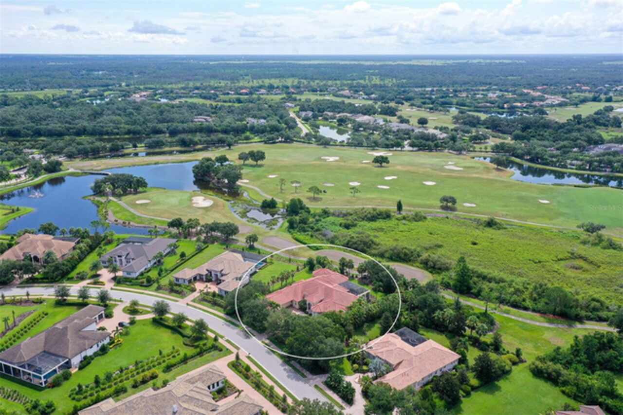 Welcome to The Founders Club, Sarasota’s premier gated golf community, where timeless design meets modern luxury. This stunning John Cannon–built estate, situated on nearly an acre, offers over 6, 500 square feet of living space all on one floor with 4 bedrooms, 4.5 bathrooms, and a thoughtful single-level layout designed for both entertaining and everyday living. From the moment you arrive, the home’s circular drive, lush landscaping, and elegant architectural details set the stage for what lies inside. Step through grand double doors and into open, light-filled living spaces where soaring ceilings, crown molding, and refined finishes create a warm and inviting atmosphere. The heart of the home is the chef’s kitchen, featuring solid wood cabinetry, granite counters, built-in shelving, and a spacious open layout that flows seamlessly into the family room and casual dining area. A separate formal dining space and living room provide options for intimate gatherings or larger celebrations. The private primary suite is a true retreat with dual walk-in closets, a spa-like bath boasting a whirlpool tub, multiple shower heads, and stone counters. Three additional bedrooms each feature en suite baths, offering privacy and comfort for family and guests. A dedicated office, media room, and bonus/game room with wet bar provide flexible space for work, play, or relaxation. Outdoor living is equally impressive. Step out to a covered lanai with an outdoor kitchen and grilling area, overlooking a sparkling pool and spa. Surrounded by a private courtyard, this backyard oasis is perfect for year-round enjoyment. Additional highlights include a 4-car side-entry garage, gas fireplace, French doors, and energy-efficient features with FGBC Green Certification and new interior paint work. Residents of The Founders Club enjoy a private, guard-gated lifestyle with optional golf and country club membership, just minutes from downtown Sarasota, world-class beaches, and A-rated schools. This estate is a rare opportunity to experience luxury living in one of Sarasota’s most exclusive communities.