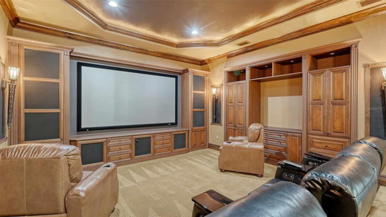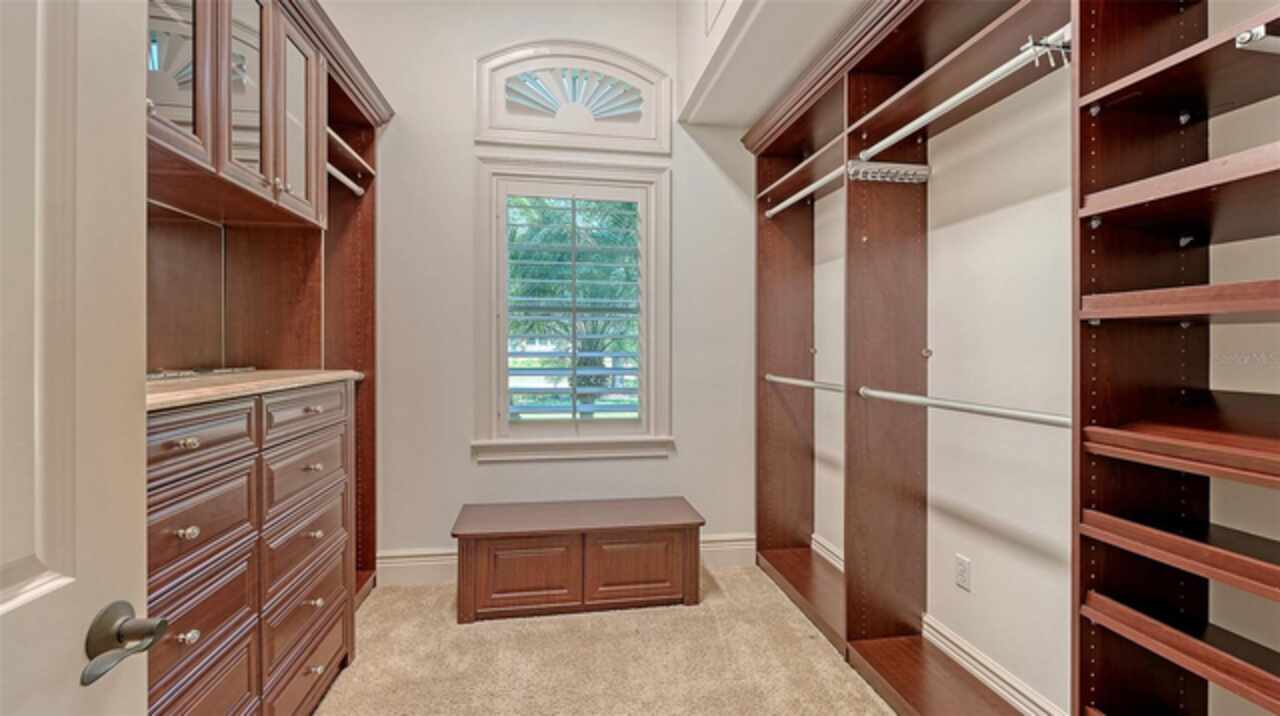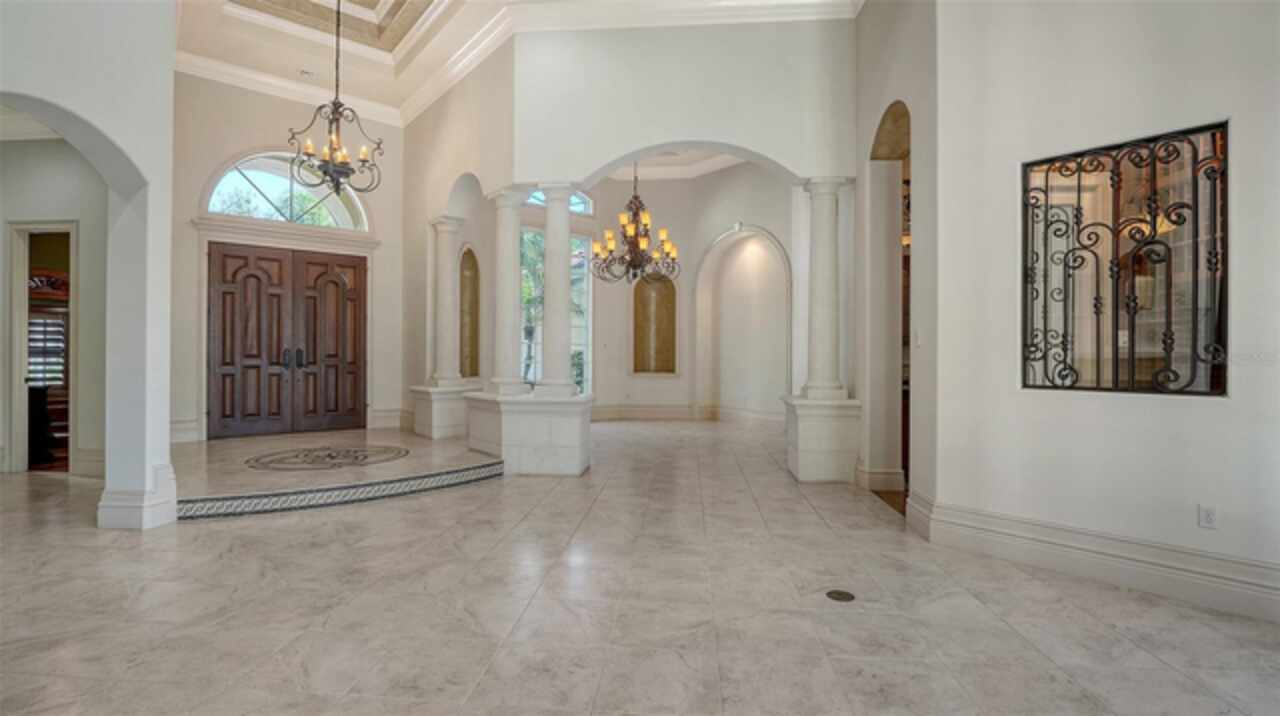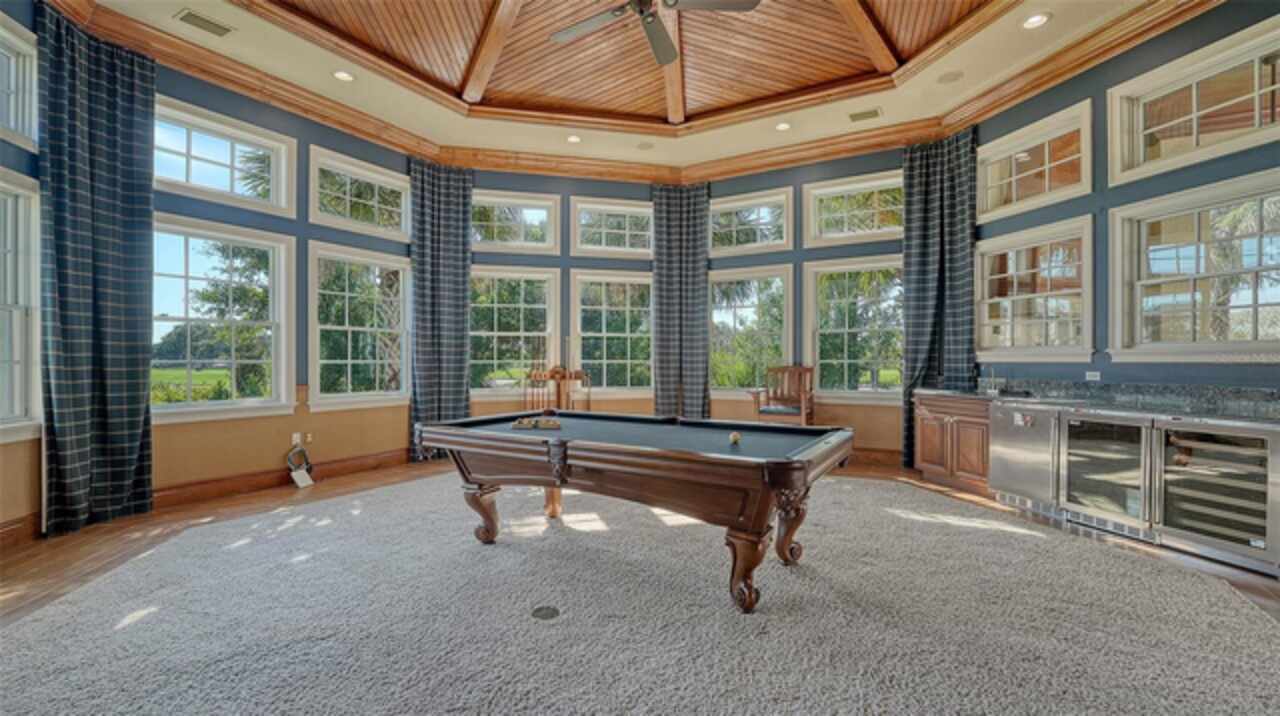 Welcome to The Founders Club, Sarasota’s premier gated golf community, where timeless design meets modern luxury. This stunning John Cannon–built estate, situated on nearly an acre, offers over 6, 500 square feet of living space all on one floor with 4 bedrooms, 4.5 bathrooms, and a thoughtful single-level layout designed for both entertaining and everyday living. From the moment you arrive, the home’s circular drive, lush landscaping, and elegant architectural details set the stage for what lies inside. Step through grand double doors and into open, light-filled living spaces where soaring ceilings, crown molding, and refined finishes create a warm and inviting atmosphere. The heart of the home is the chef’s kitchen, featuring solid wood cabinetry, granite counters, built-in shelving, and a spacious open layout that flows seamlessly into the family room and casual dining area. A separate formal dining space and living room provide options for intimate gatherings or larger celebrations. The private primary suite is a true retreat with dual walk-in closets, a spa-like bath boasting a whirlpool tub, multiple shower heads, and stone counters. Three additional bedrooms each feature en suite baths, offering privacy and comfort for family and guests. A dedicated office, media room, and bonus/game room with wet bar provide flexible space for work, play, or relaxation. Outdoor living is equally impressive. Step out to a covered lanai with an outdoor kitchen and grilling area, overlooking a sparkling pool and spa. Surrounded by a private courtyard, this backyard oasis is perfect for year-round enjoyment. Additional highlights include a 4-car side-entry garage, gas fireplace, French doors, and energy-efficient features with FGBC Green Certification and new interior paint work. Residents of The Founders Club enjoy a private, guard-gated lifestyle with optional golf and country club membership, just minutes from downtown Sarasota, world-class beaches, and A-rated schools. This estate is a rare opportunity to experience luxury living in one of Sarasota’s most exclusive communities.