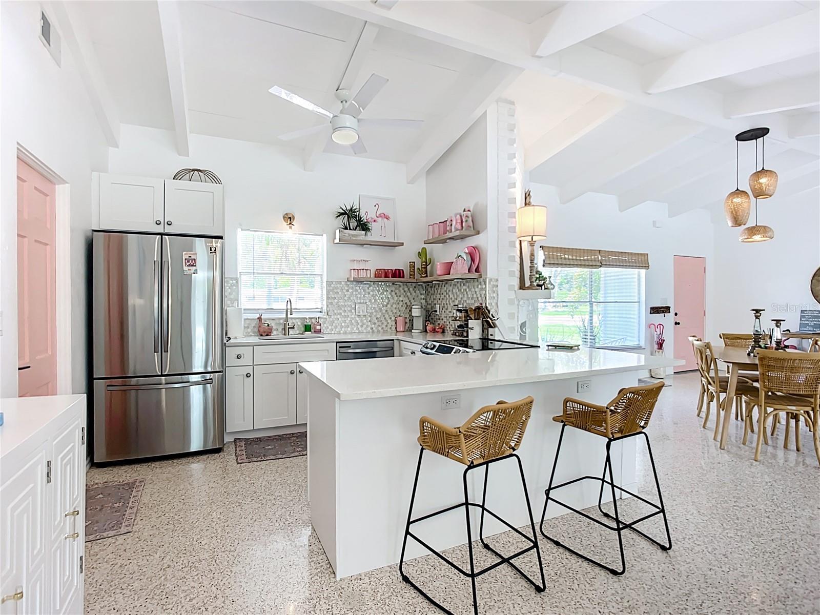 Stunning Mid-Century Modern Retreat in Sarasota, Florida Seize this unique opportunity to own a piece of Sarasota’s sought-after living with this versatile property that promises both a serene retreat and lucrative returns as an investment Property (70K 2024) With Future Bookings booking in place , Sold Turnkey Furnished!. Experience the perfect blend of timeless design and modern luxury in this fully renovated Mid-Century Modern home. Vaulted ceilings and beautifully refinished terrazzo floors create an open, airy feel throughout the living spaces. The brand-new designer kitchen and bathrooms feature high-end finishes and contemporary style, offering both comfort and sophistication. Step outside into your own tropical paradise, complete with, New lush Mature landscaping Lighting, Irrigation and an oversized Heated Salt Water sparkling pool — perfect for relaxing or entertaining. Located in one of Sarasota’s most desirable areas, this home embodies Florida living at its finest. For active residents, The well known Legacy Biking, Jogging, Walking Trail is just Blocks away, Talking you to Down Town Sarasota to the North and South all the way to Down Town Venice! Sarasota, renowned for its cultural richness and pristine beaches, nearby, the iconic Siesta Key Beach boasts powdery white sands and turquoise waters. Explore the artistic allure of The Ringling Museum or venture to the lush Marie Selby Botanical Gardens. Sarasota's vibrant downtown, with its eclectic First Class dining, shopping, and nightlife, is just moments away. The city's picturesque sunsets and waterfront parks promise an exceptional lifestyle for residents and vacationers alike. New PVC Plumbing, Electrical Panel, Landscaping, Irrigation, Lighting, Oversized Salt Water Heated Pool, Impact Sliders - 2022 . New Roof, Water Heater - 2023 No Hurricane Damage or Flooding!