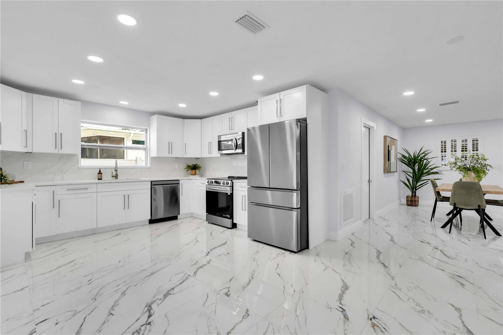 Quiet Lakefront remodeled 4 bedroom, 3 bath beauty minutes to bustling DTSP and Tampa. Pavered driveway leads to covered front porch entry. Generous great room floor plan with plantation shutters, recessed lighting, and loads of open living space. Kitchen is gorgeous with brand new with shaker cabinets, quartz counters, and new stainless appliances. French doors in the kitchen eating space open to a pavered patio and the lake. Primary suite is oversized and has a large walk in closet, attached bath and double door acces to the lake and backyard. Another bedroom is a great guest suite as it has its own bath and double deep closet. The 2 other bedrooms share a hall bath with a newly tiled tub, /shower combo. The whole house has been renovated with permits and is ready for you! Attached 1 car garage has epoxy floors and plenty of pavered boat/RV/ car parking on the side behind the new vinyl fence. Large shed and greenhouse for your hobbies and storage. In Riviera Bay, you’ll enjoy more than just a house—you’ll enjoy the lifestyle: golf cart parades, boat parades, parks, a neighborhood boat ramp, and neighbors who truly make it feel like home.